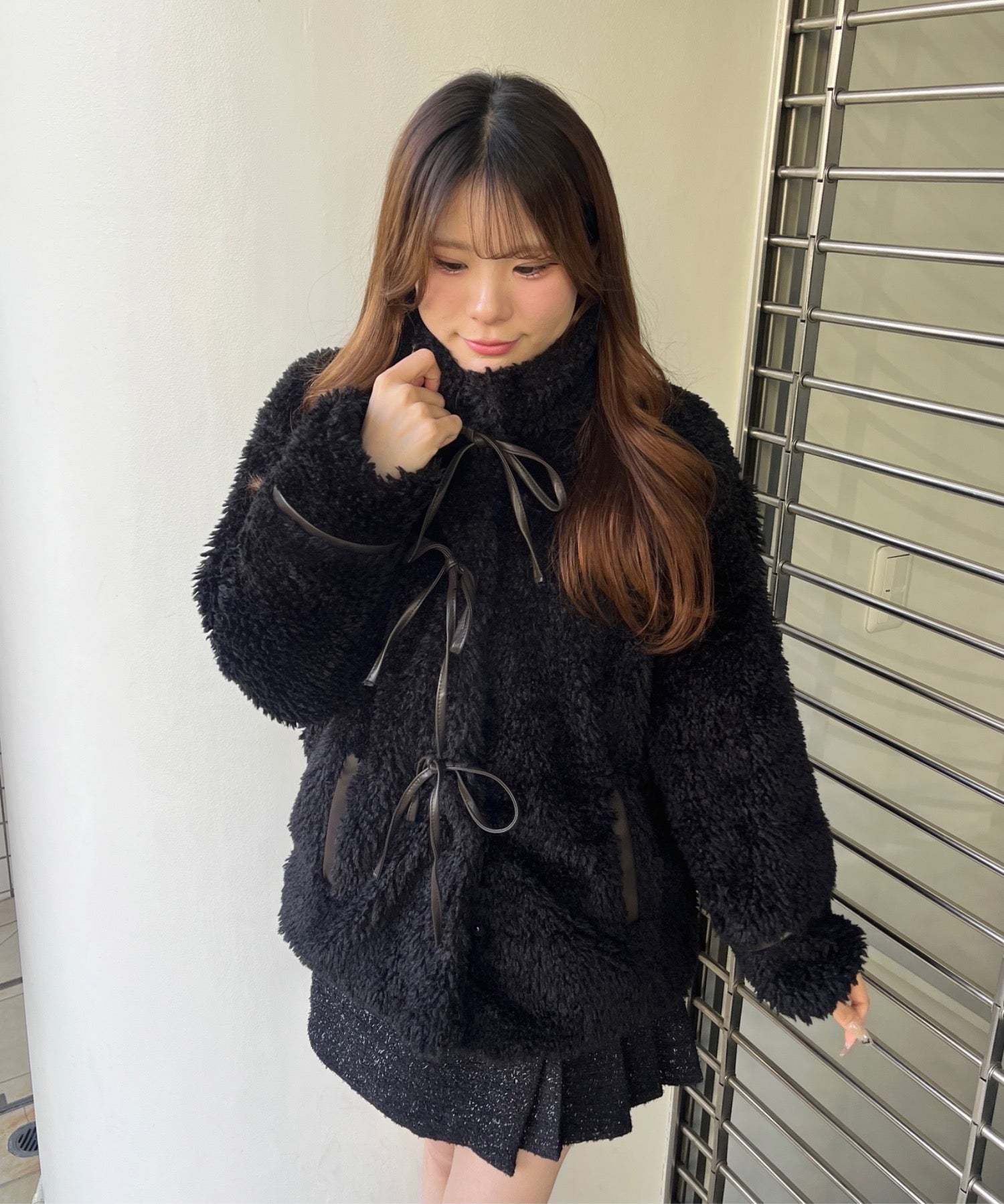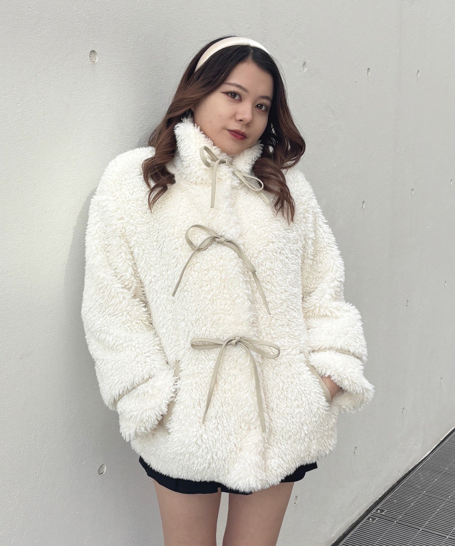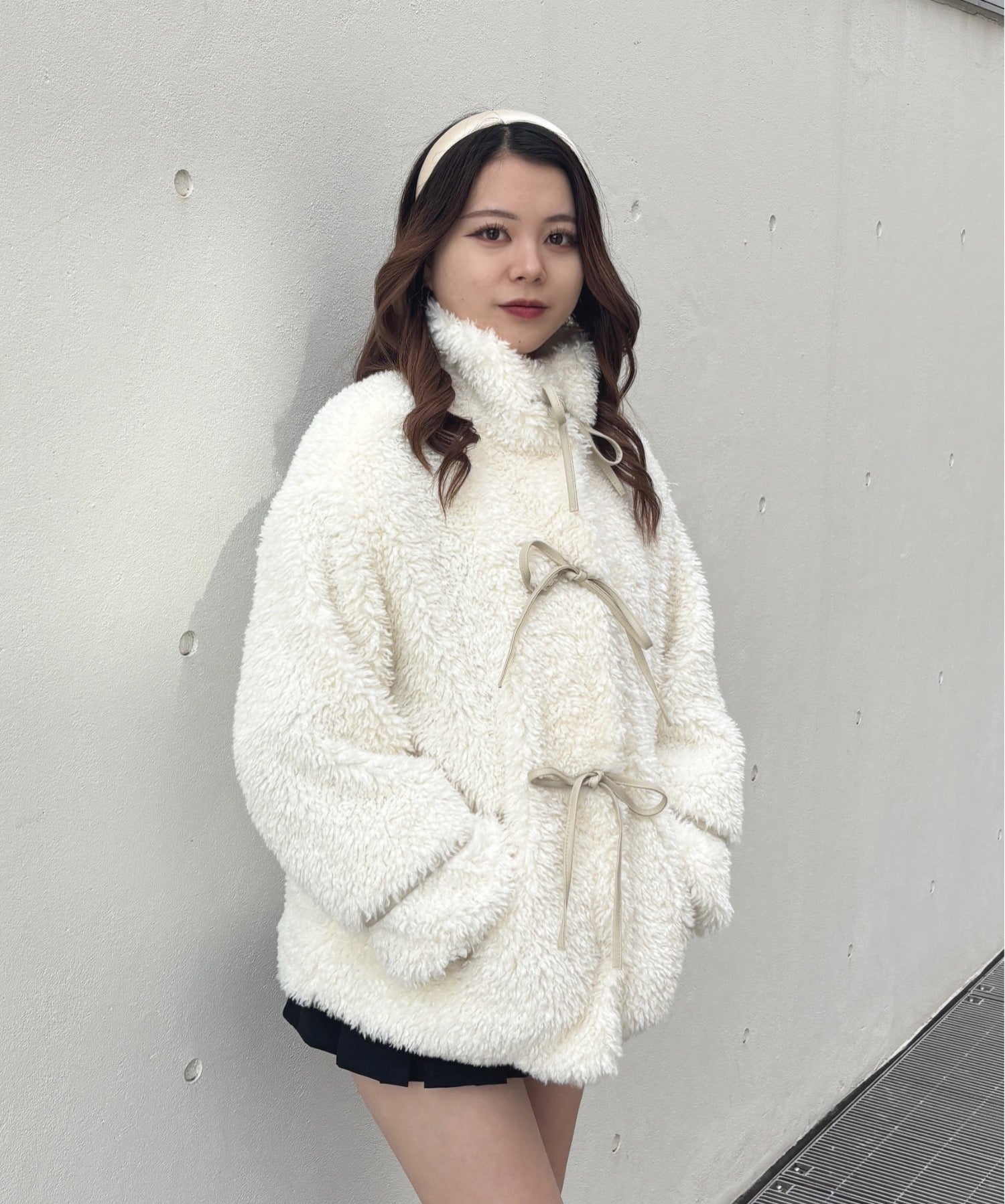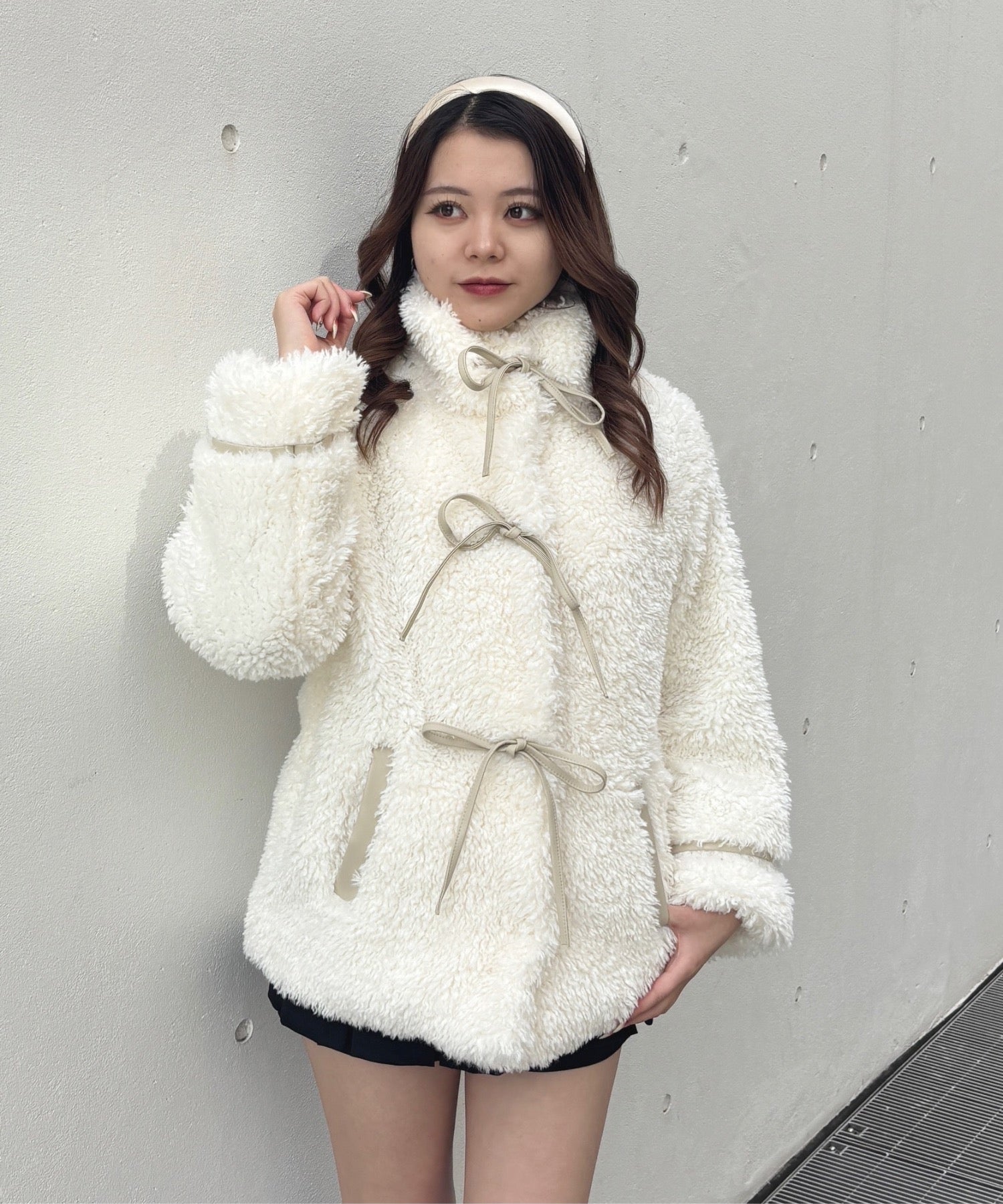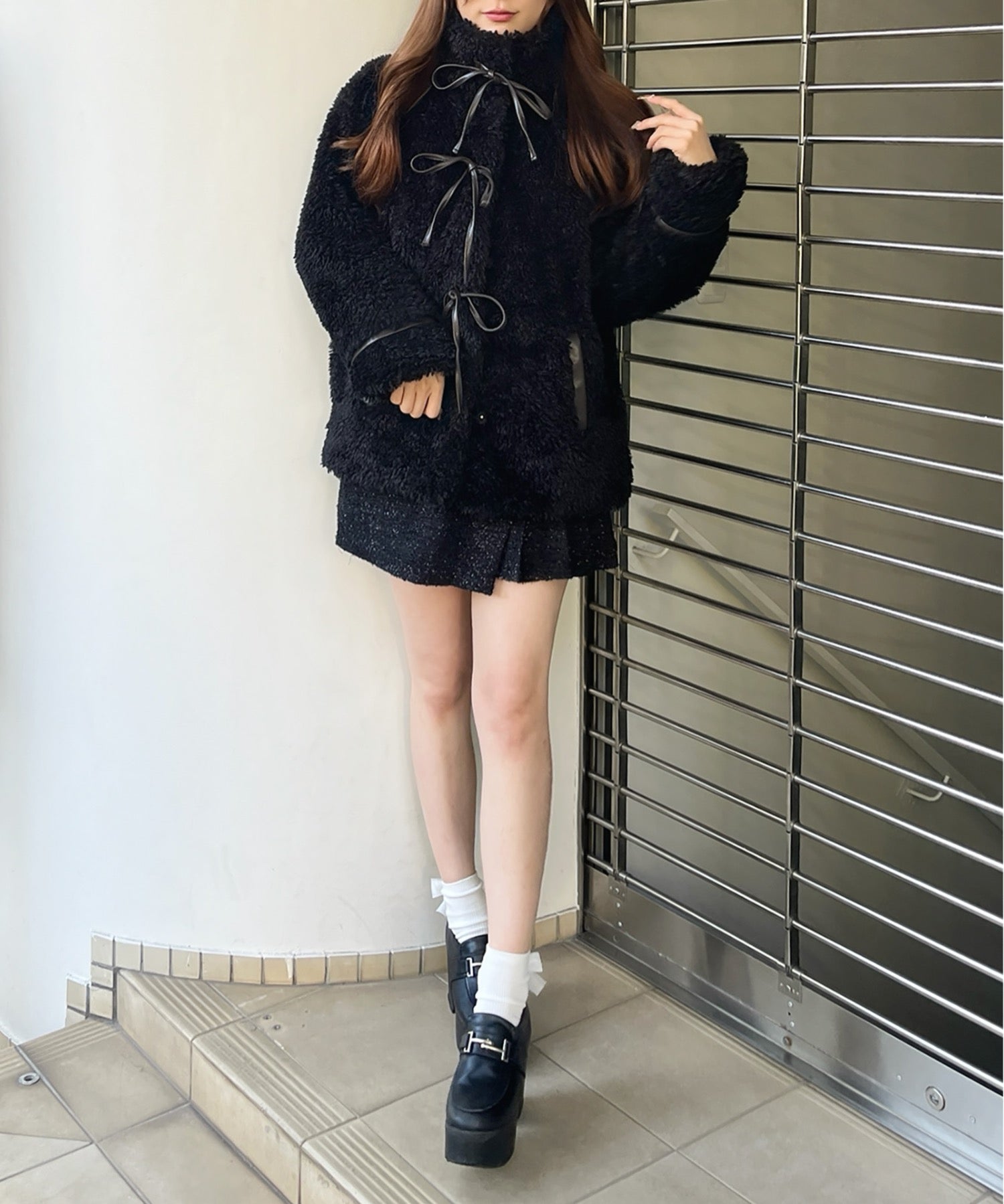 ・襟と袖のボリューム感あるファーがコーデを華やかにしてくれる♡