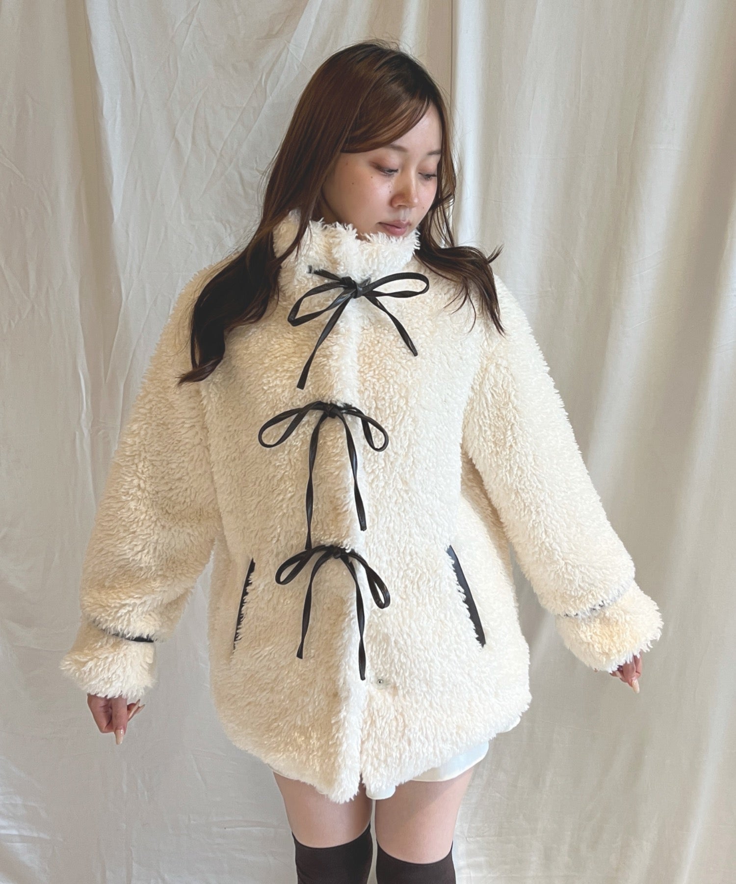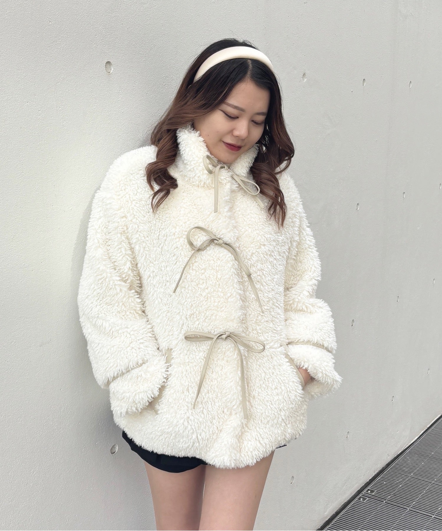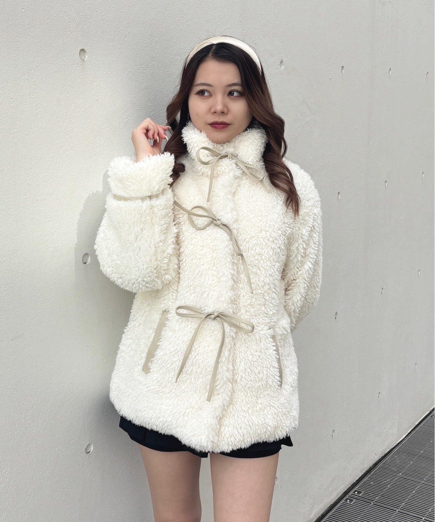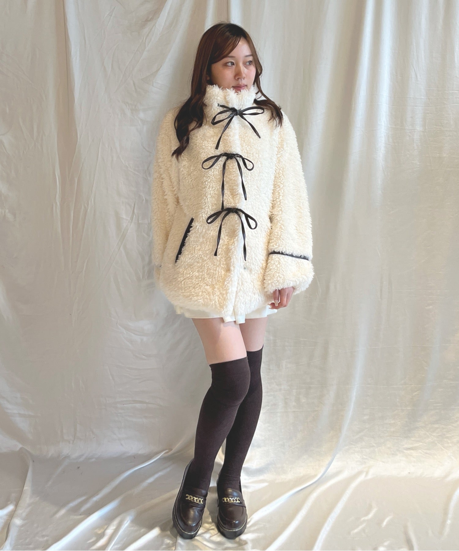 ・襟と袖のボリューム感あるファーがコーデを華やかにしてくれる♡