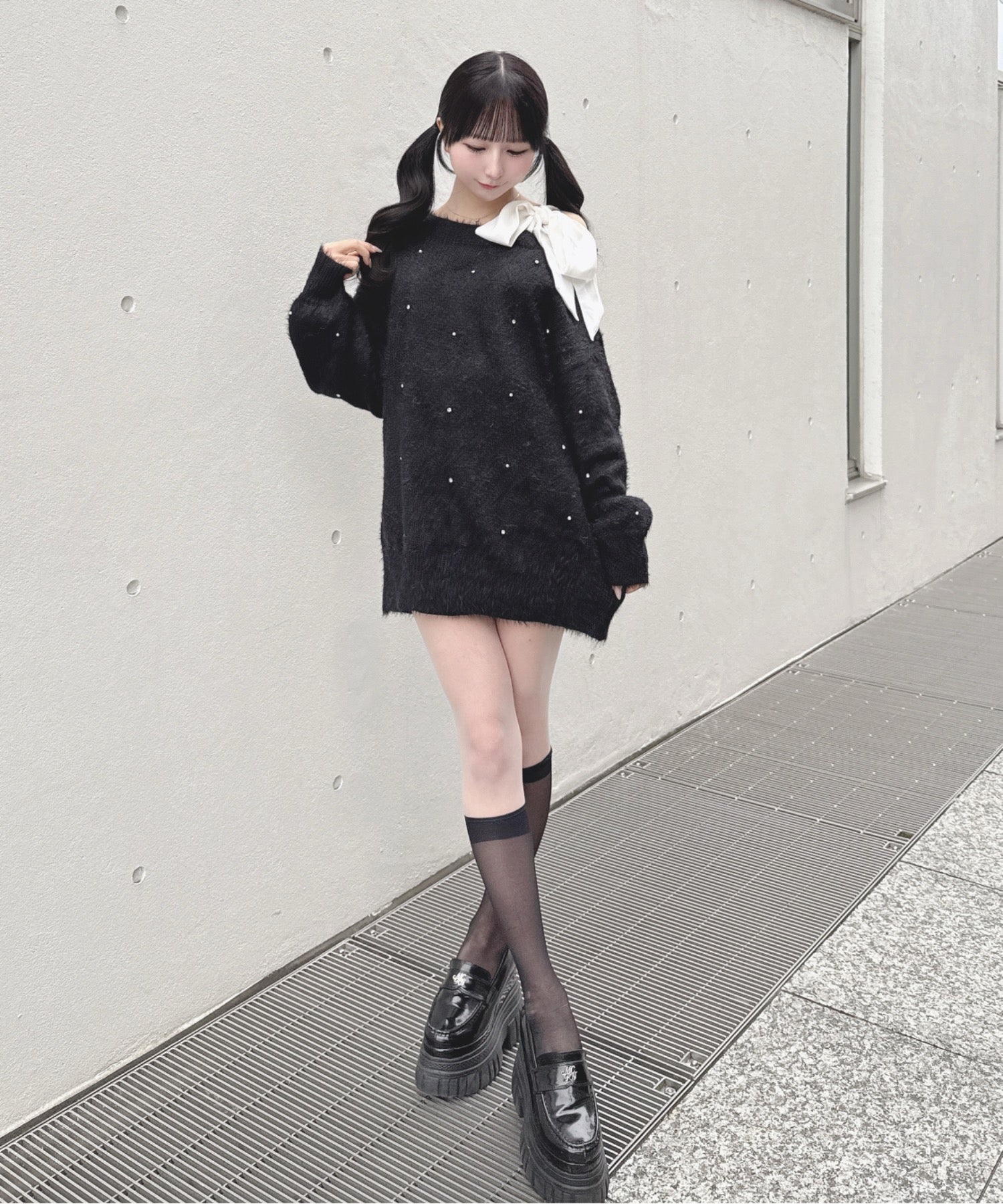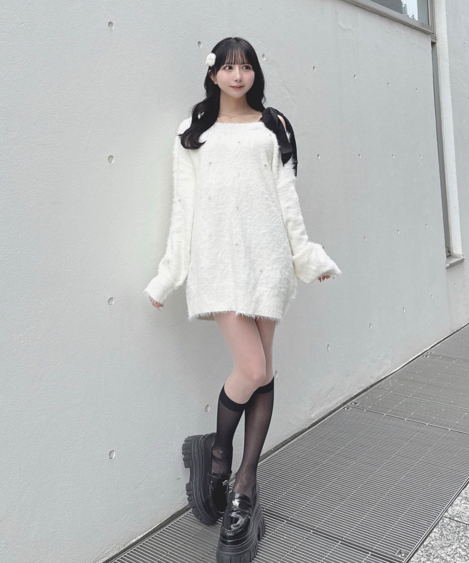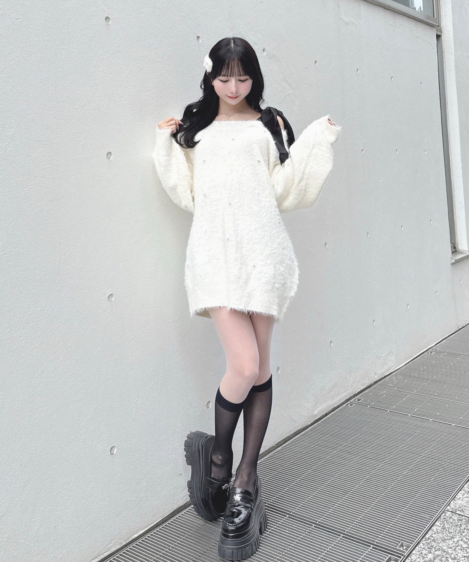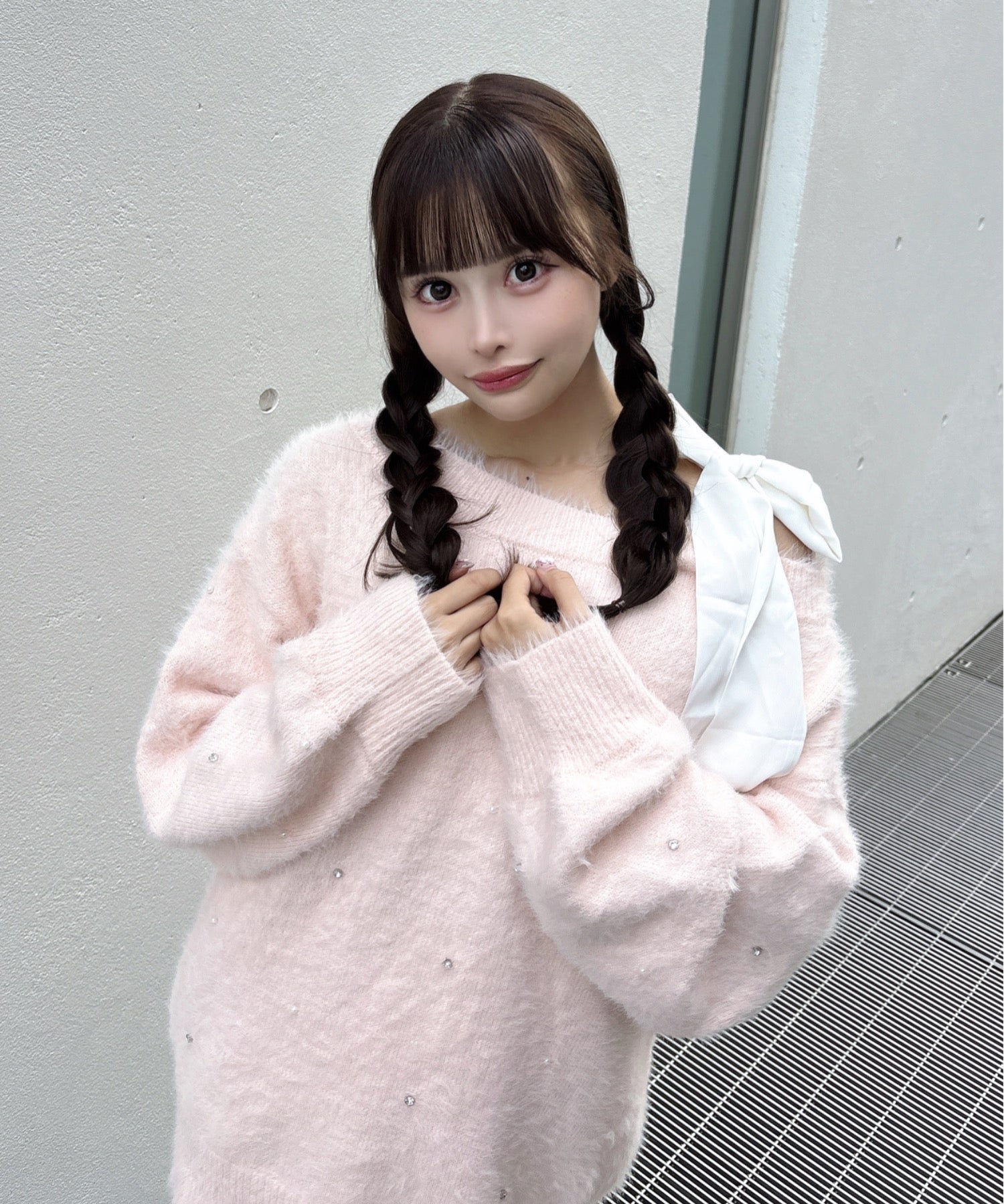 【予約商品 12月下旬発送】ビジュー肩リボンニット