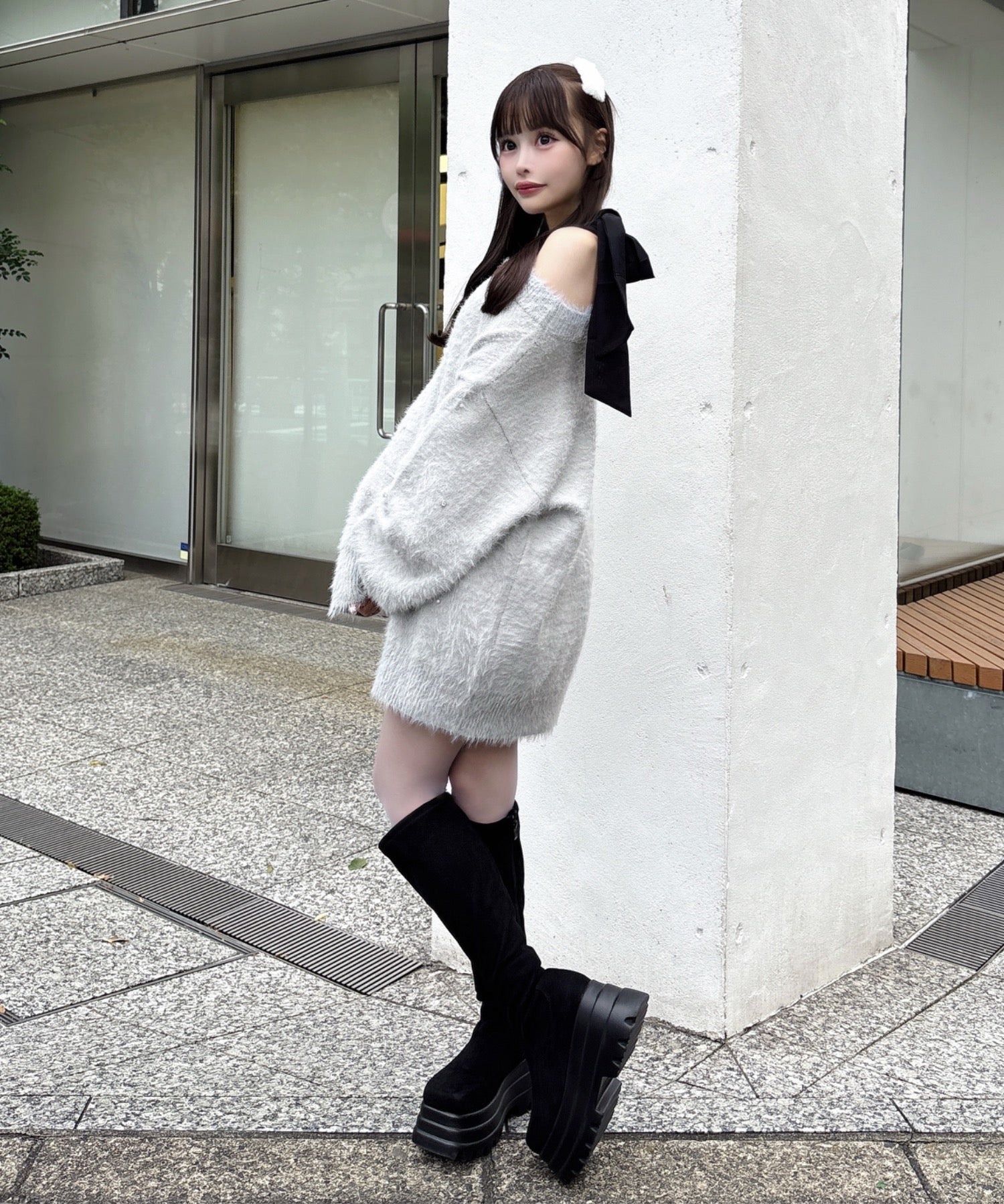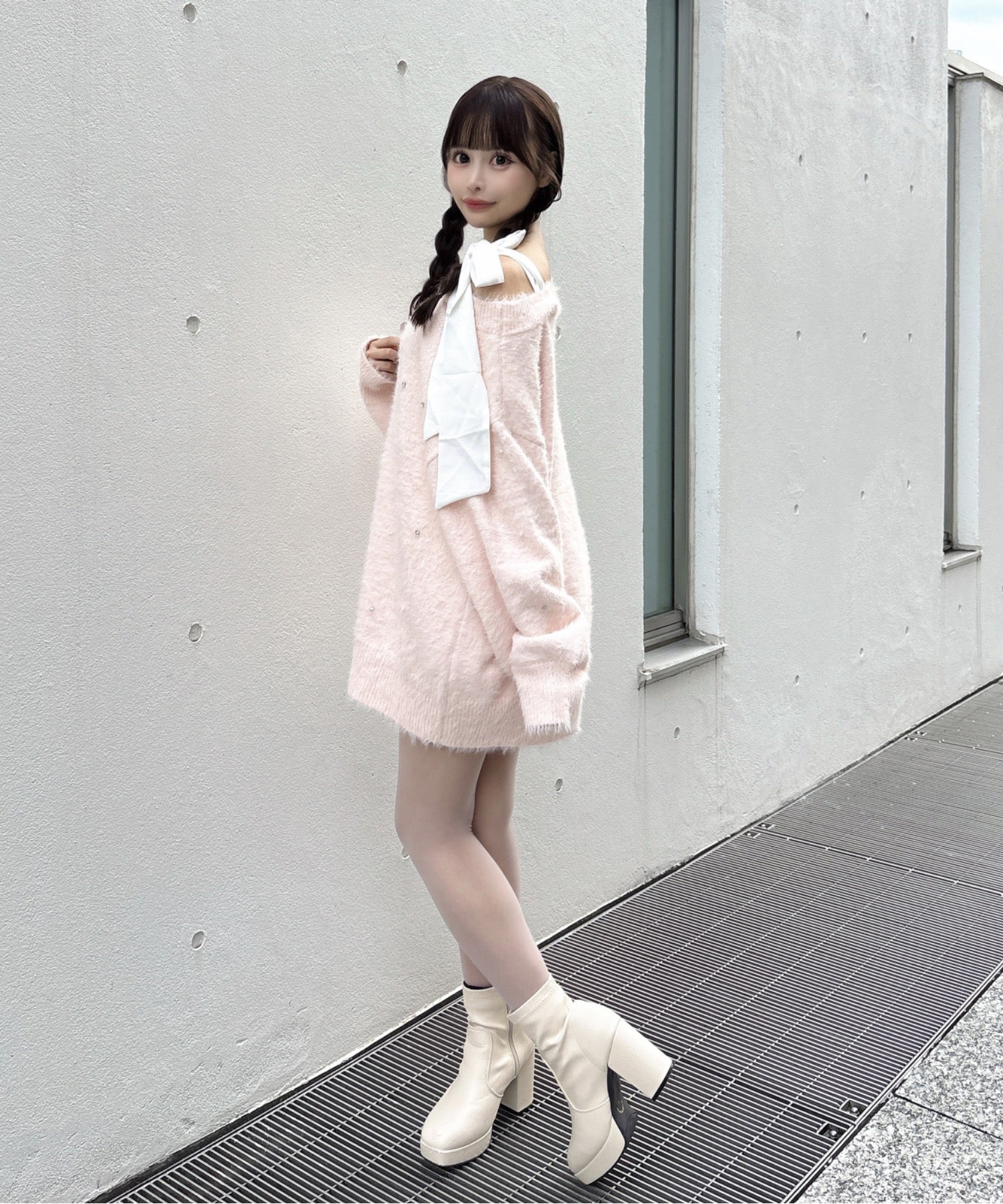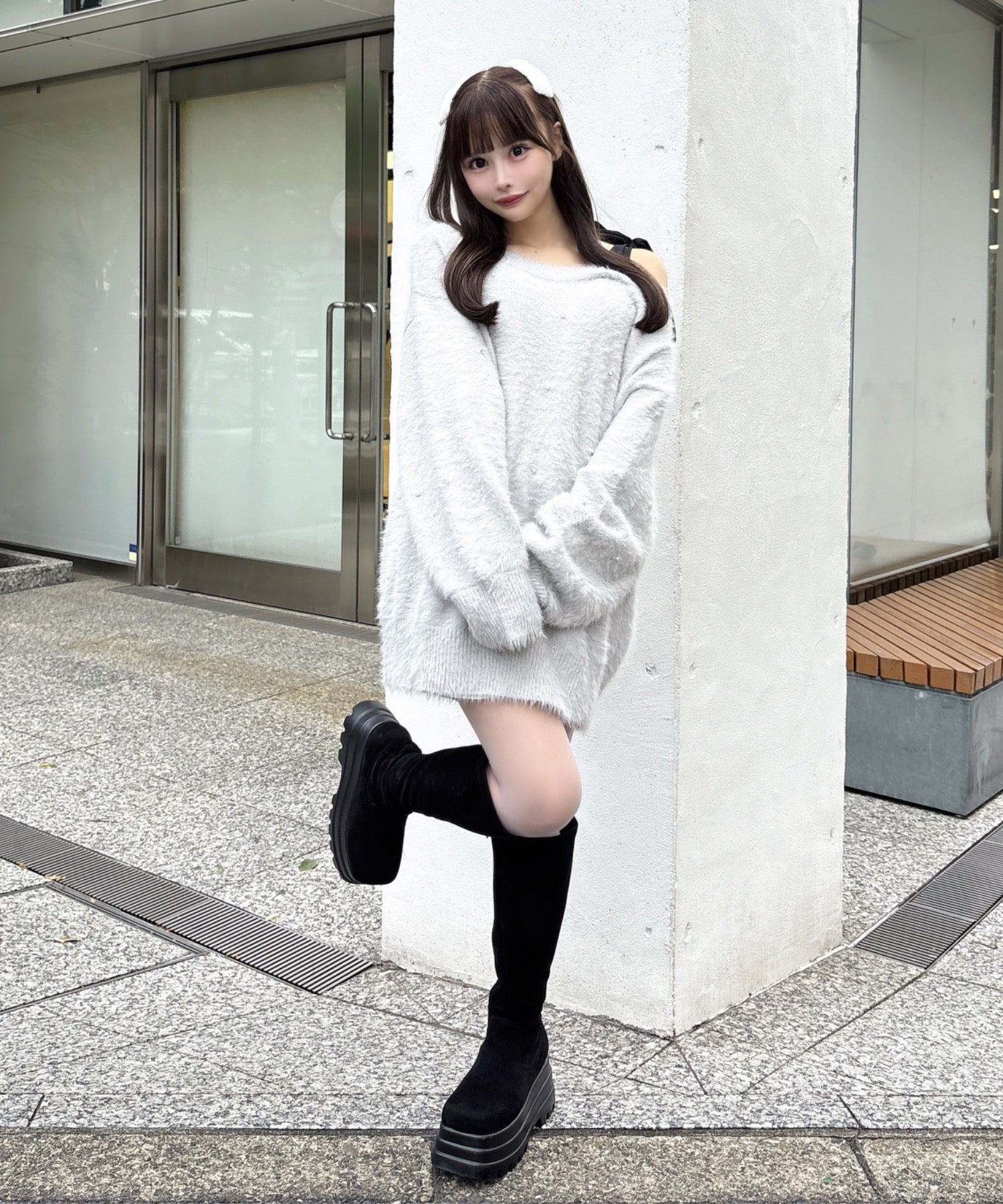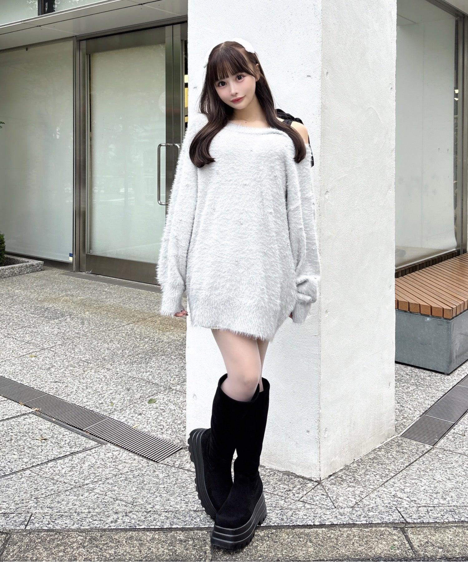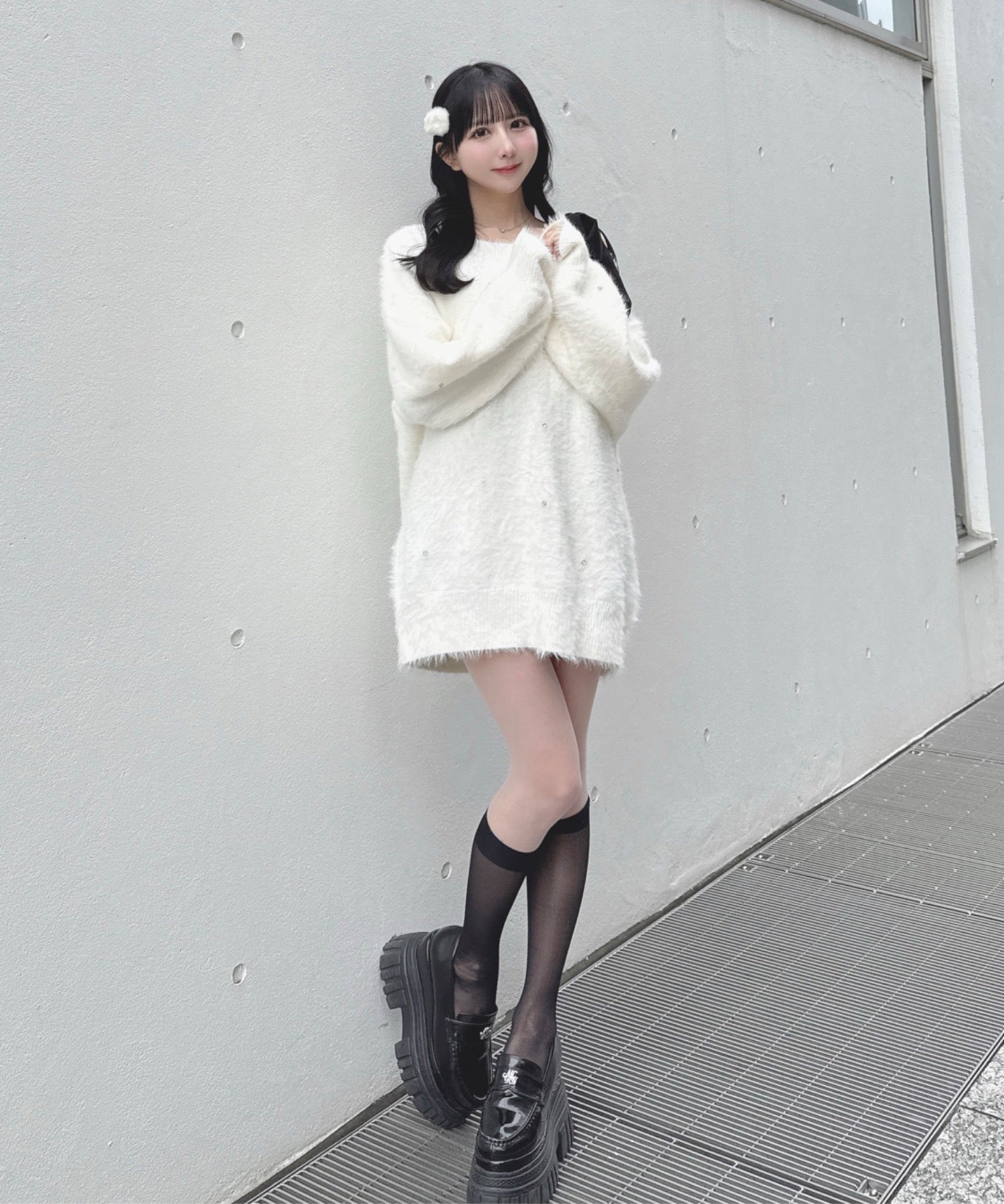 ・白のロングブーツと相性抜群で足元がやわらかい印象になります♪