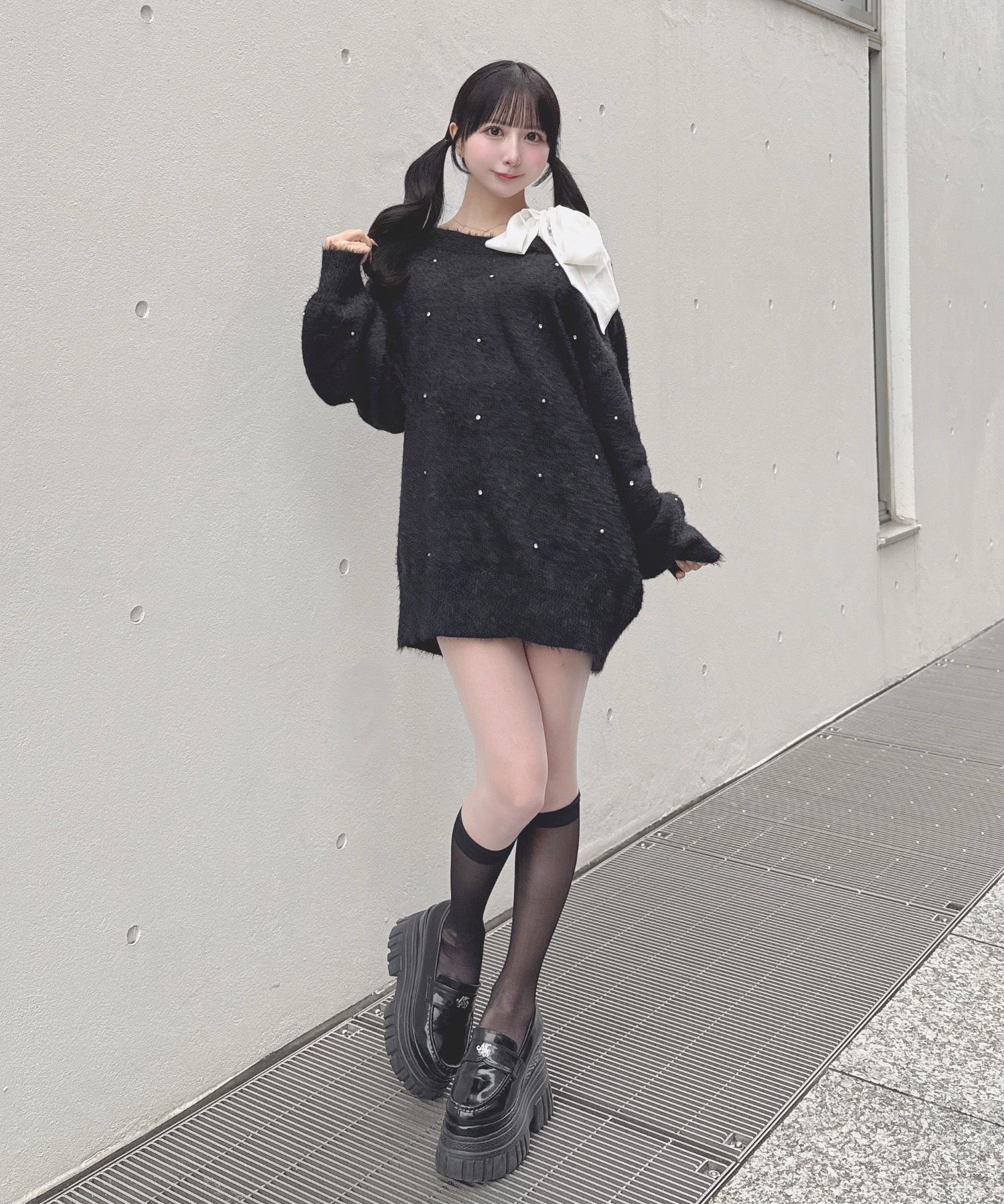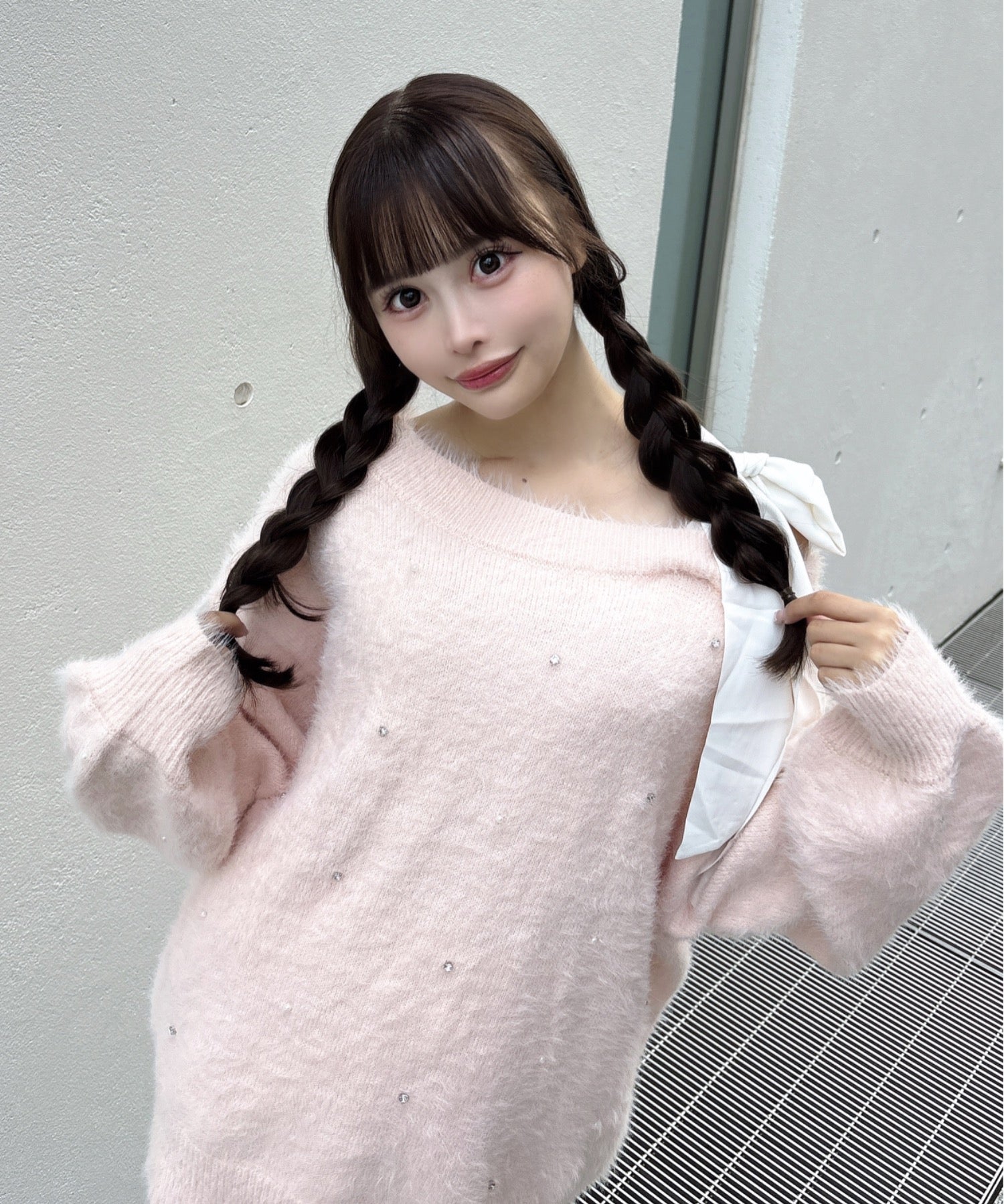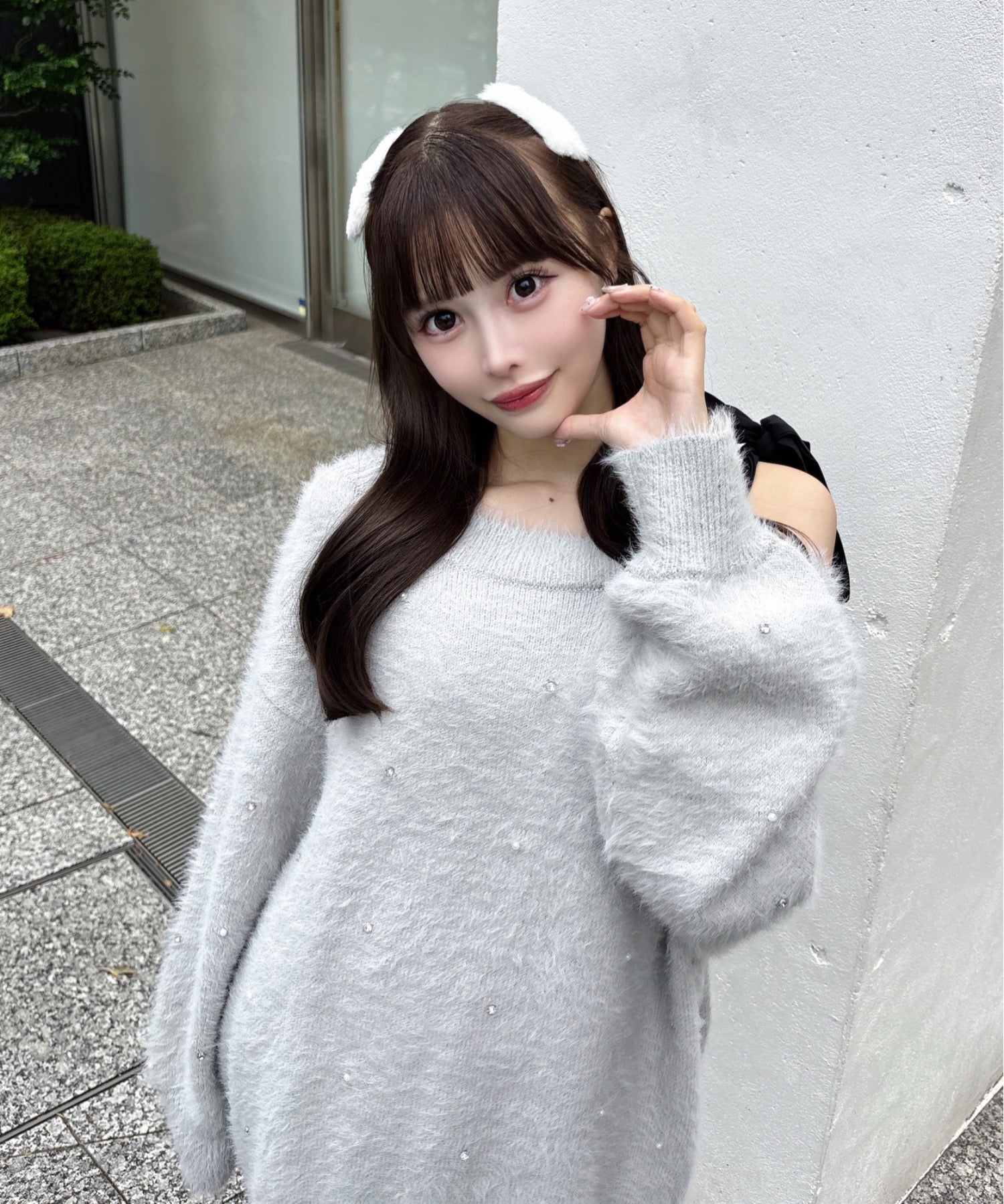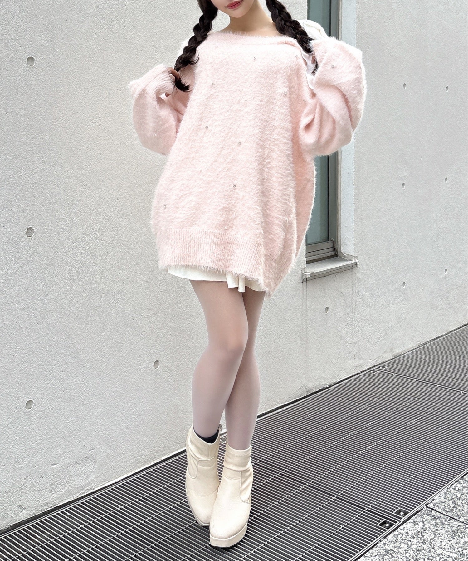 ・キラキラのビジューが冬っぽい華やかなコーデを叶えてくれるニット♩