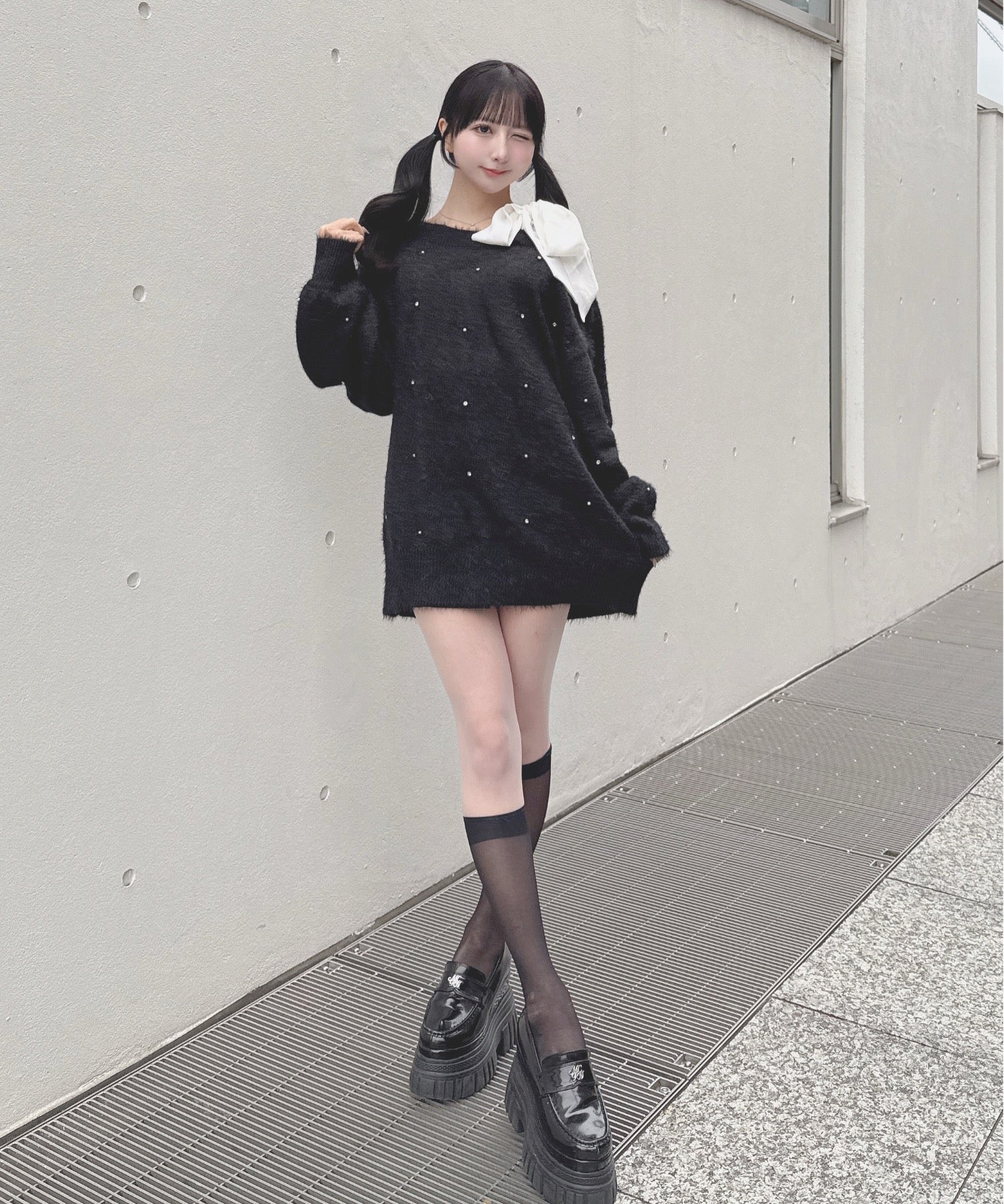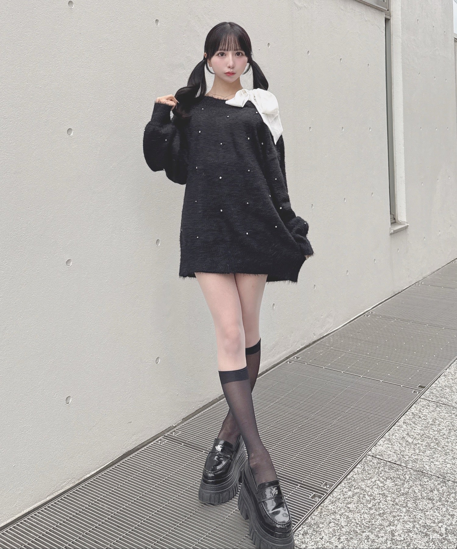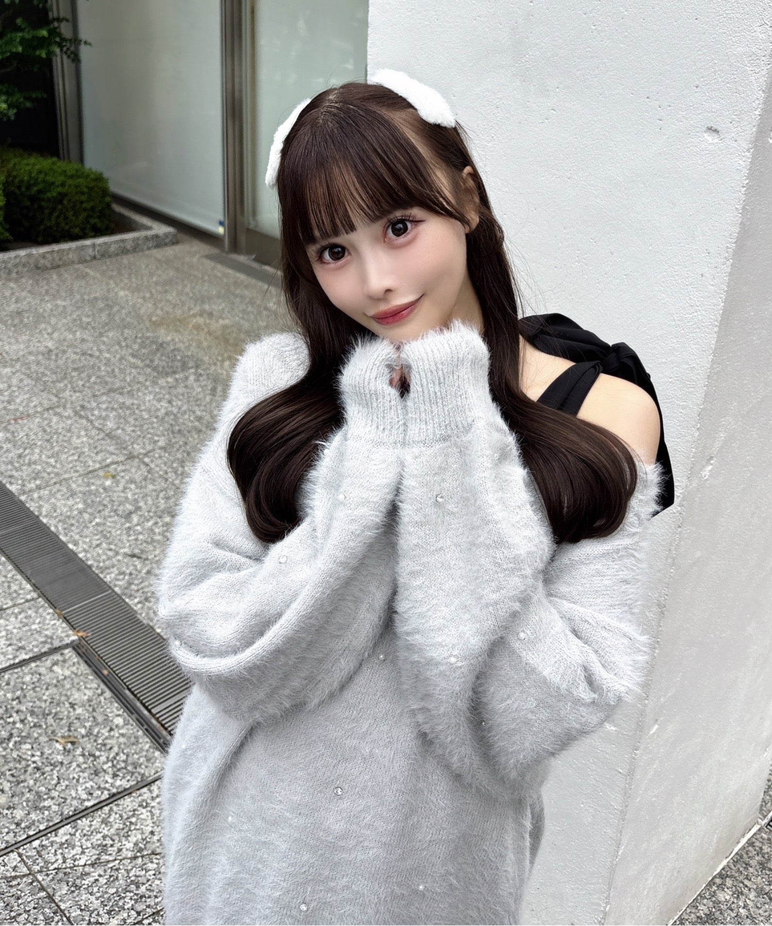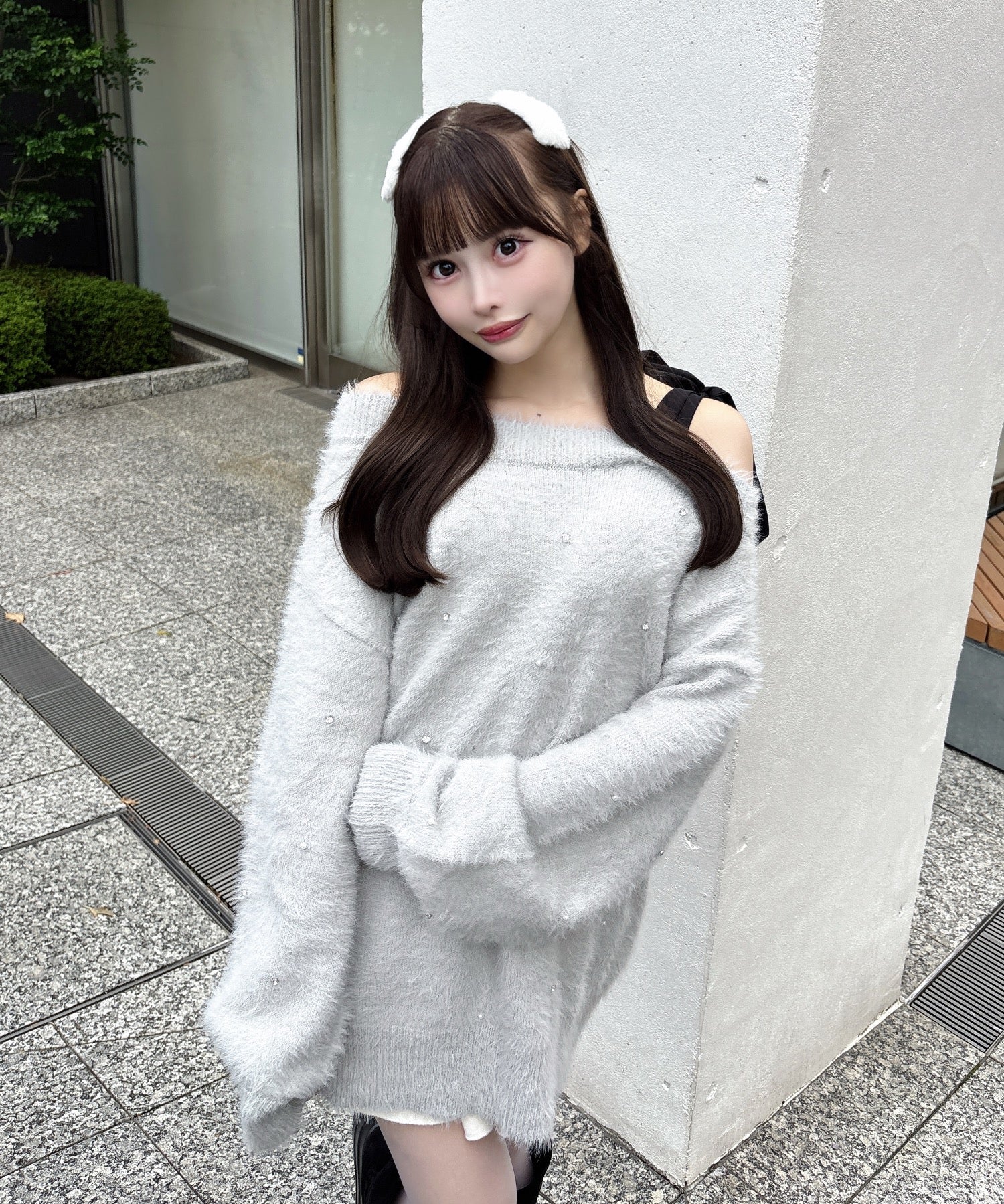 ・キラキラのビジューが冬っぽい華やかなコーデを叶えてくれるニット♩