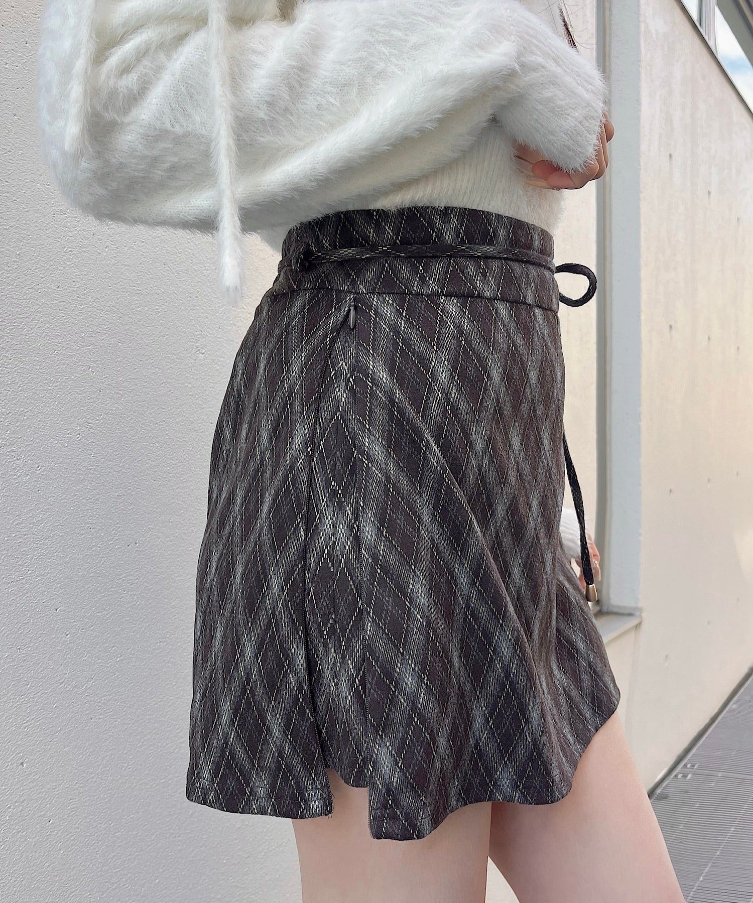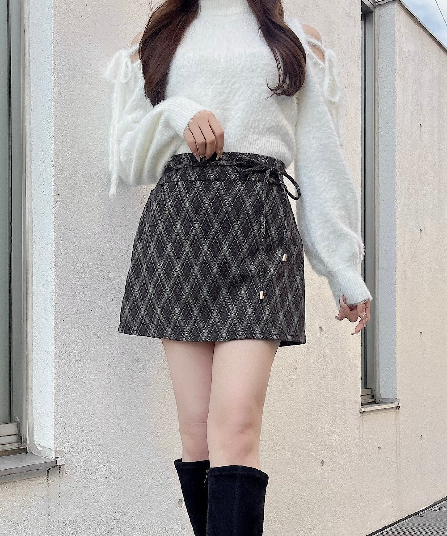 ・スカートのチェック柄が冬らしく、足元にタイツやブーツを合わせるのがおすすめ◎
