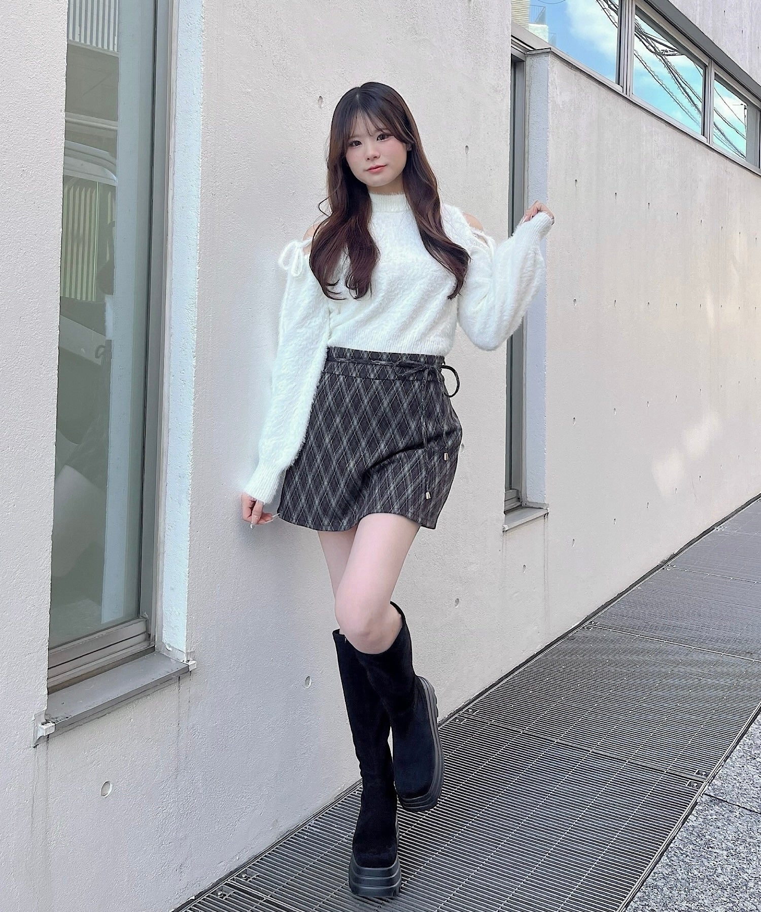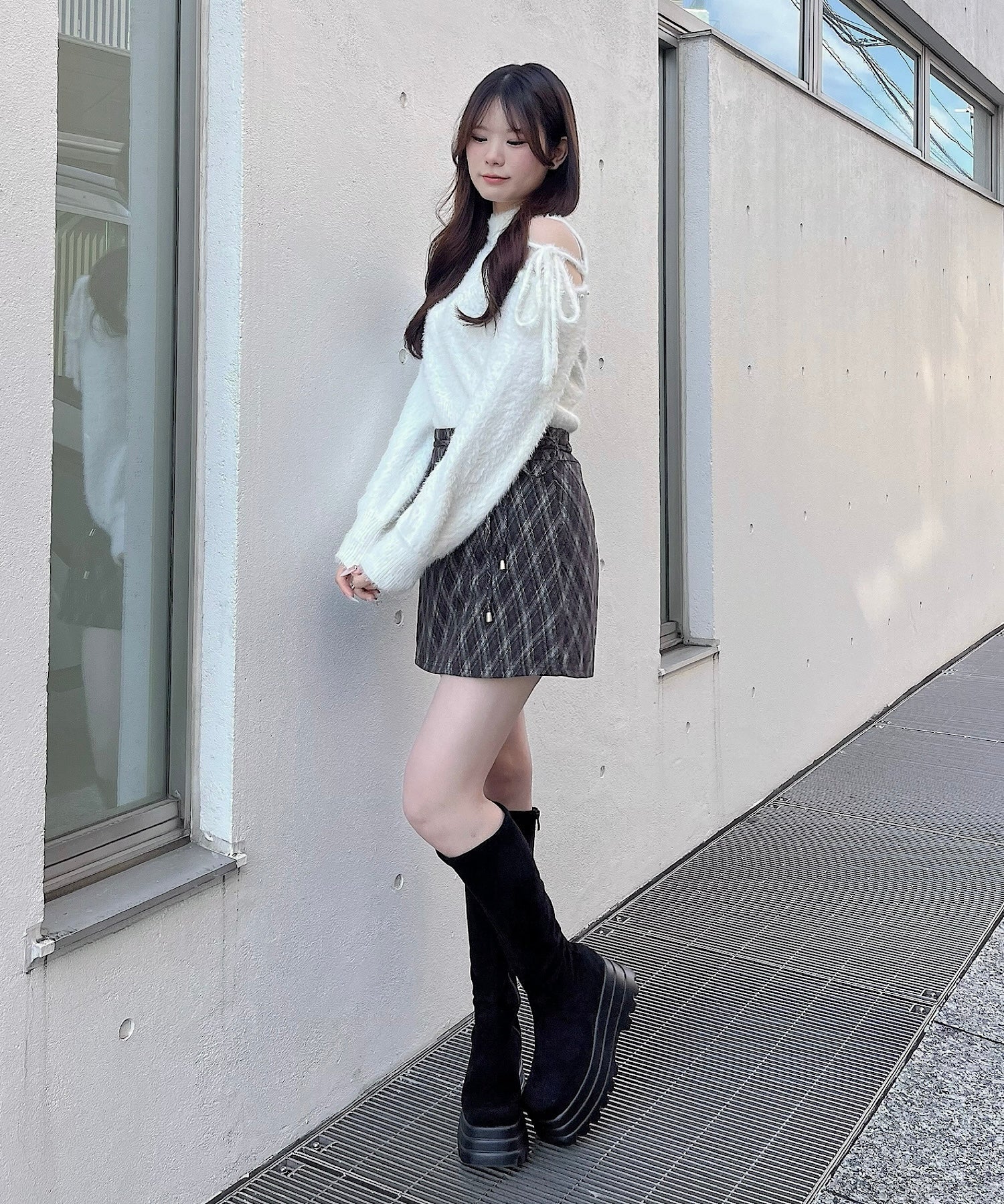 ・サイドのチャックを開けて、ゆるニットなどと合わせるとガーリーな印象になります♡