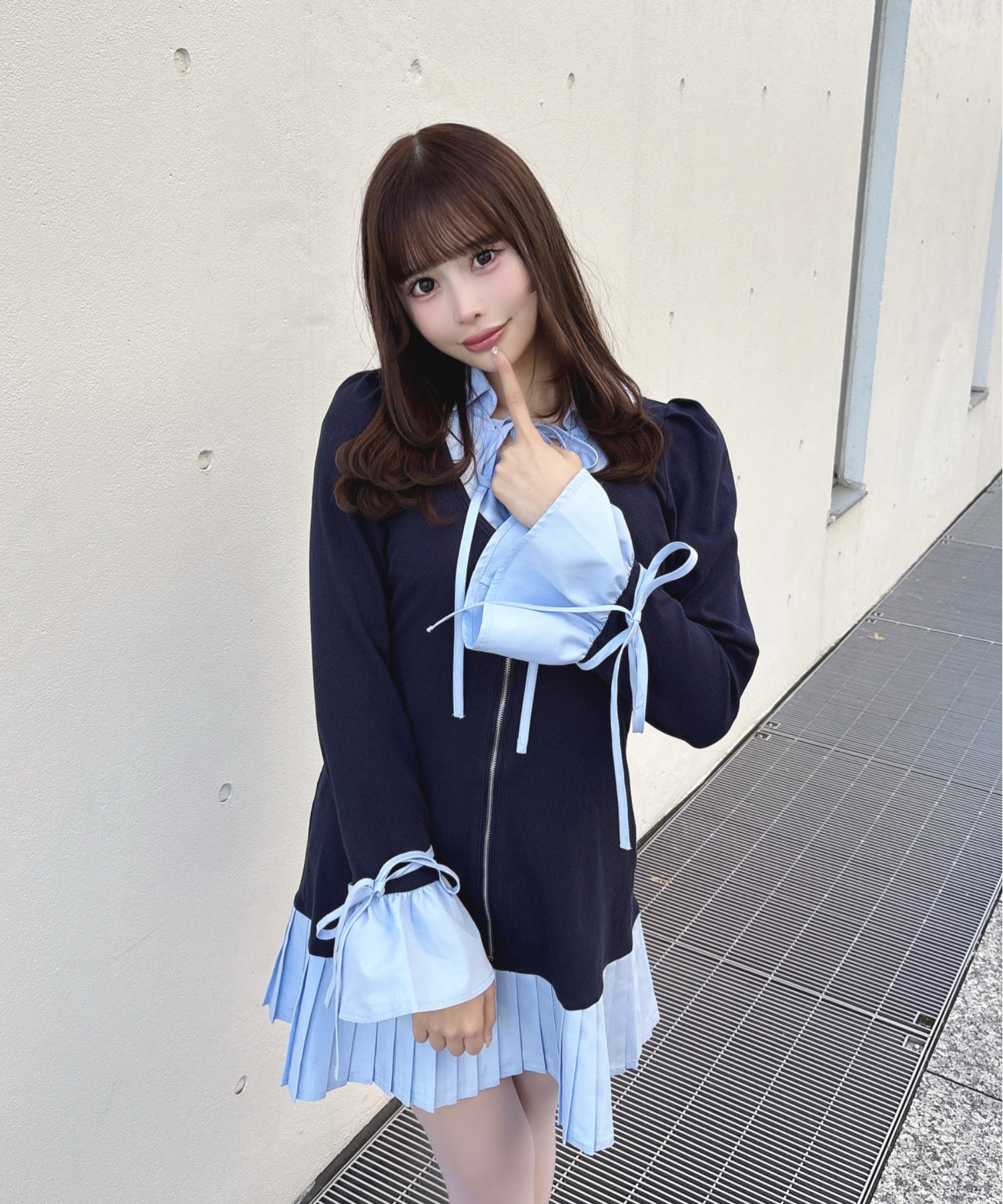 ・身体のラインが綺麗に見えるシルエットに、フレアの袖、裾のプリーツ部分が華奢見え効果をプラス◎