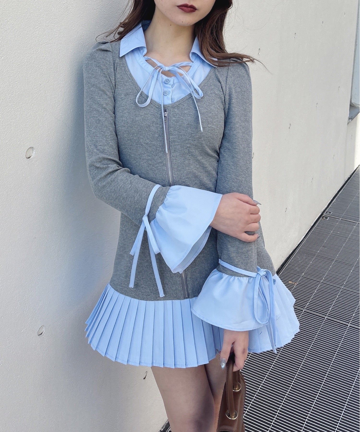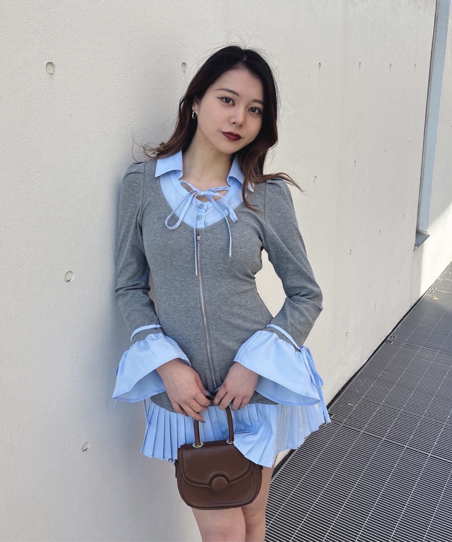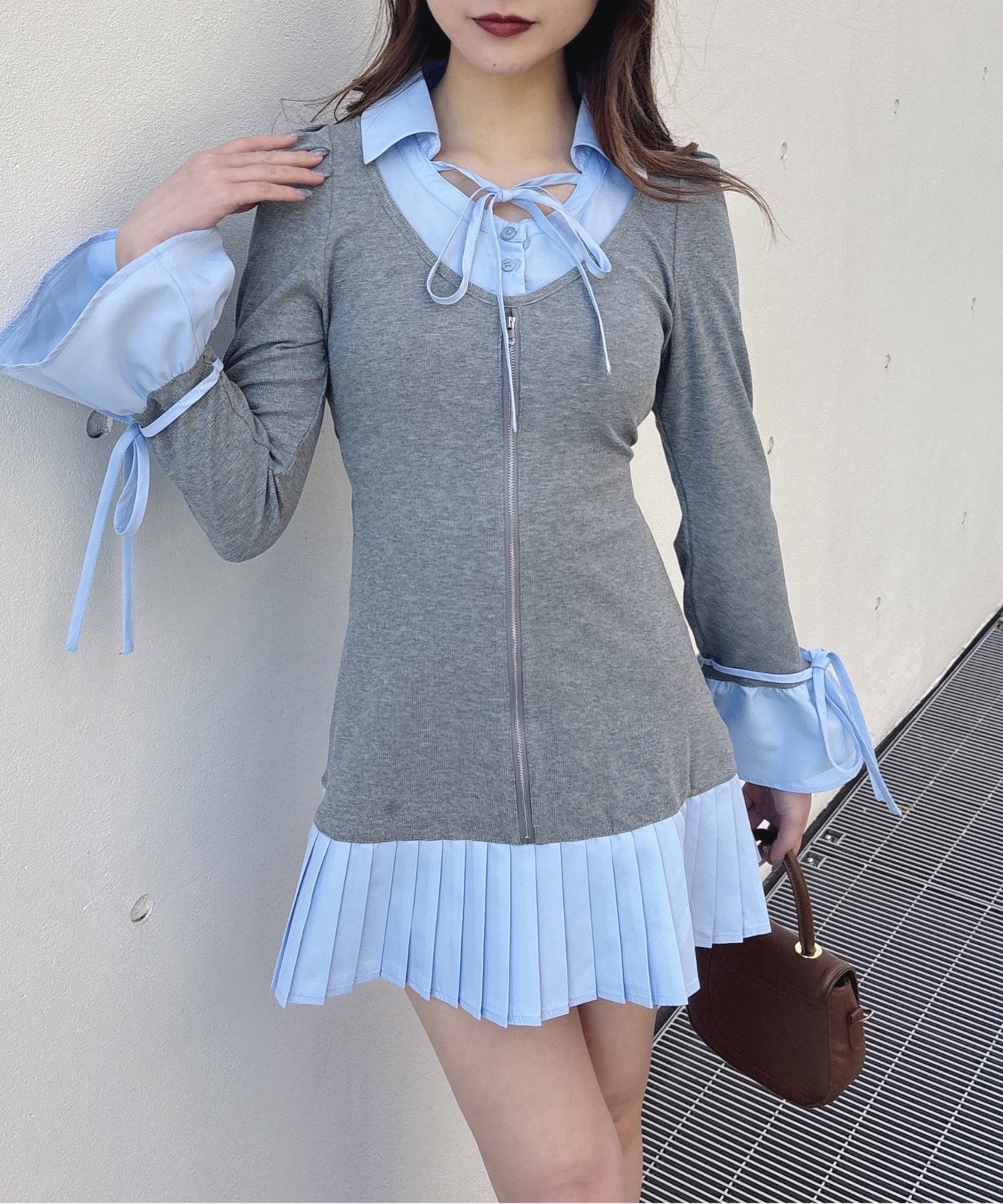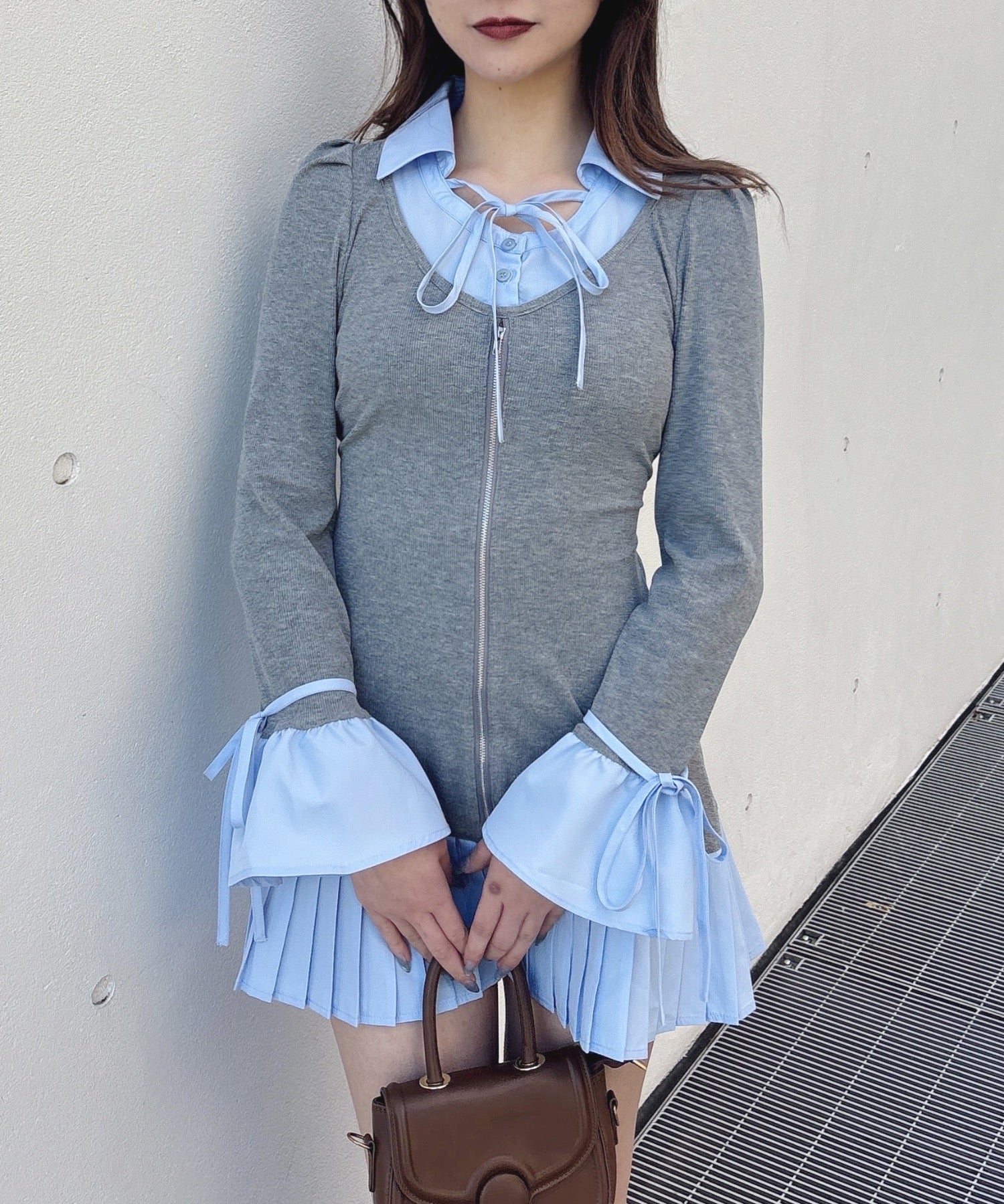 ・1枚でレイヤード風コーデが完成するドッキングワンピ♡