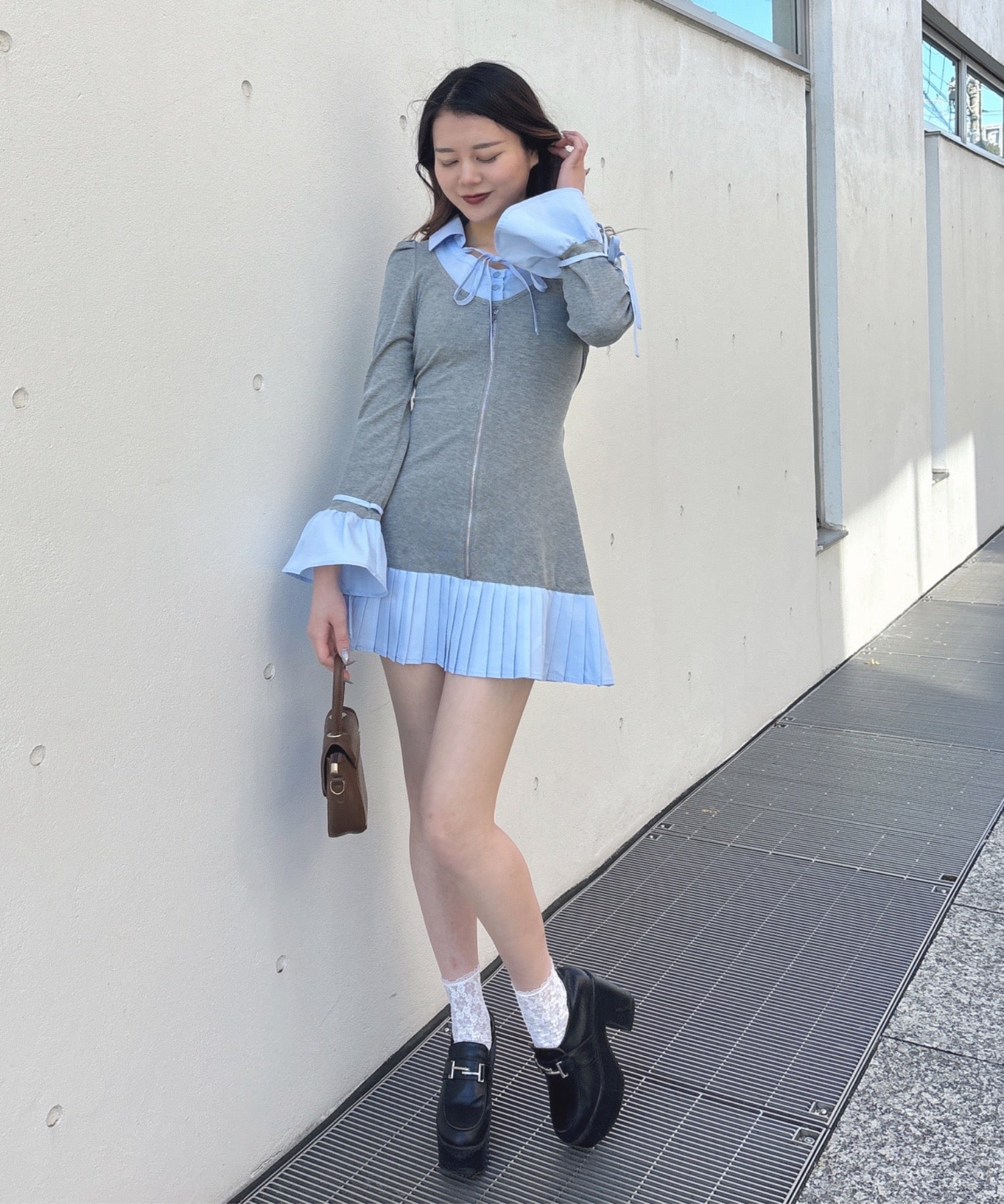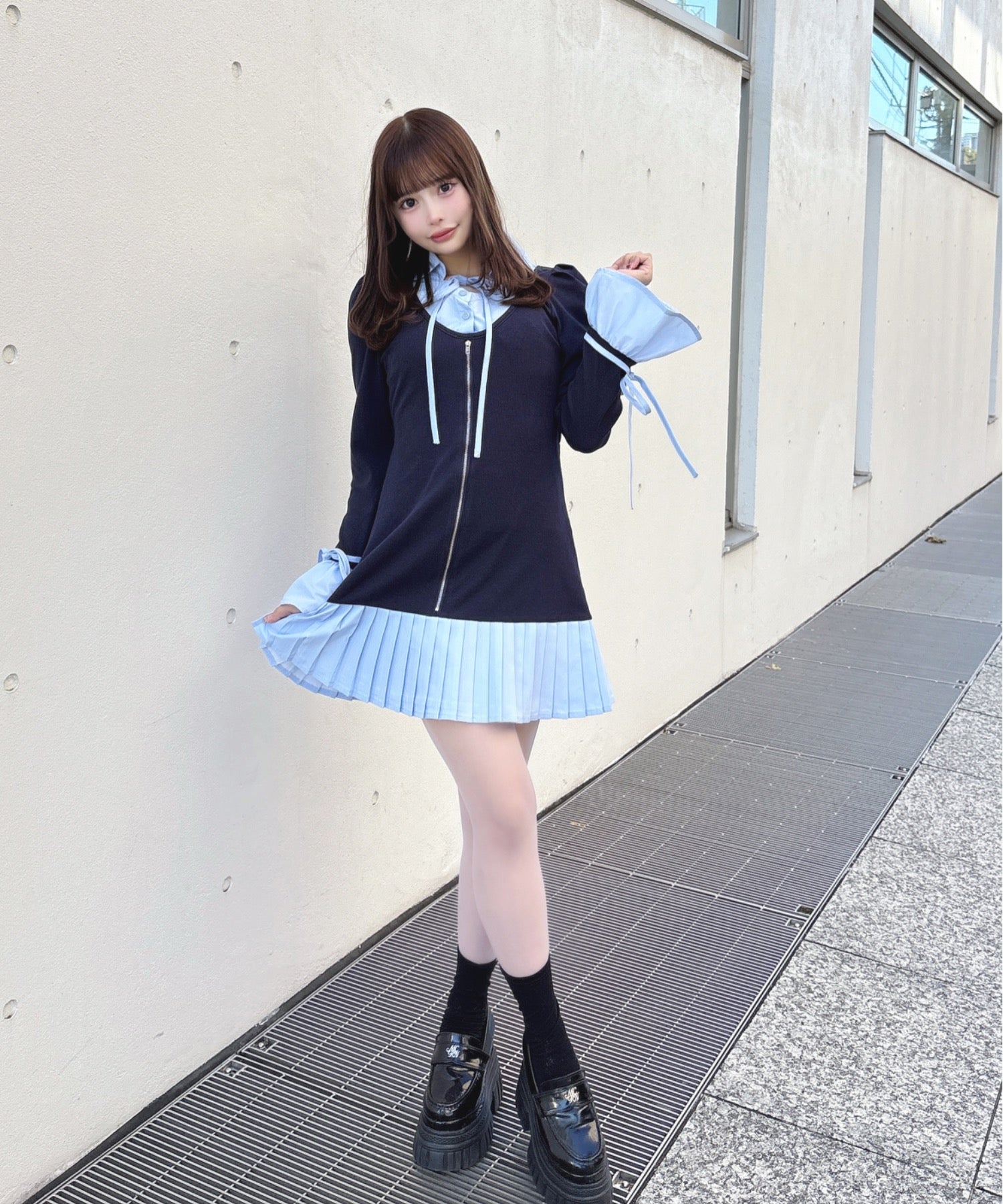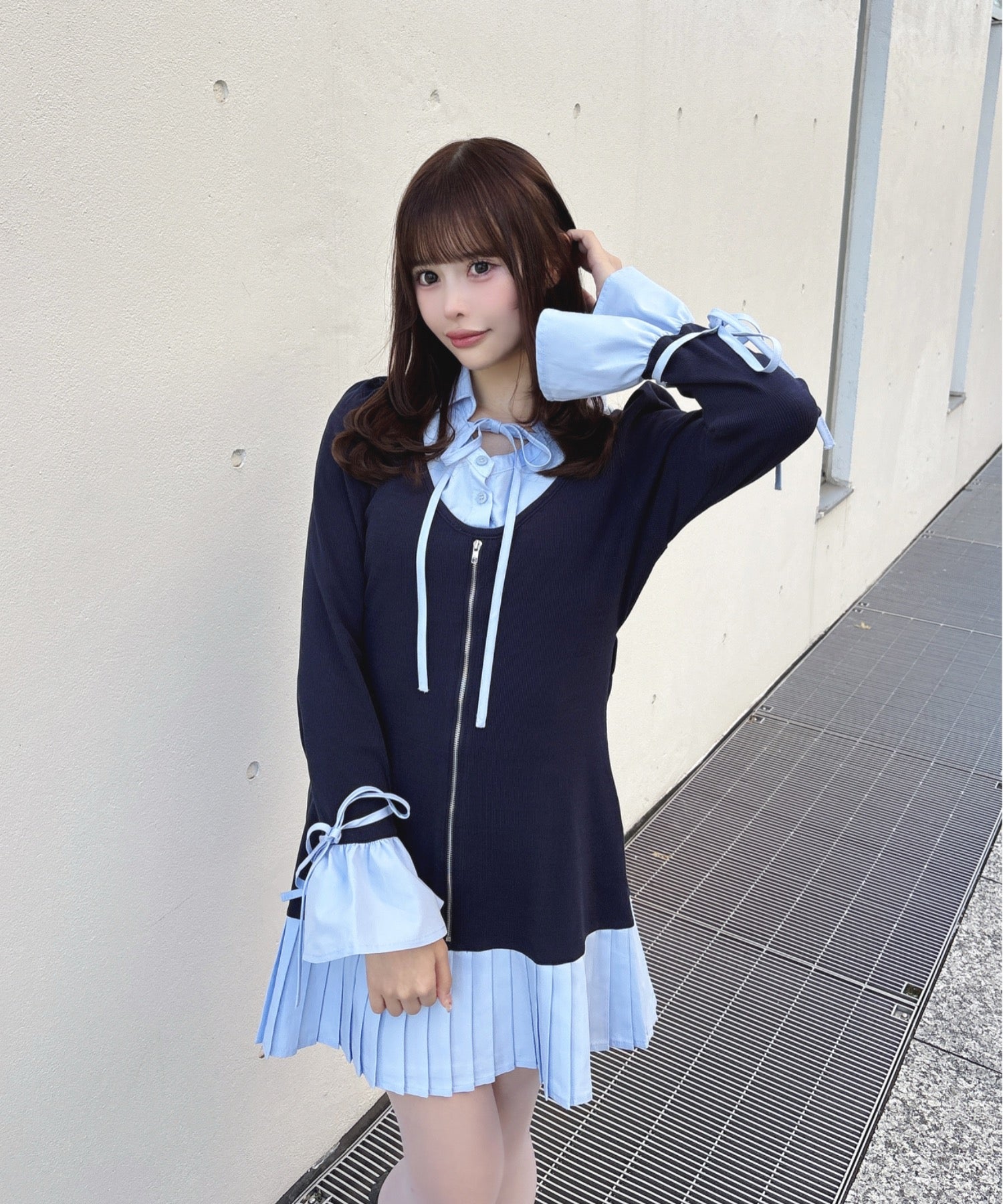 ・1枚でレイヤード風コーデが完成するドッキングワンピ♡