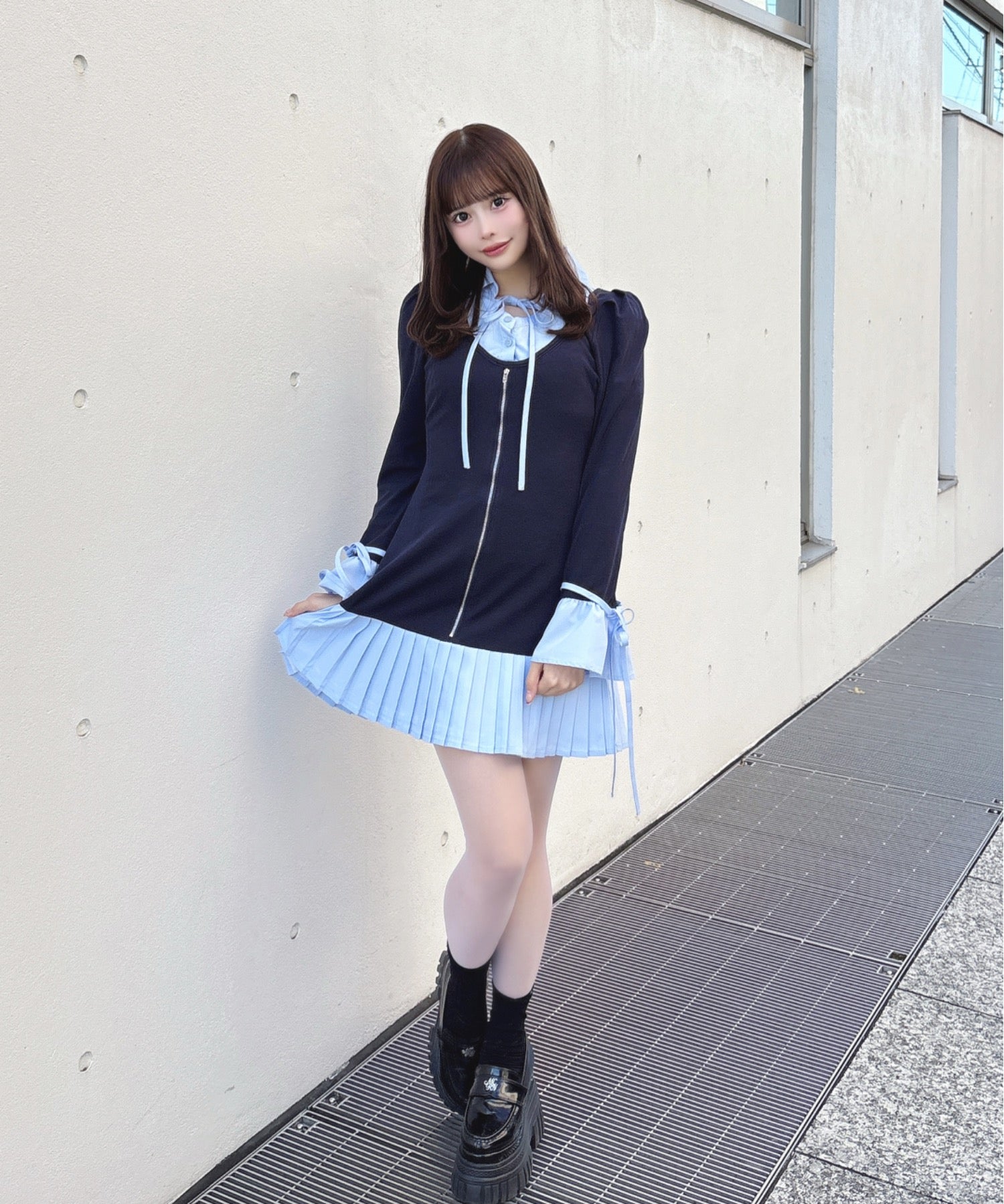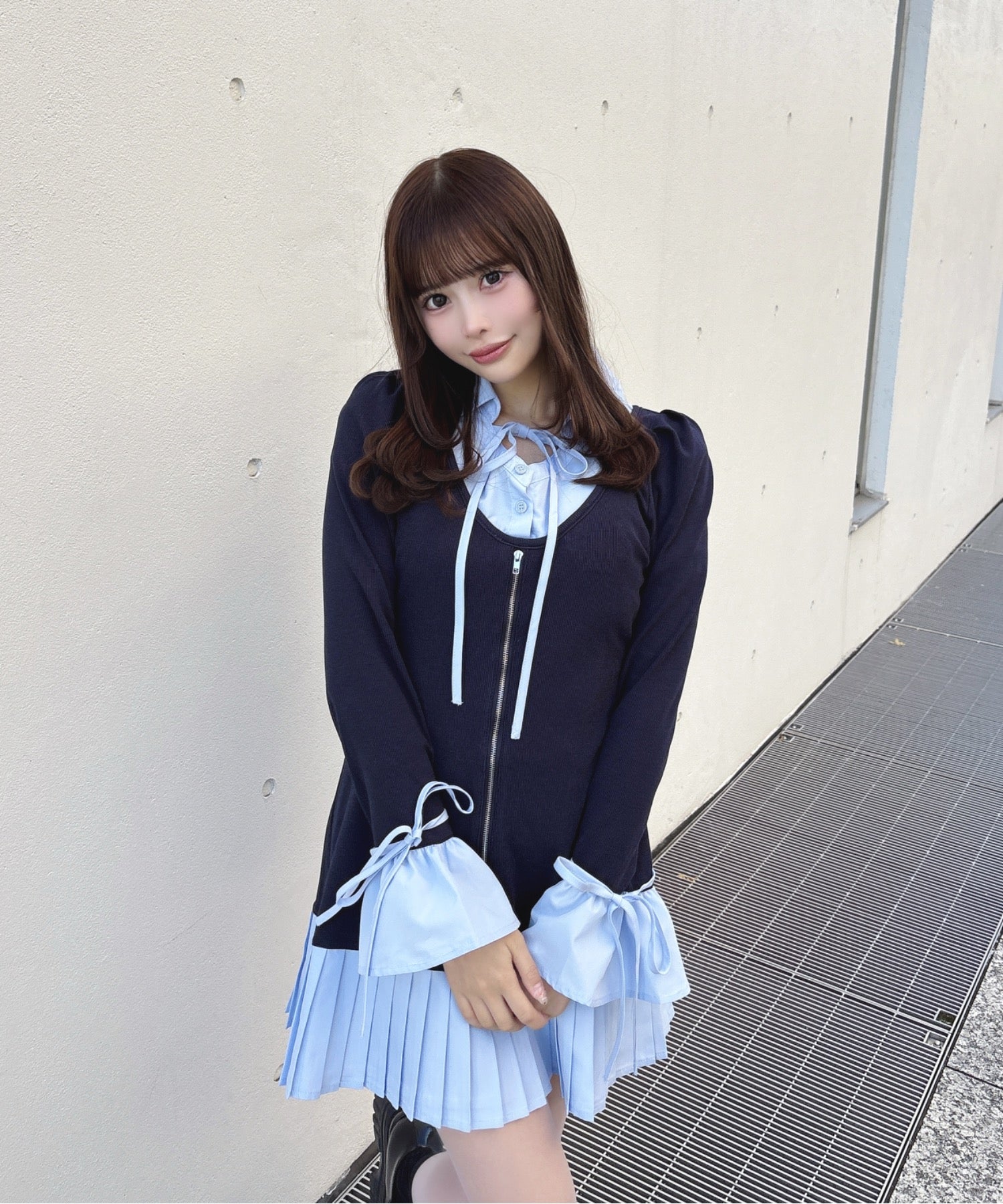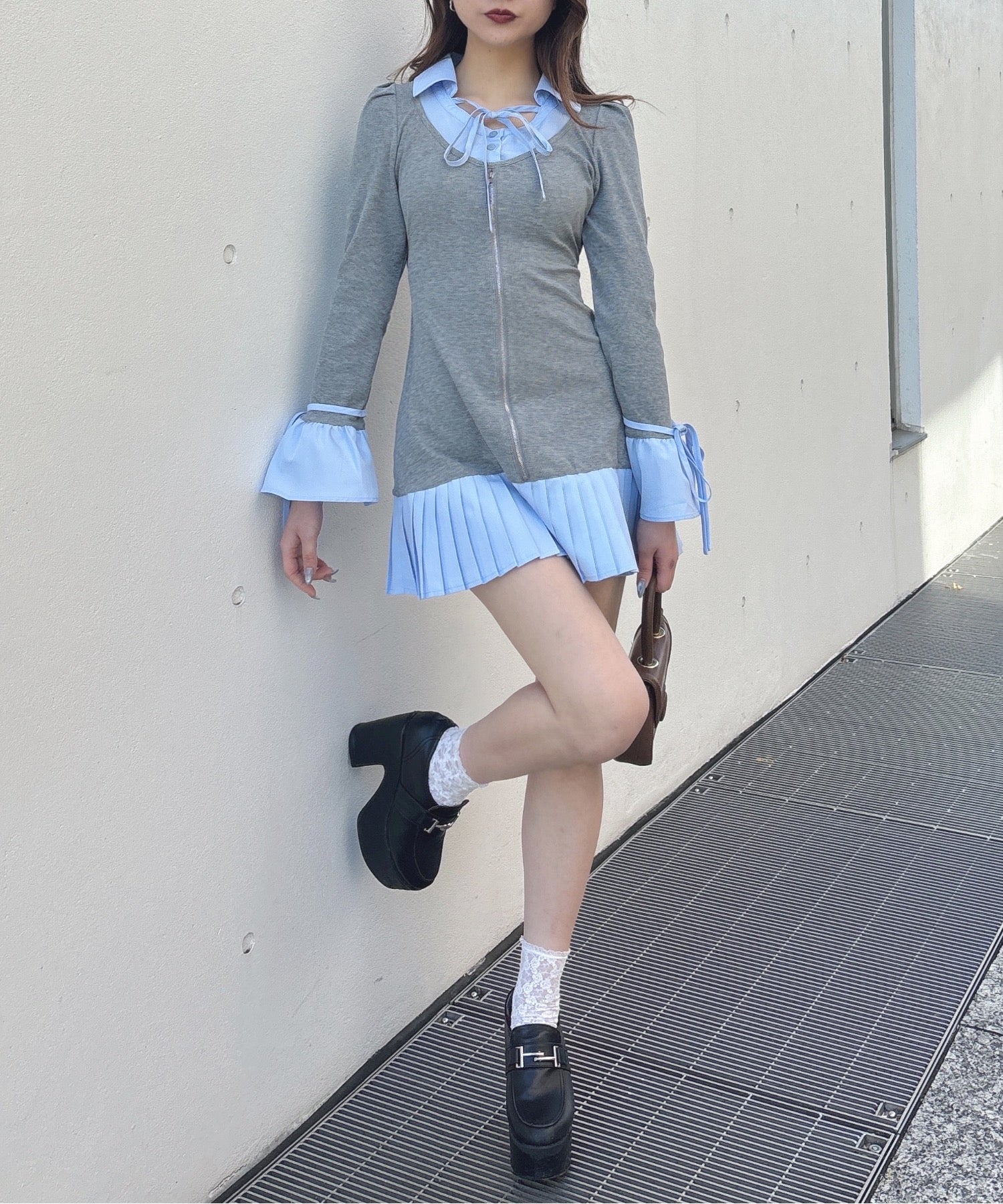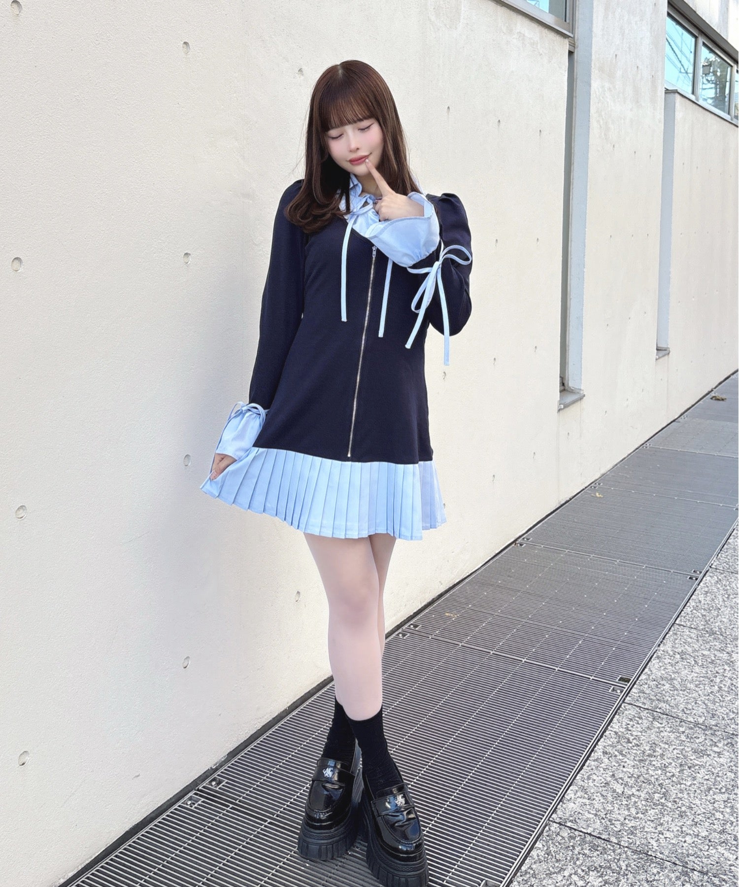 ・1枚でレイヤード風コーデが完成するドッキングワンピ♡