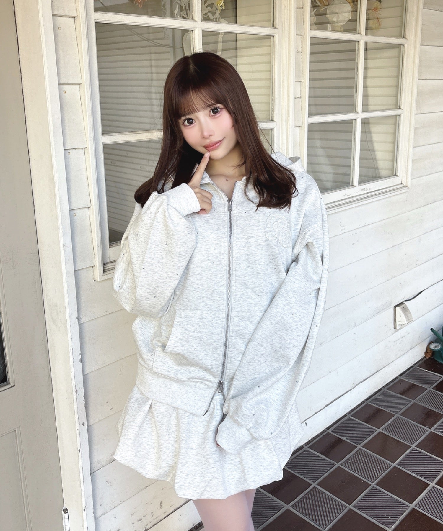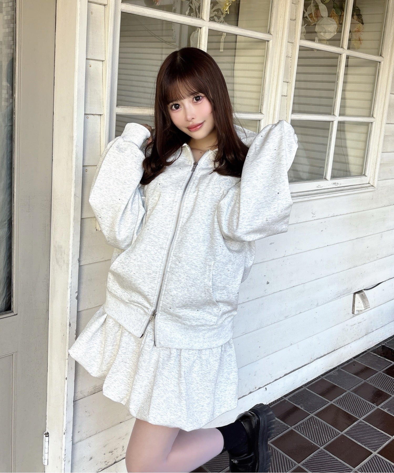 ・セットアップ対応のビジューまみれパーカーと合わせるのがおすすめ♩