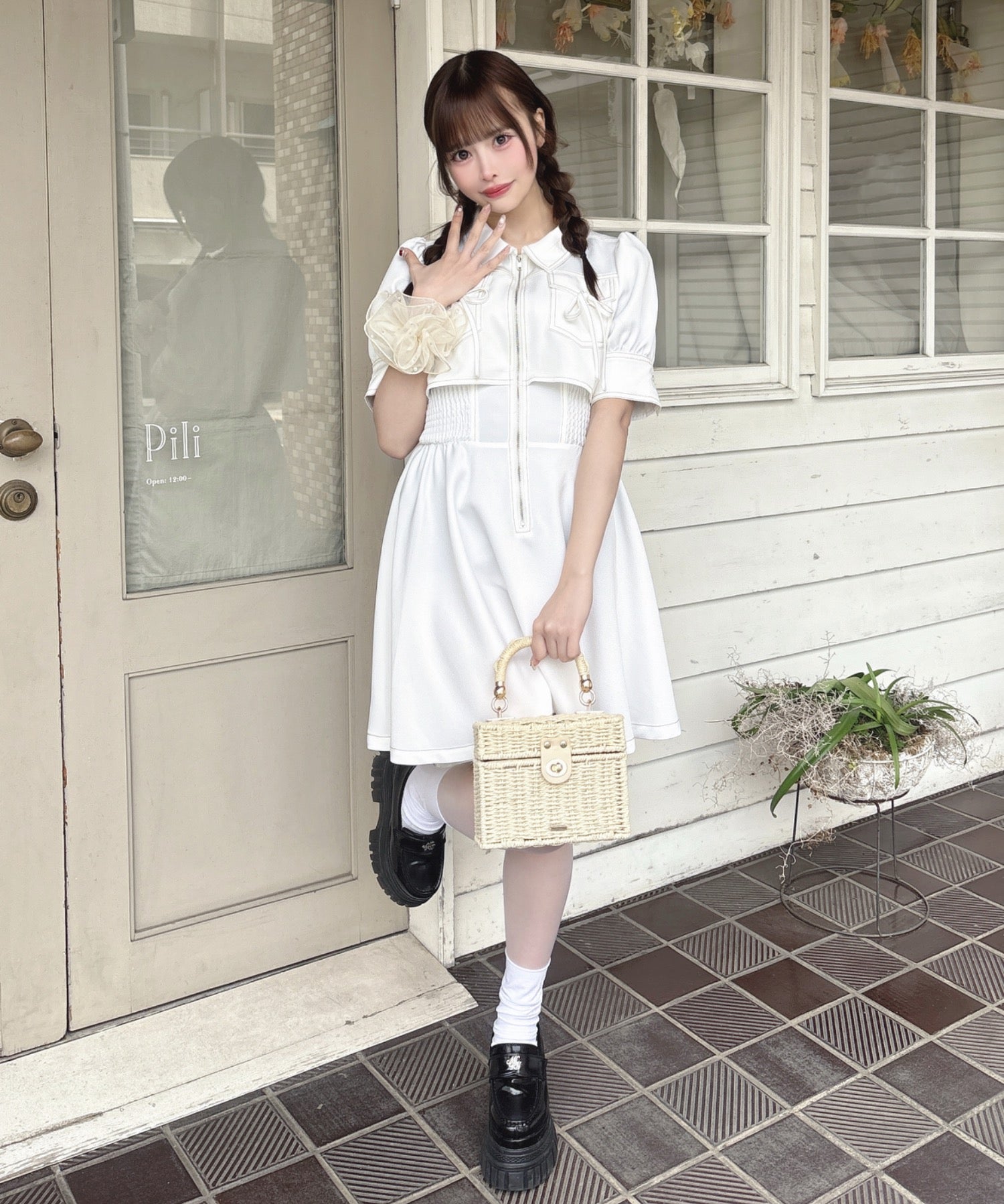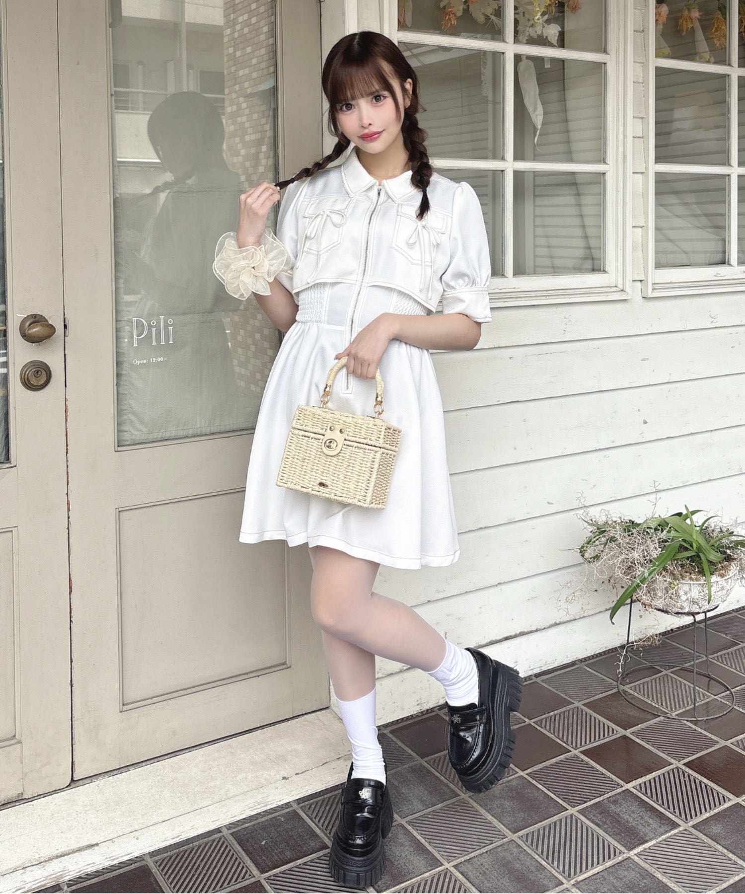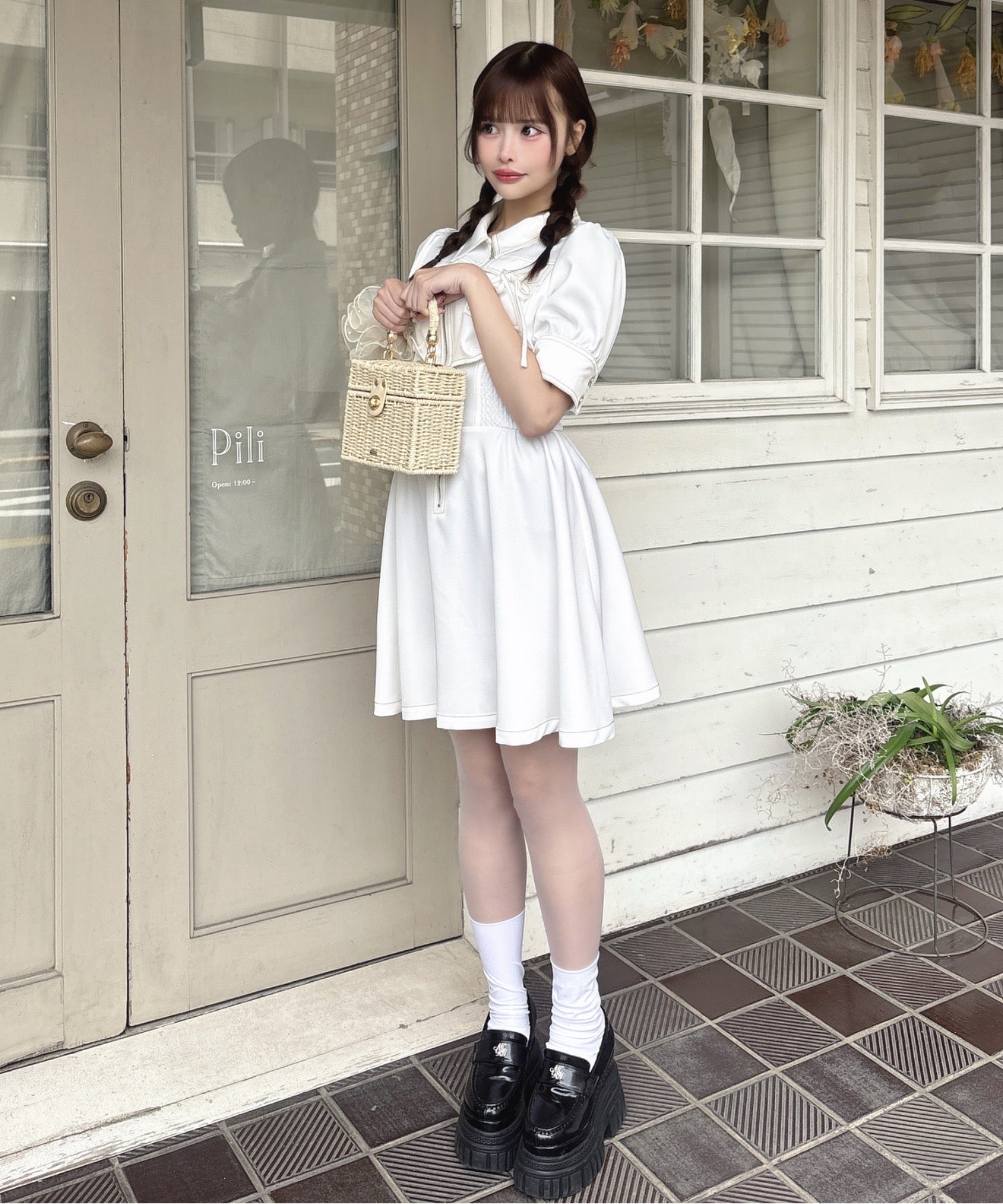 ・足元にローファーを合わせるとフレンチガーリーな印象に♪