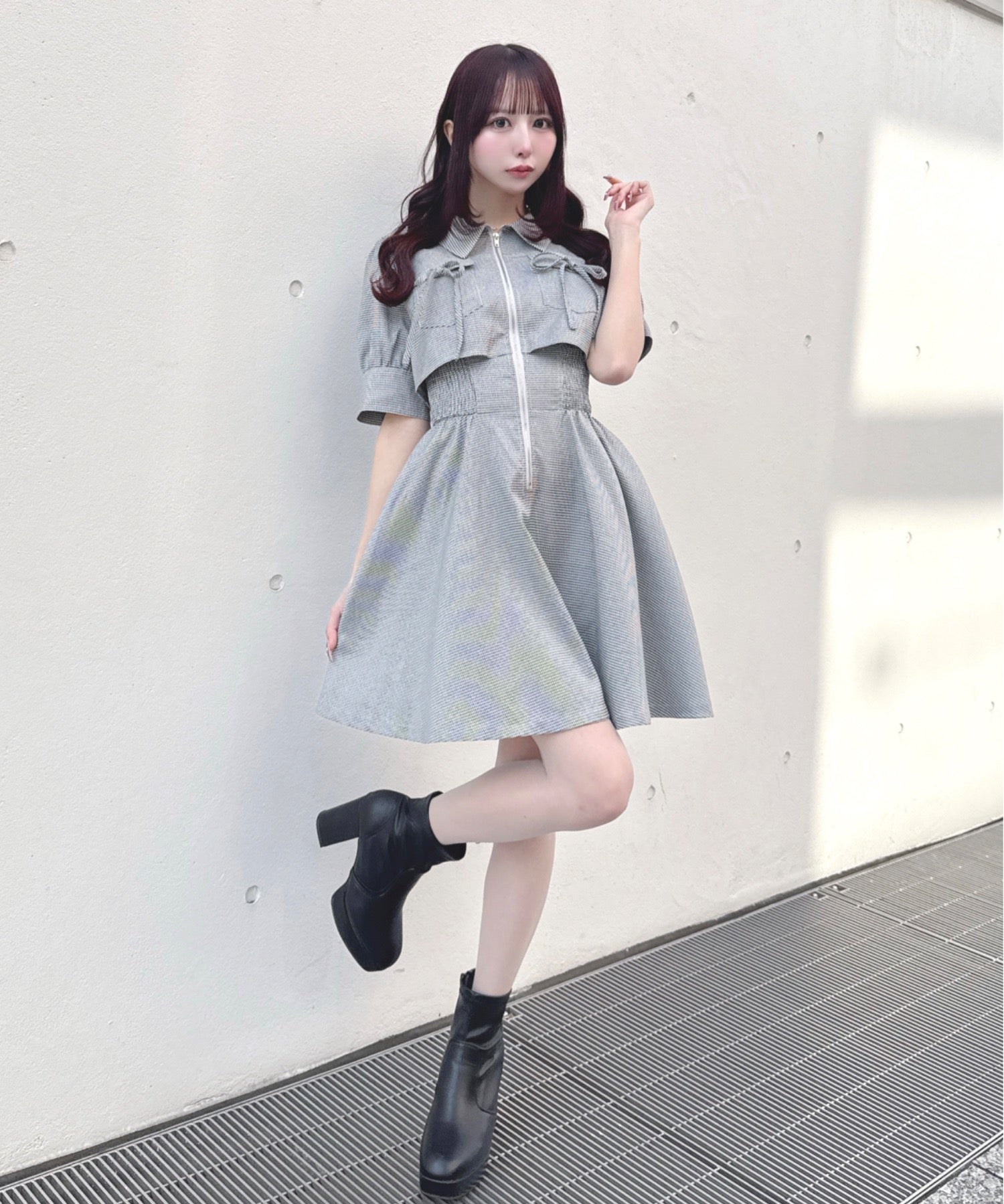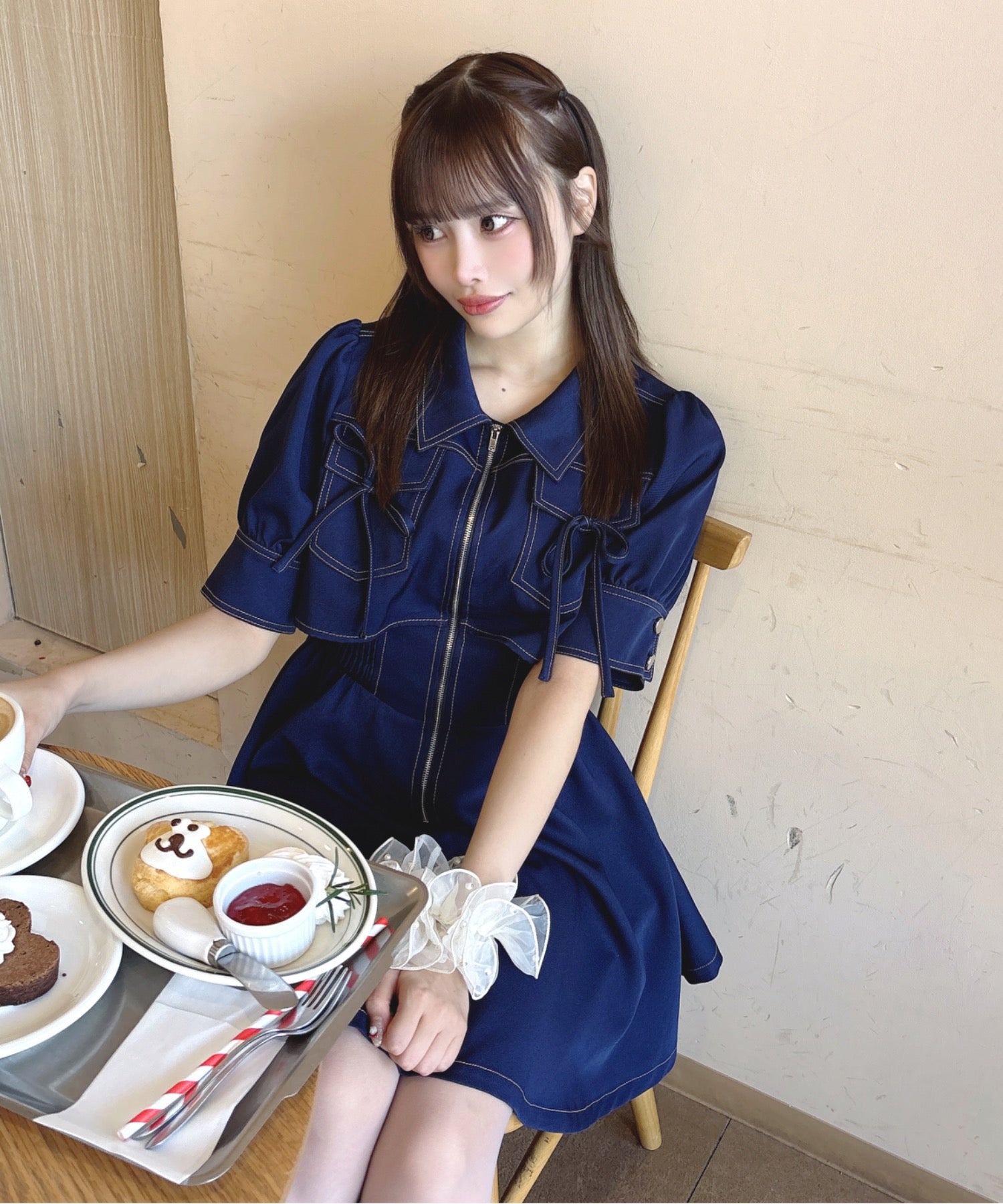 【予約商品 3月下旬発送】レイヤードフロントジップワンピース