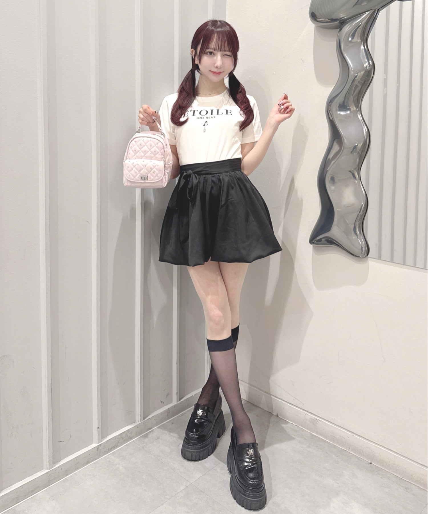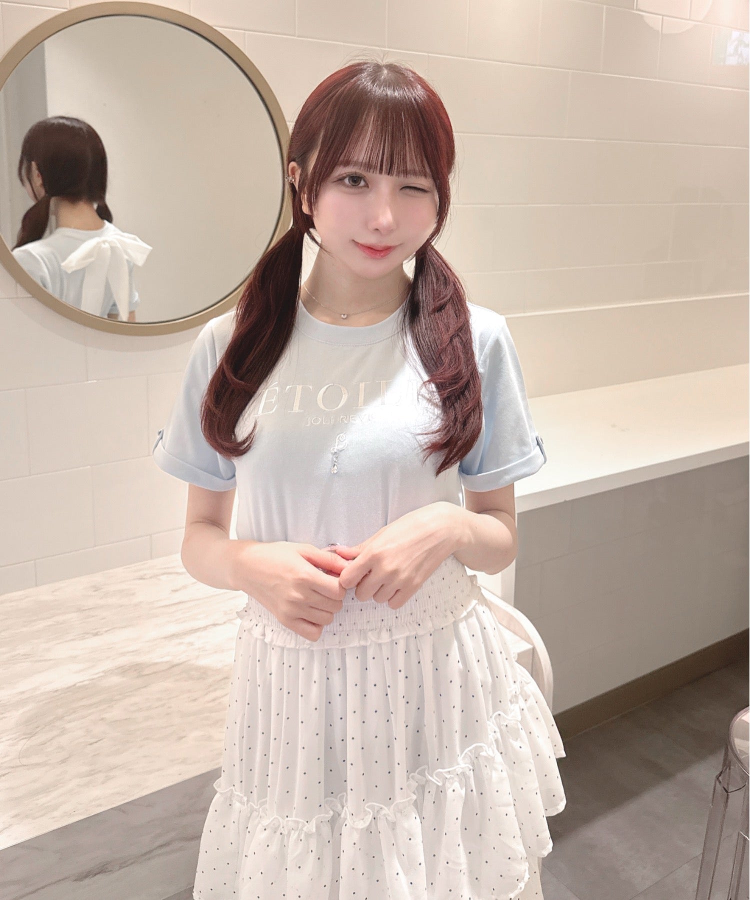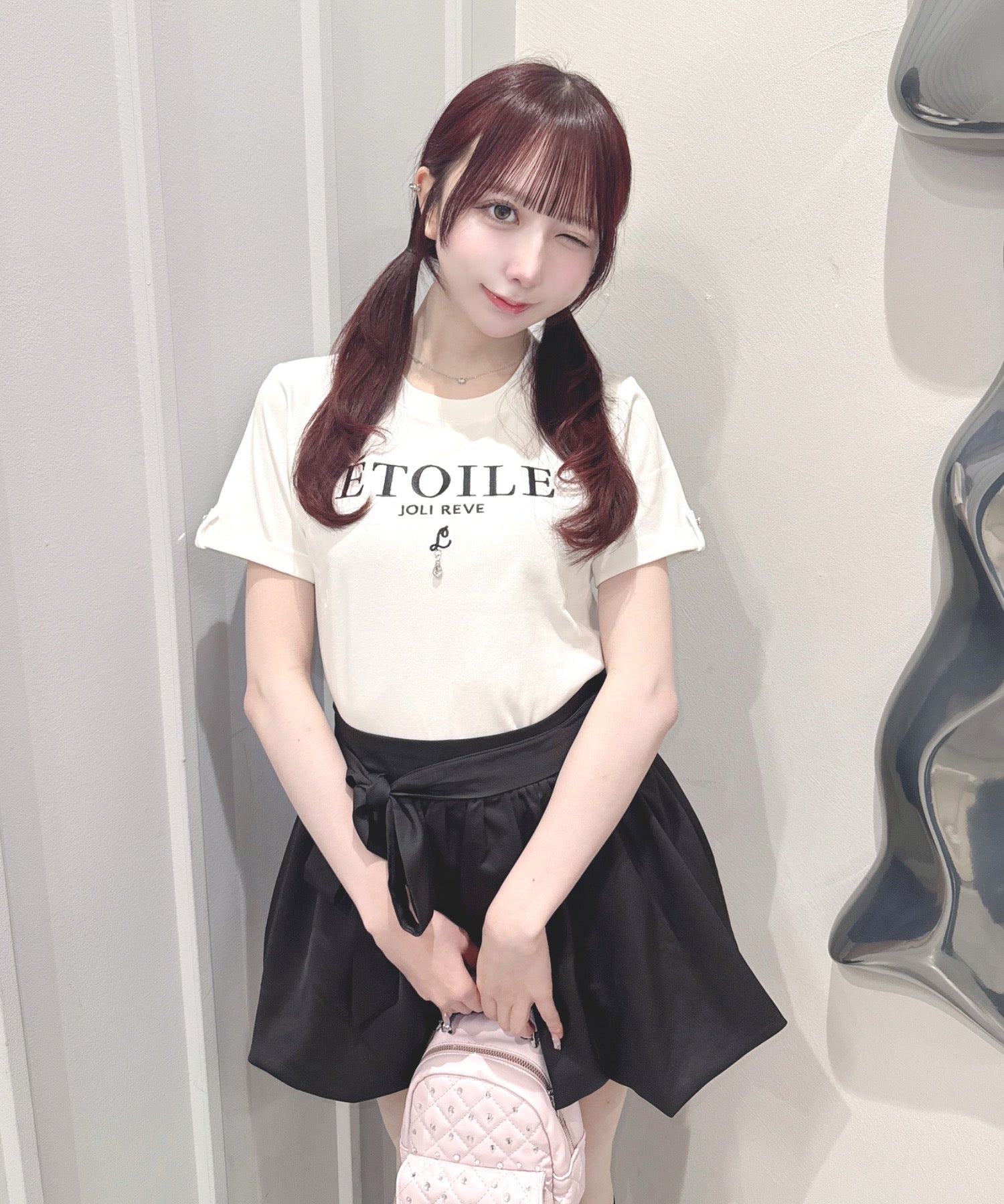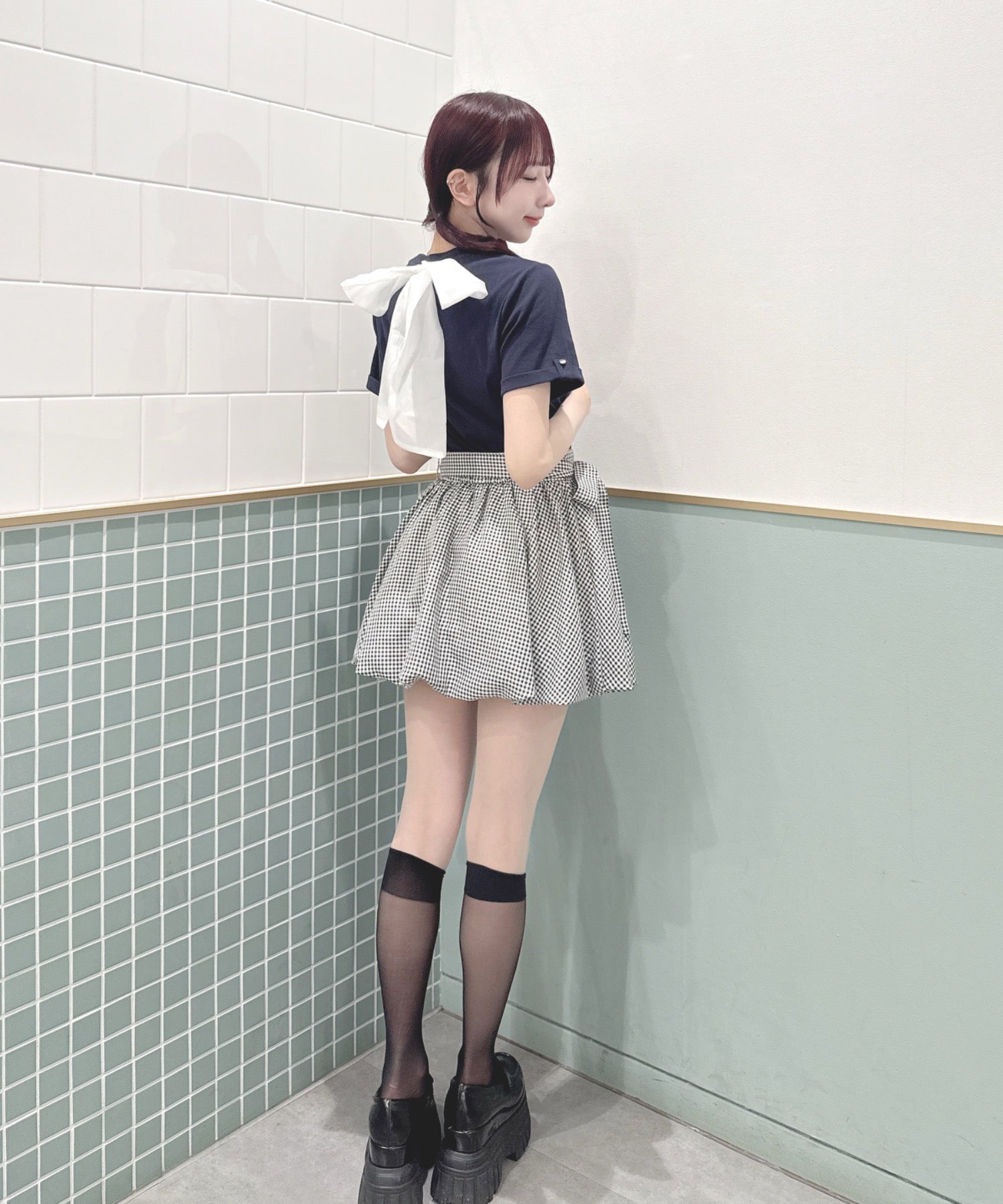 ・ミニスカート合わせでリボンを主役にしたガーリーコーデに♡