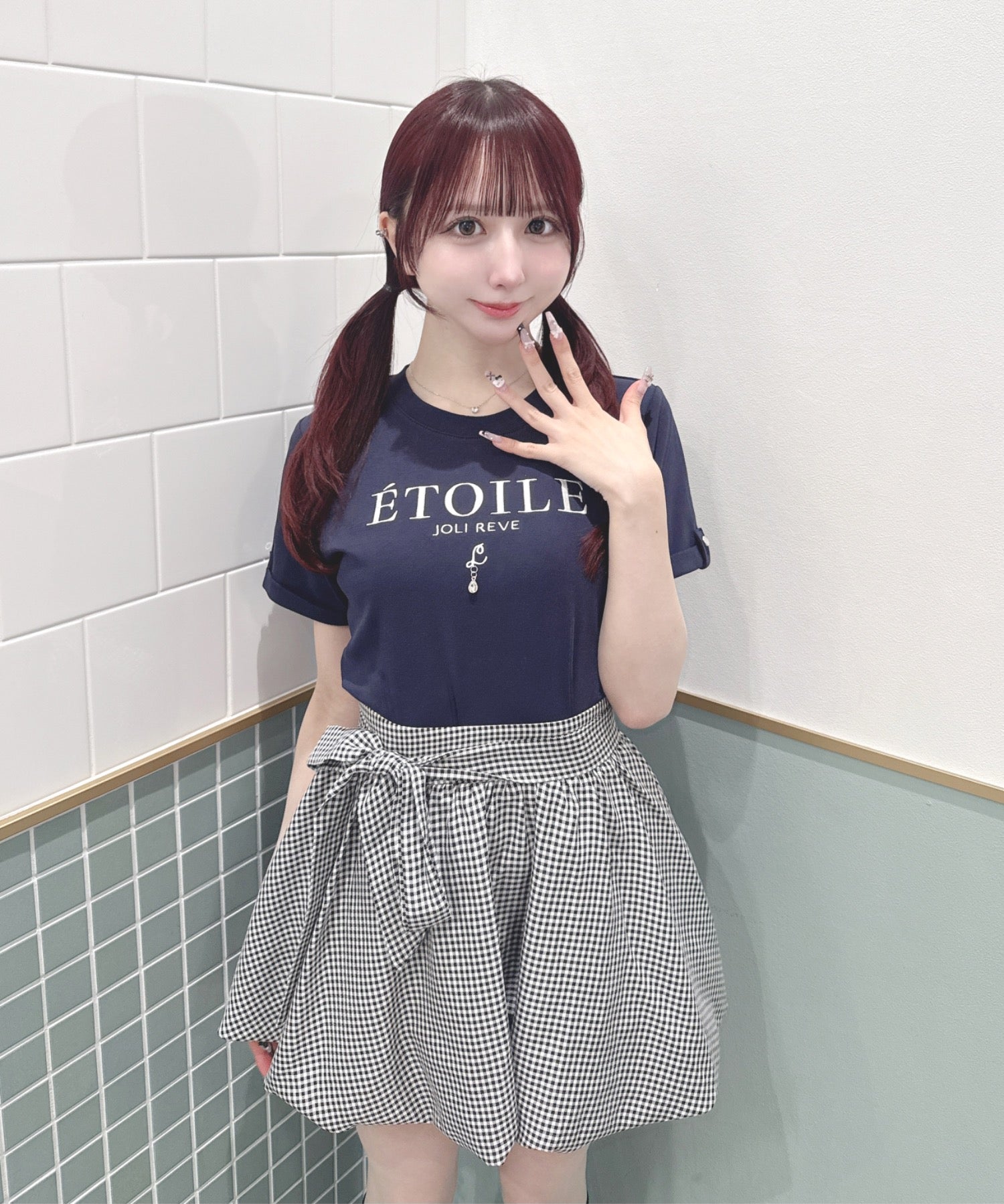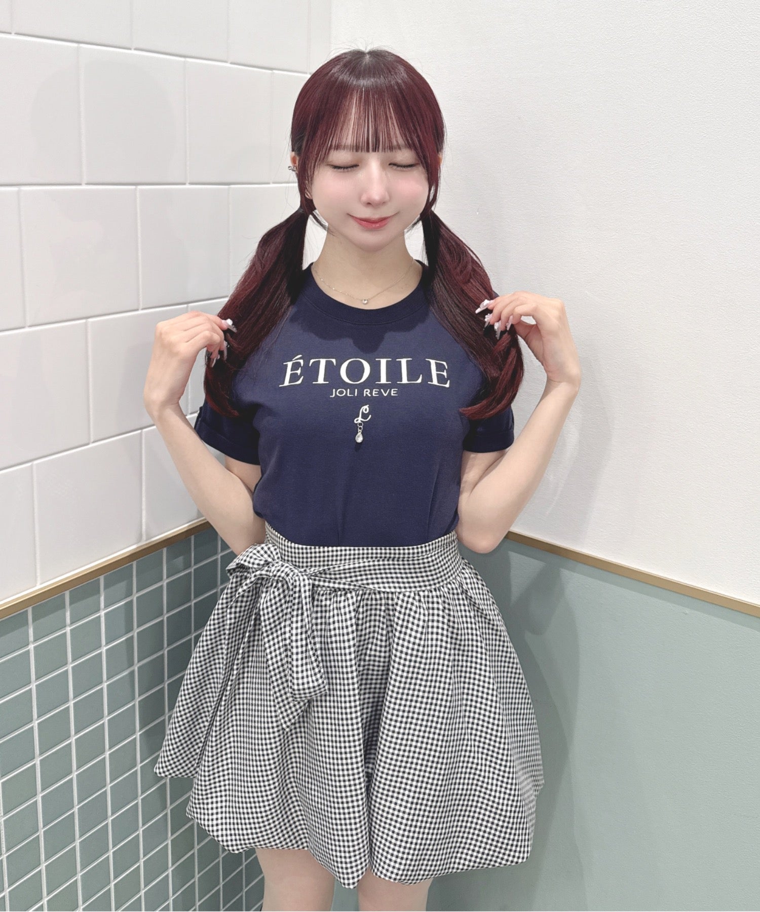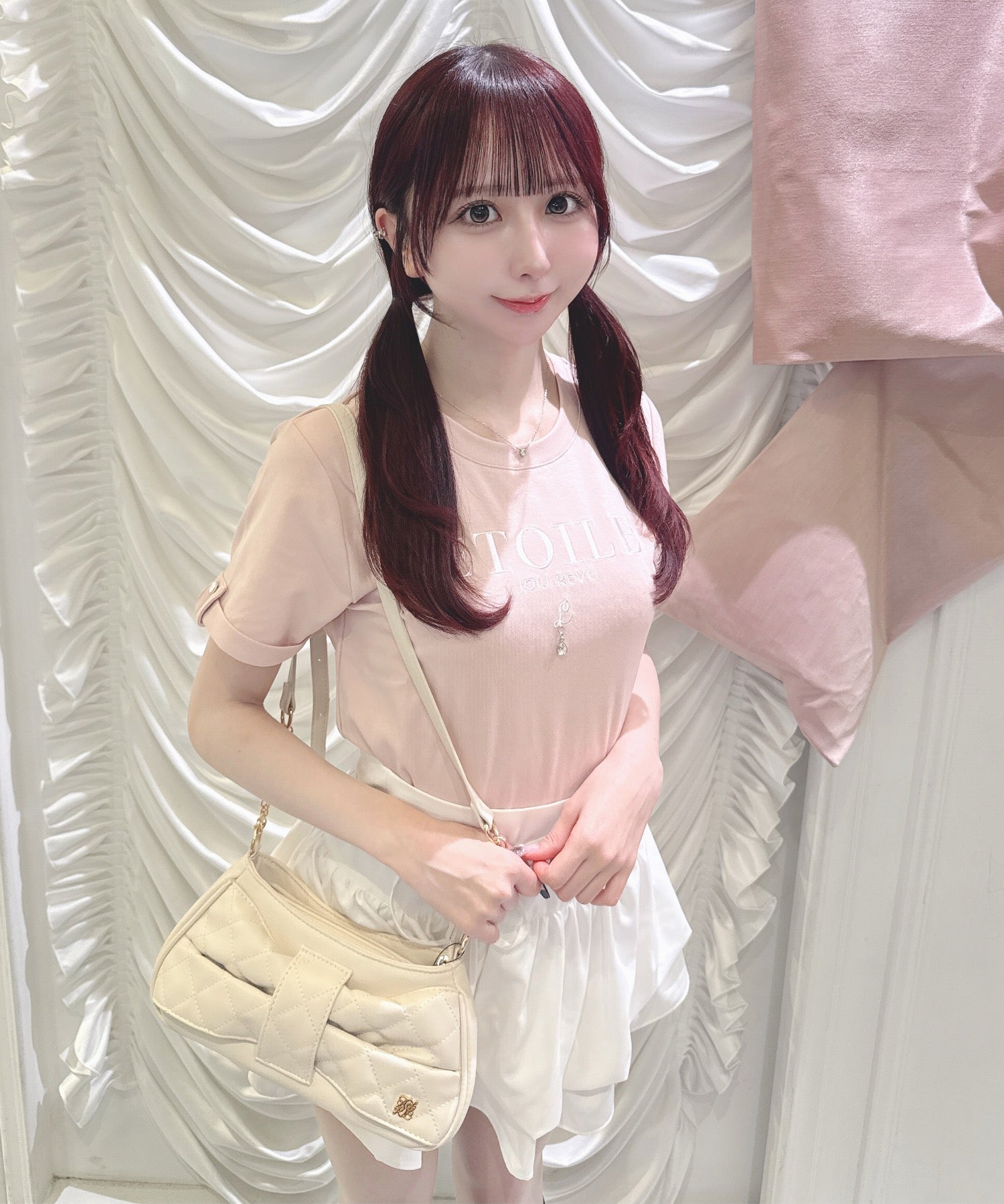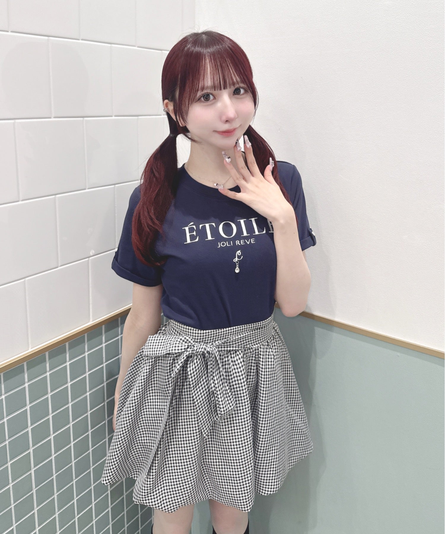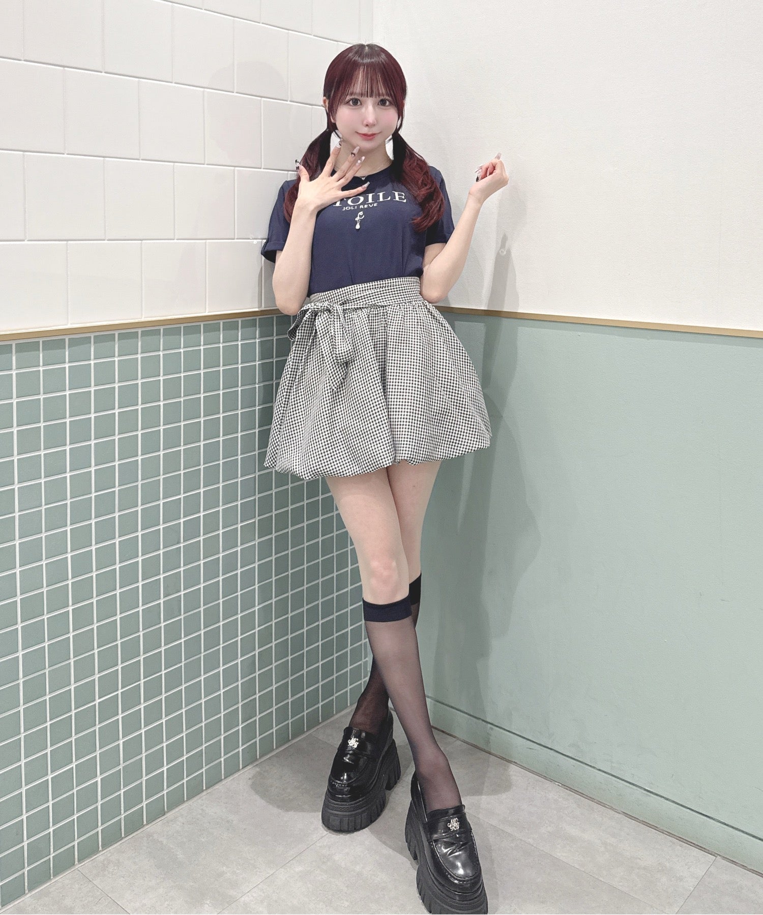 ・ミニスカート合わせでリボンを主役にしたガーリーコーデに♡