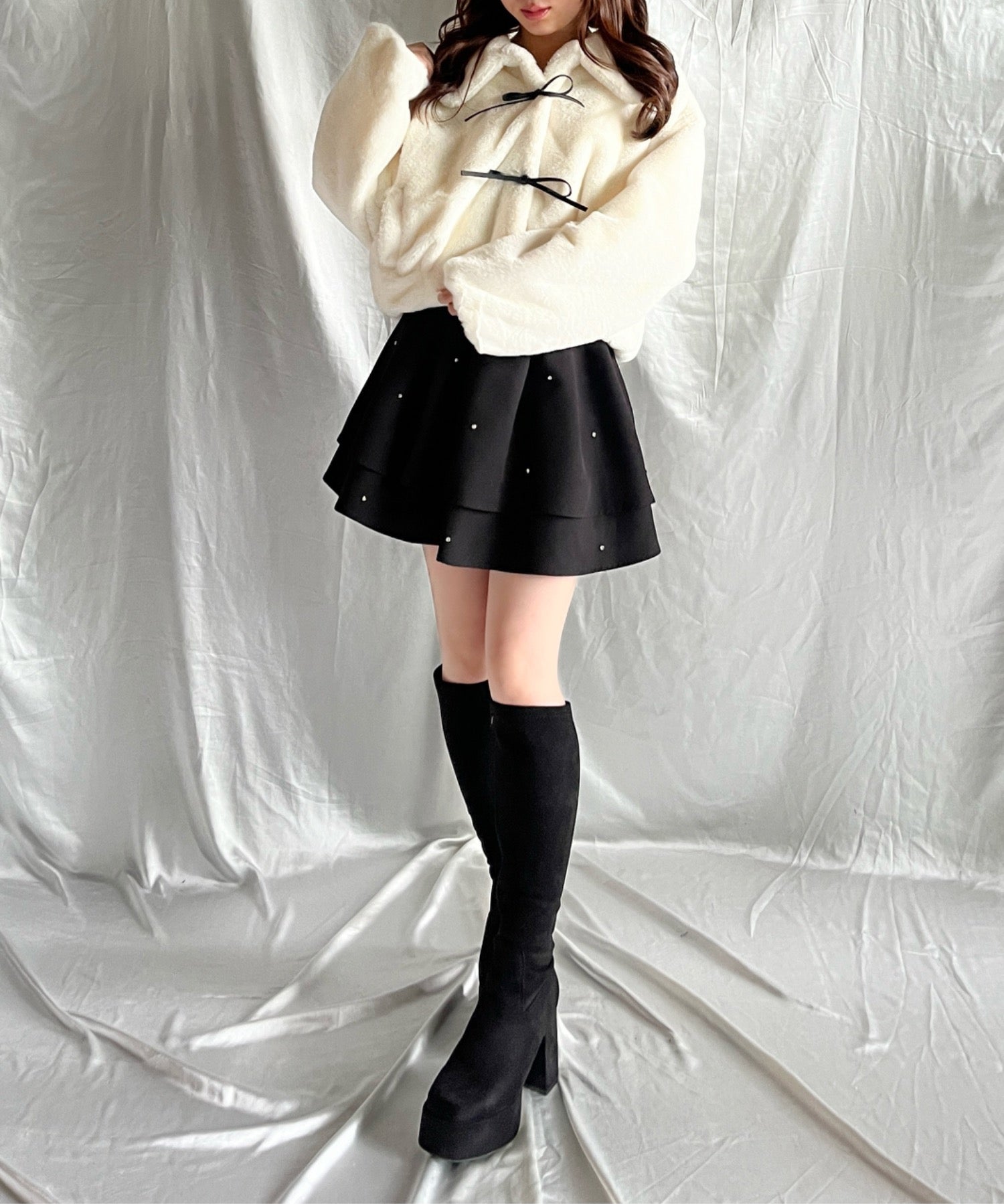 ・ミニスカートにロングブーツやローファーの組み合わせが王道ガーリーでおすすめ♪