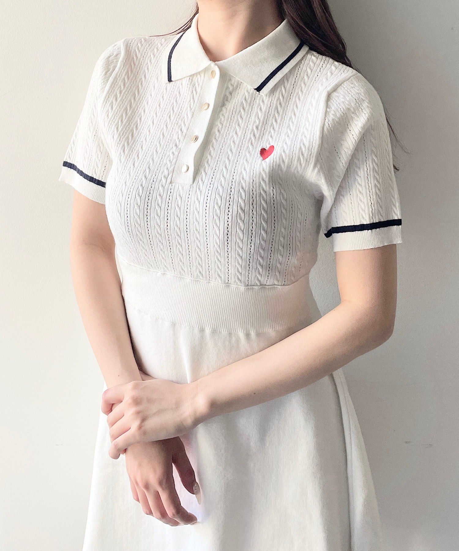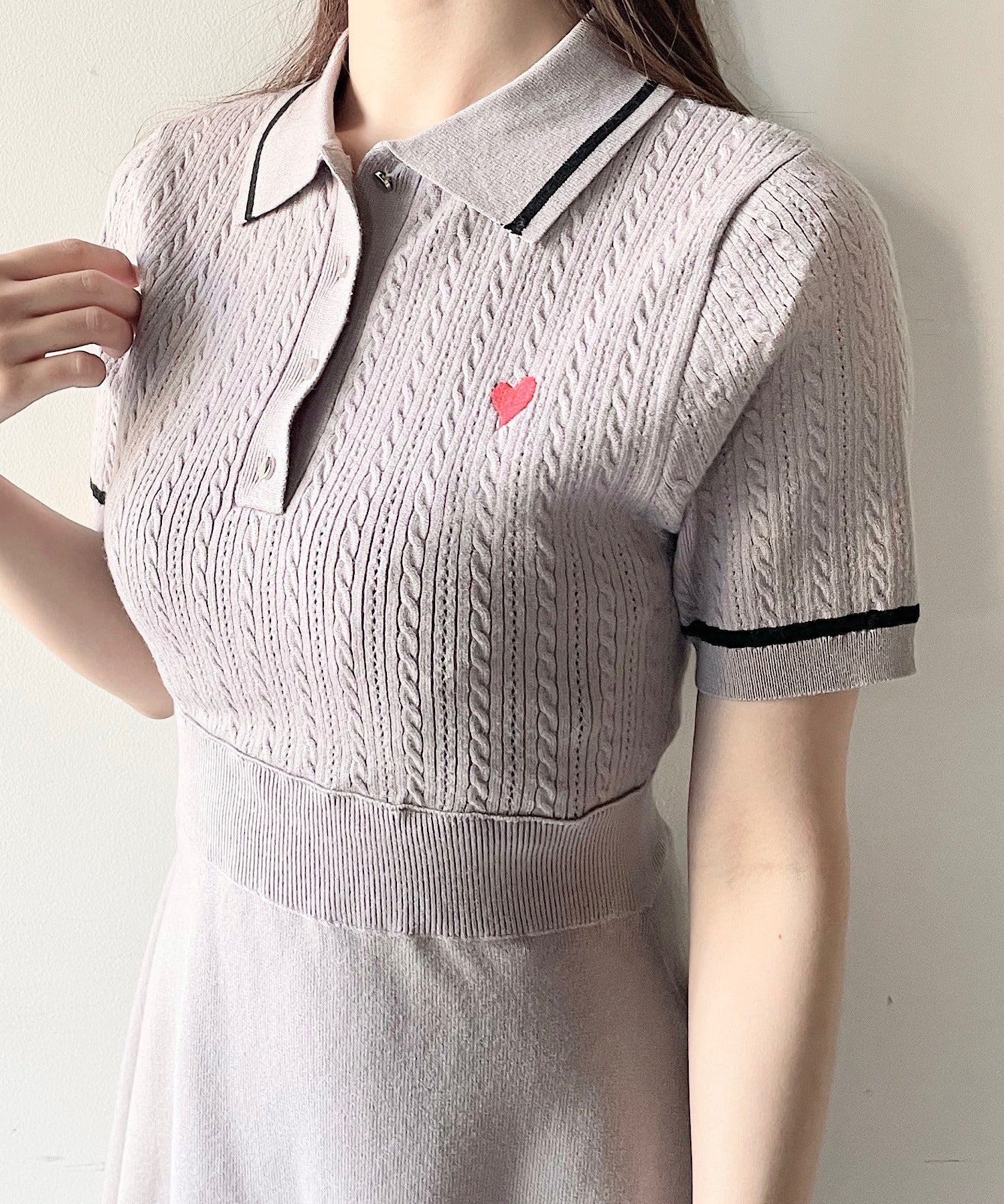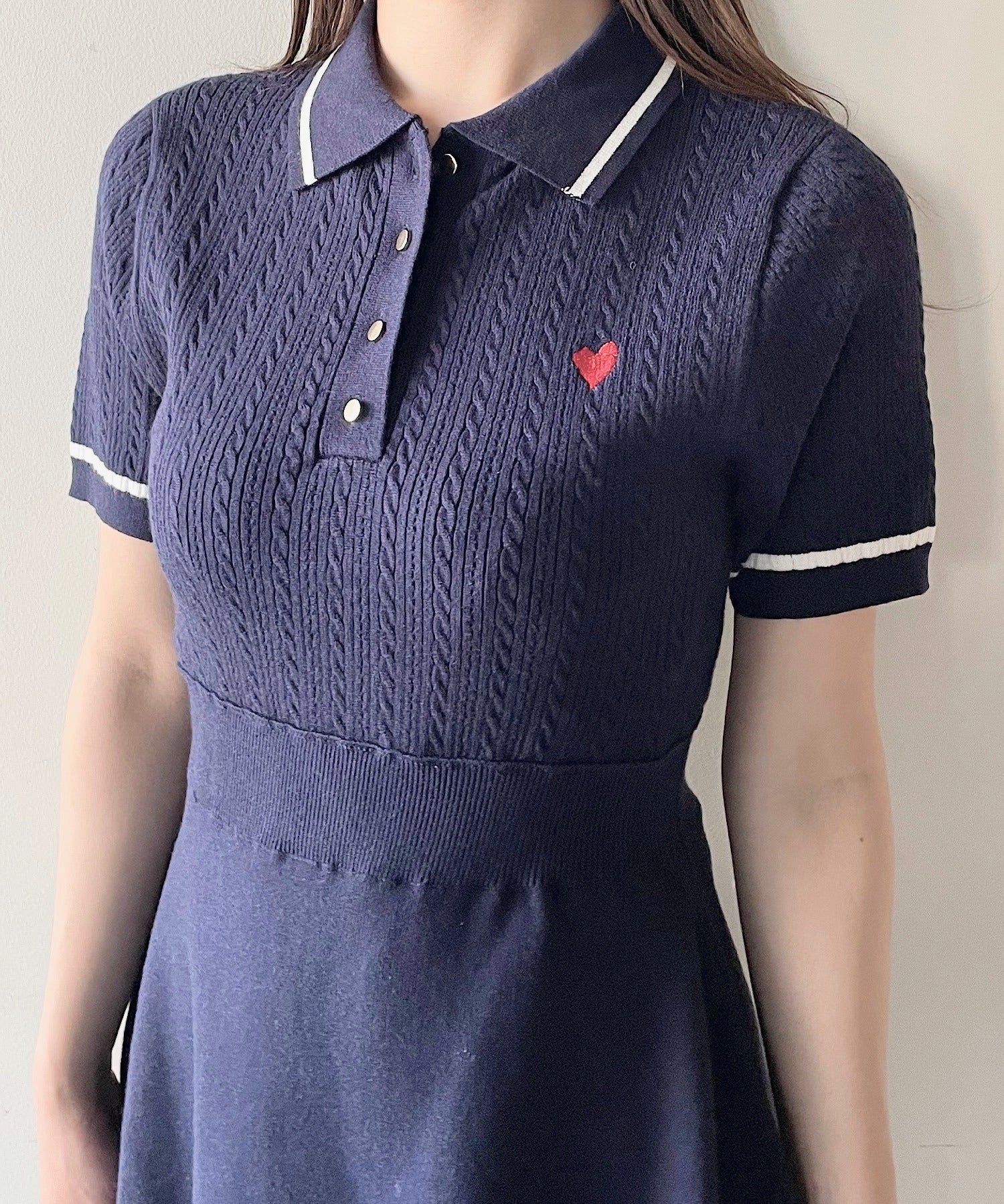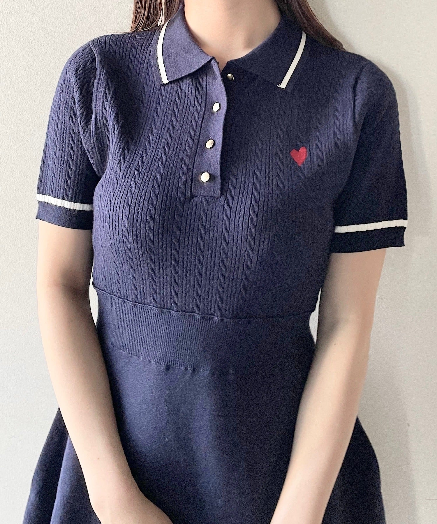 ケーブルポロニットワンピース