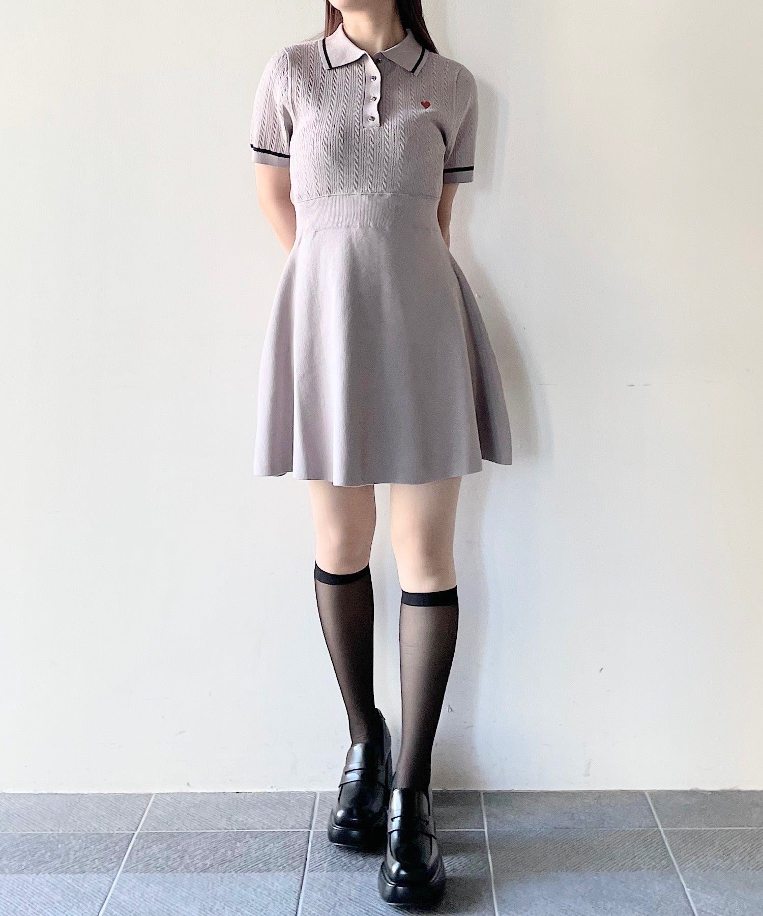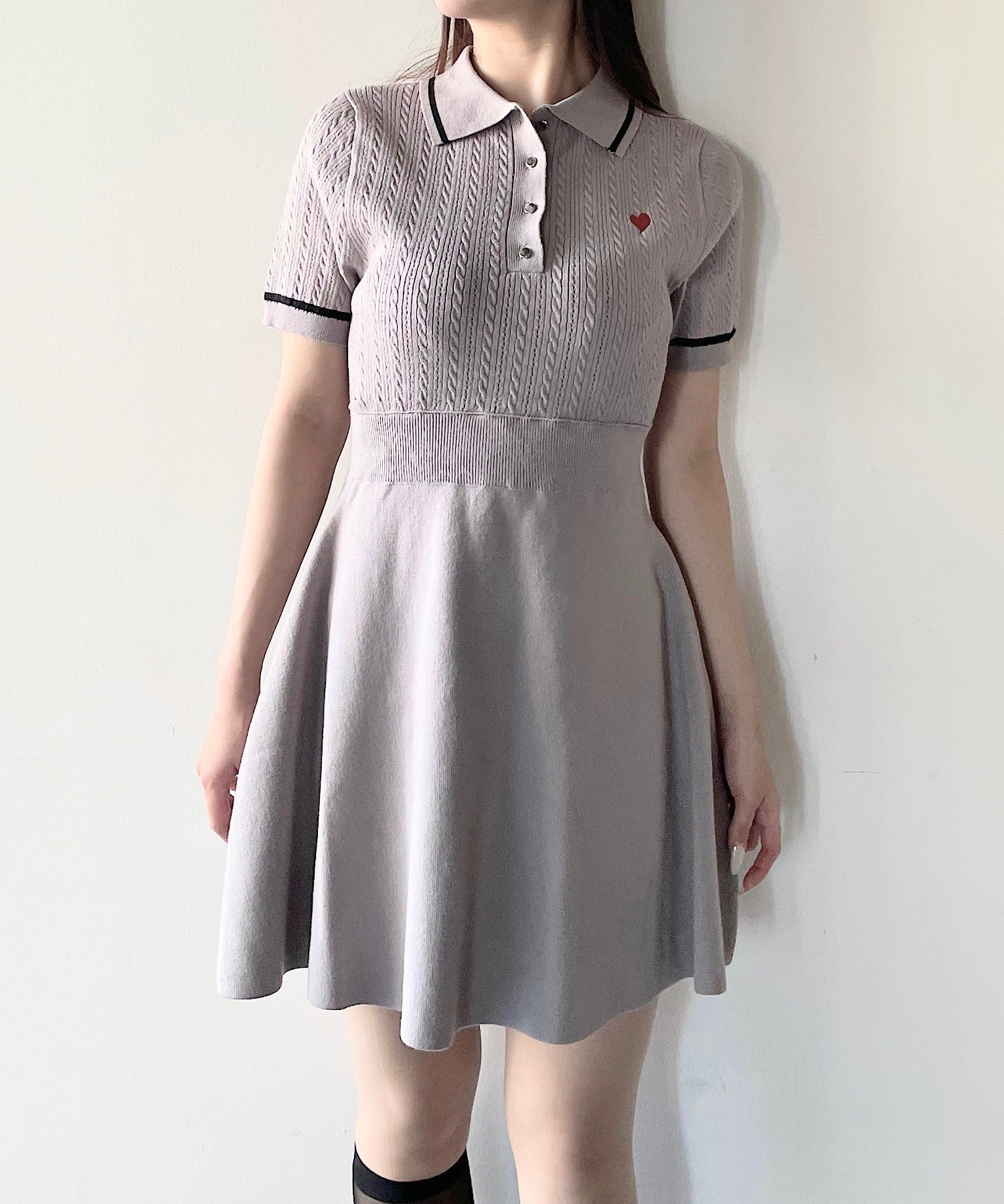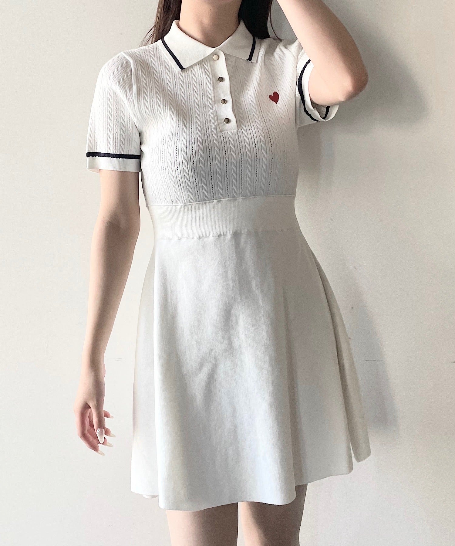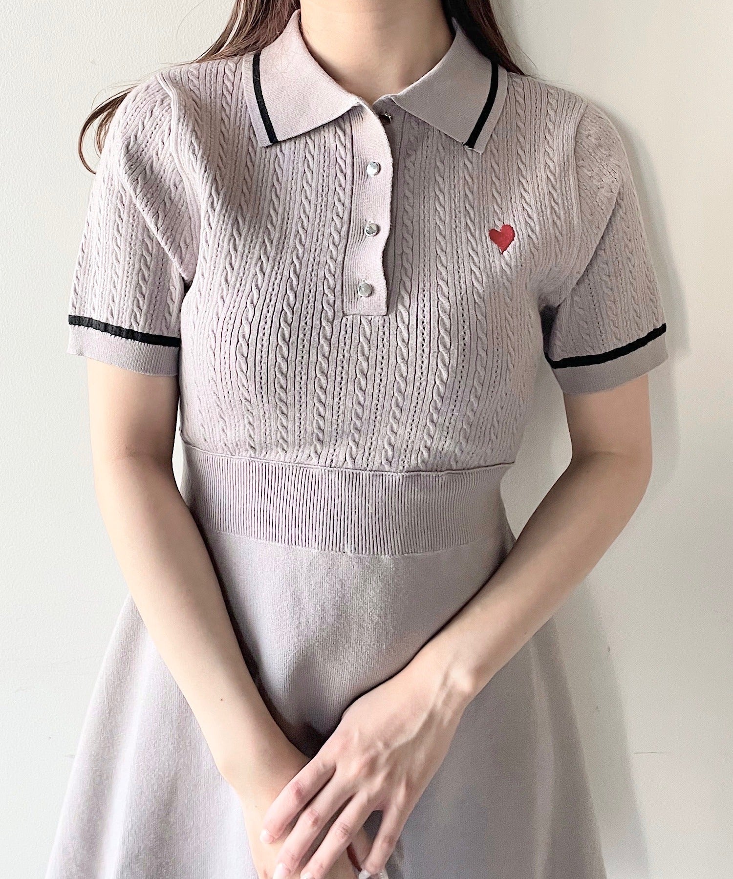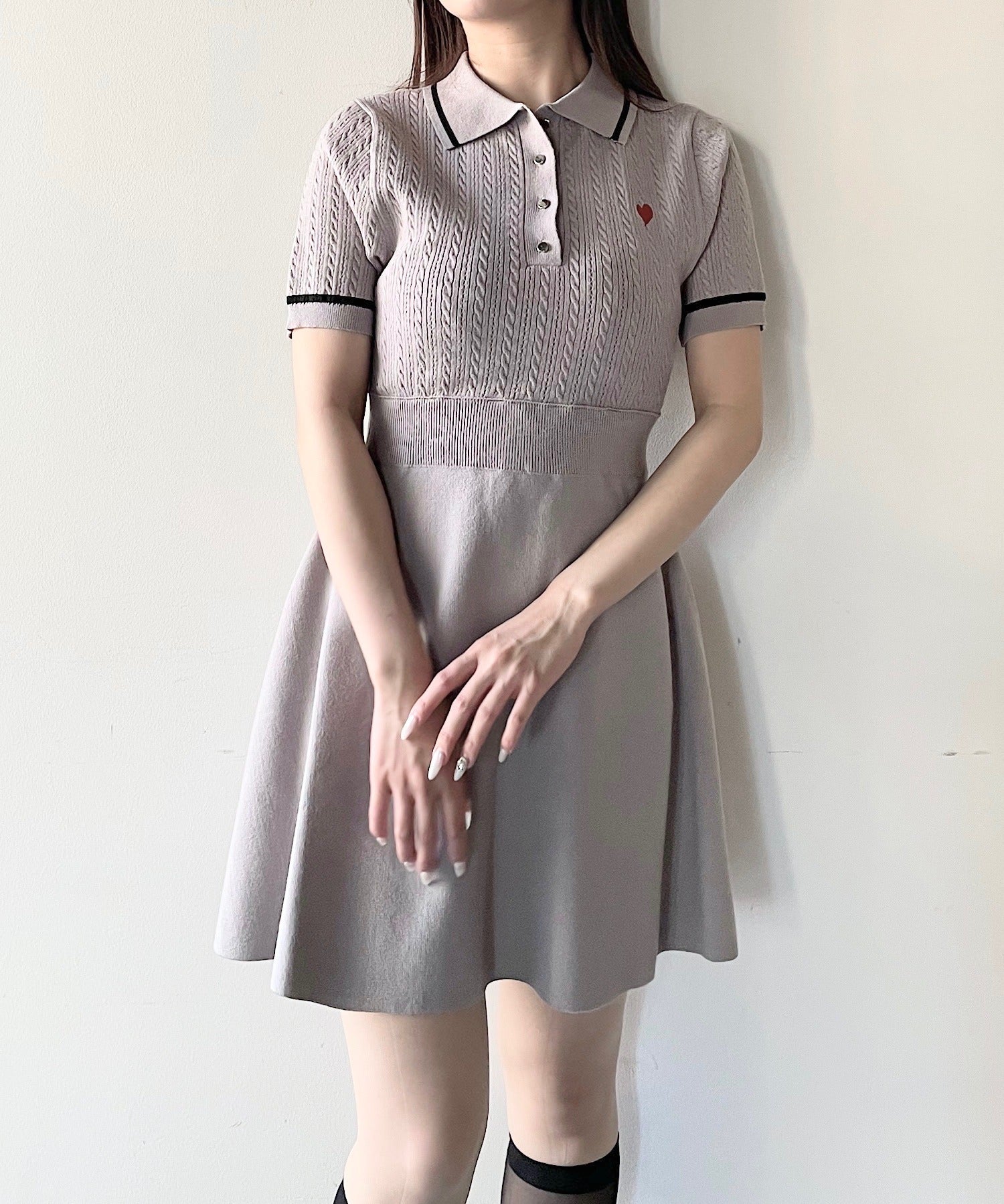 ケーブルポロニットワンピース