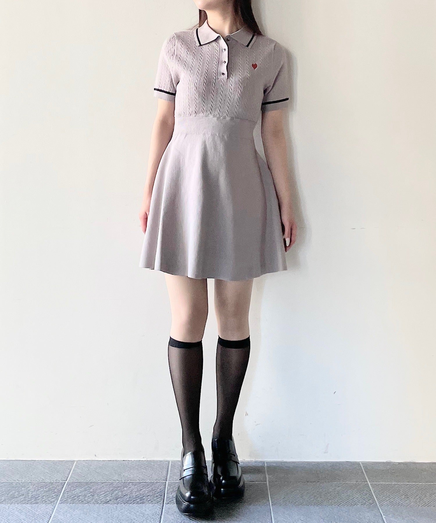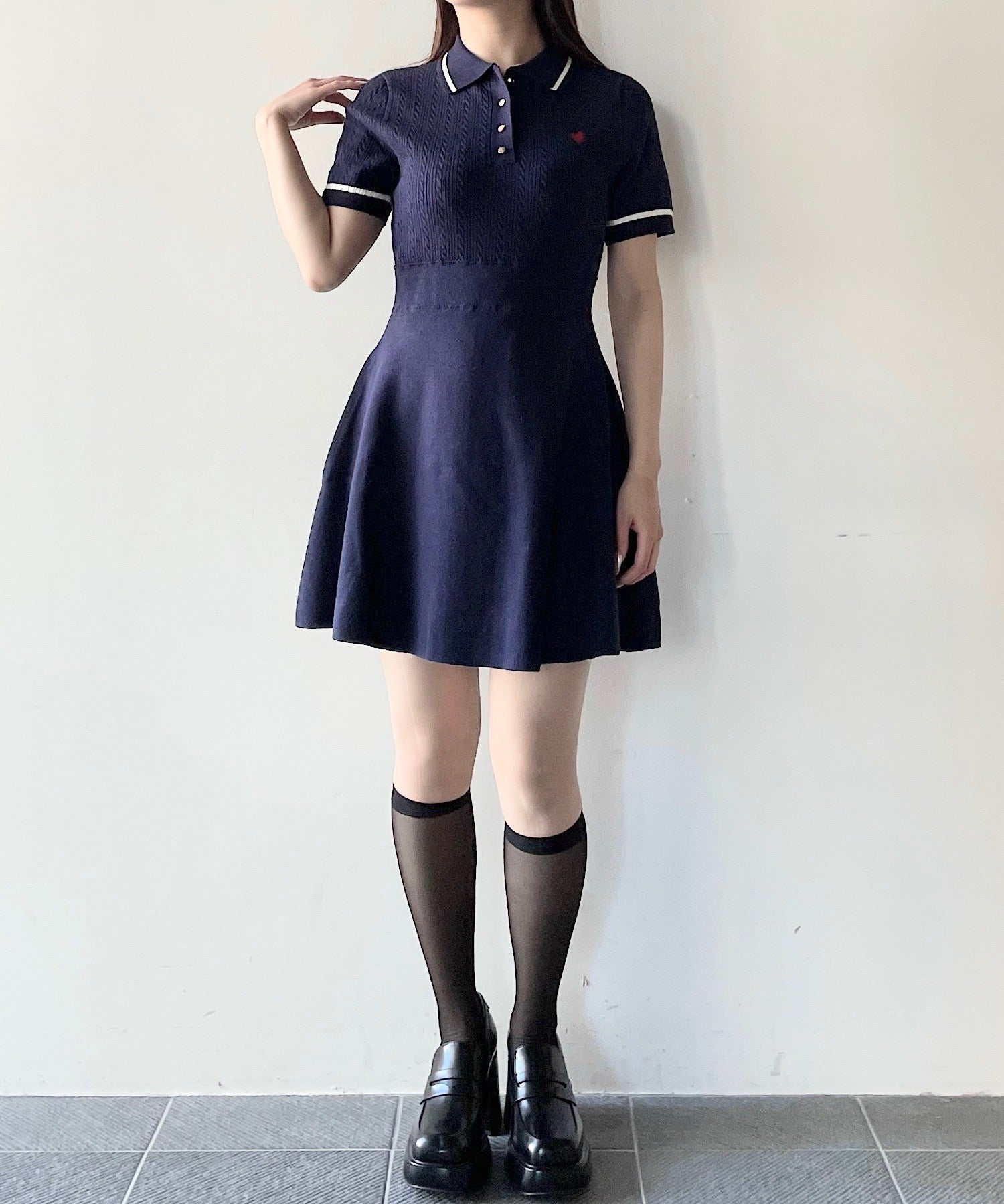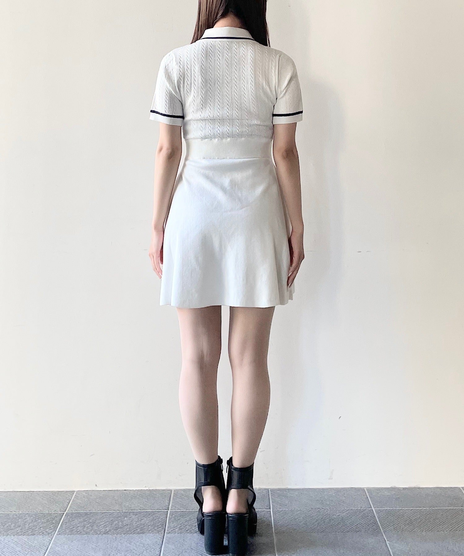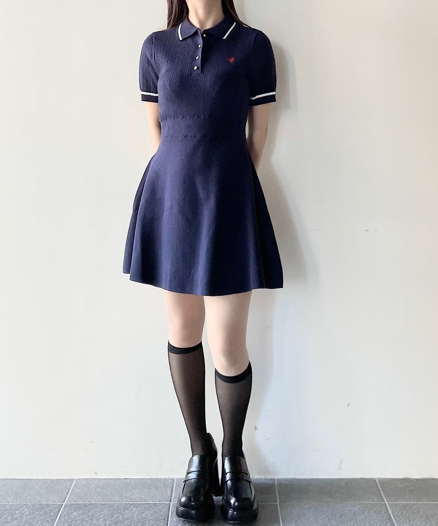 ケーブルポロニットワンピース