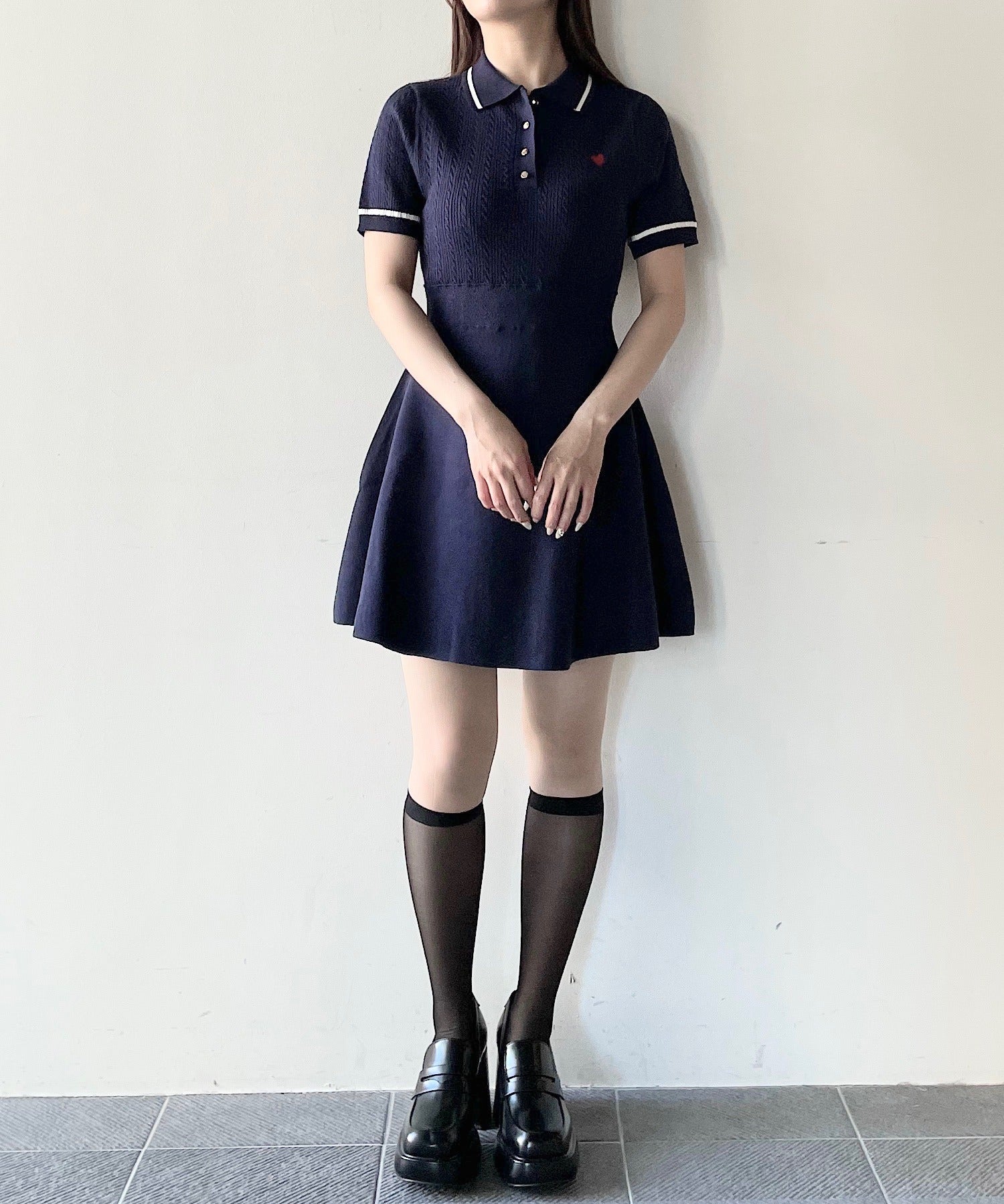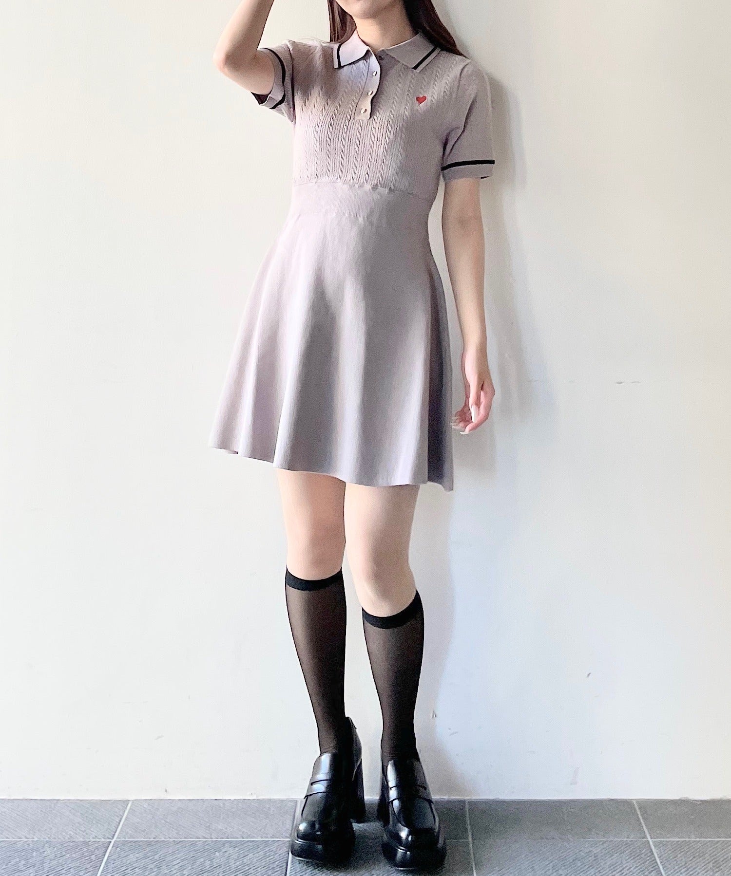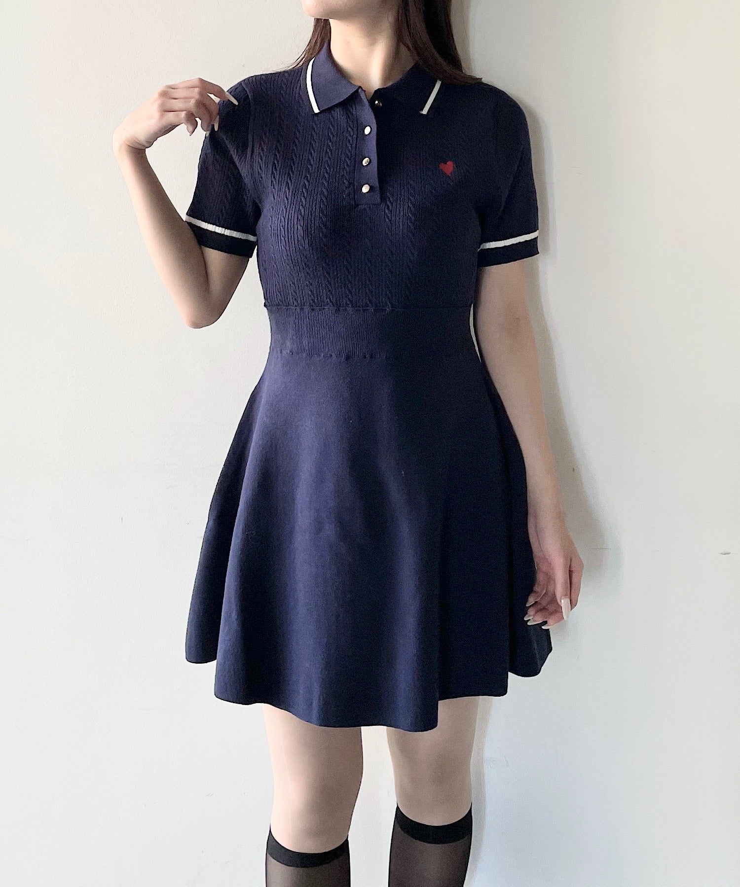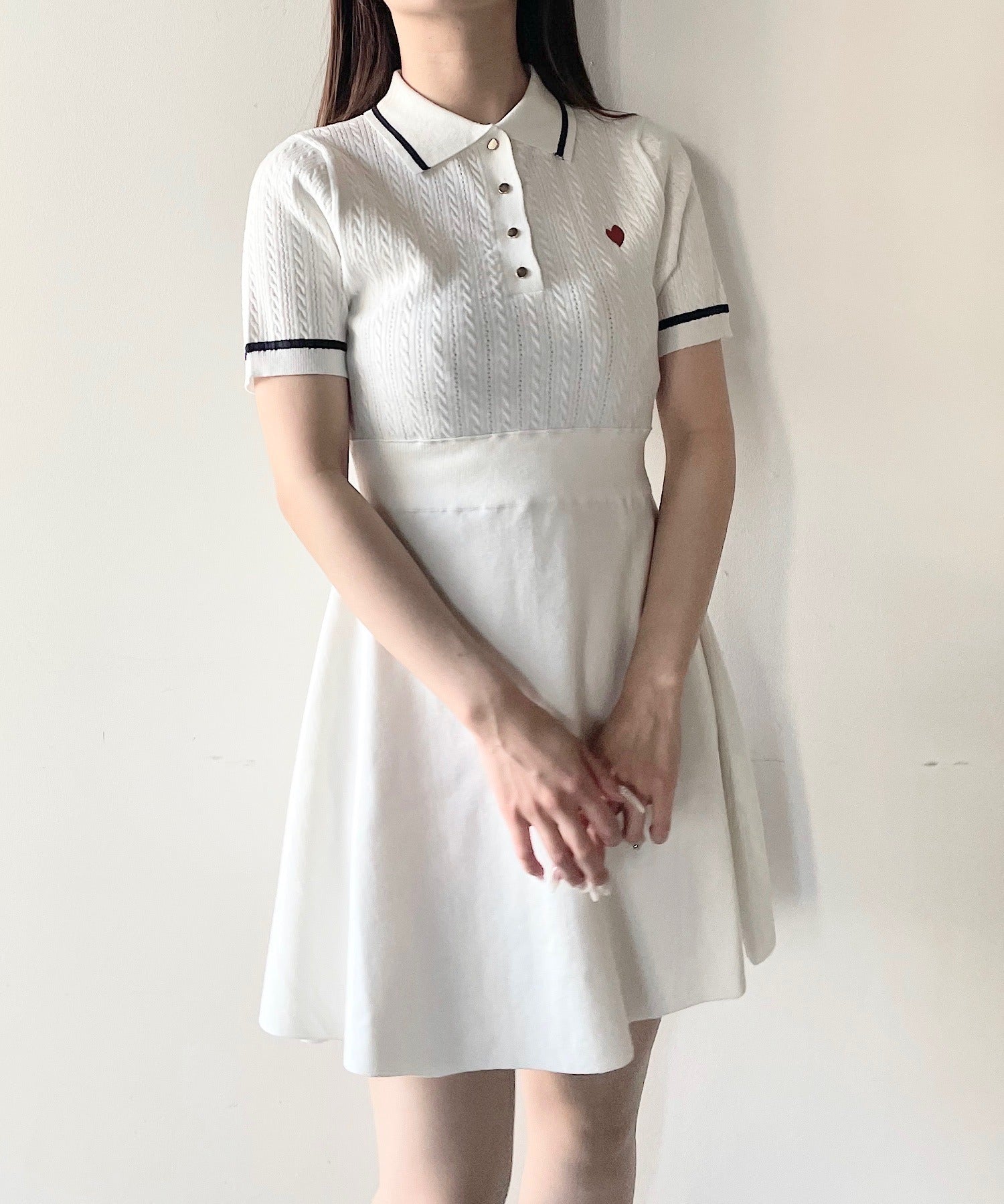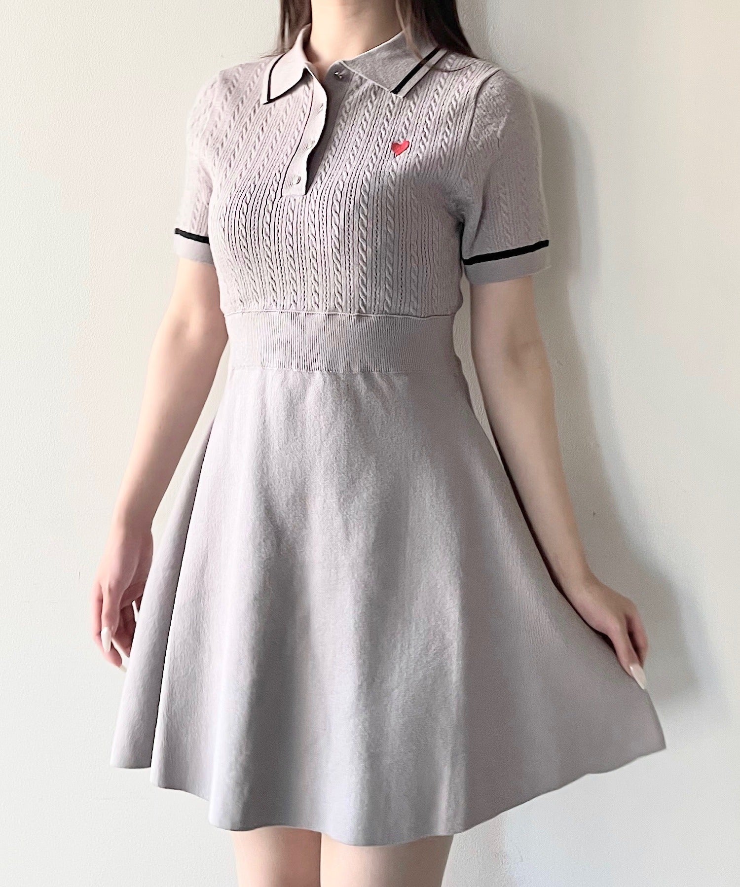 ケーブルポロニットワンピース