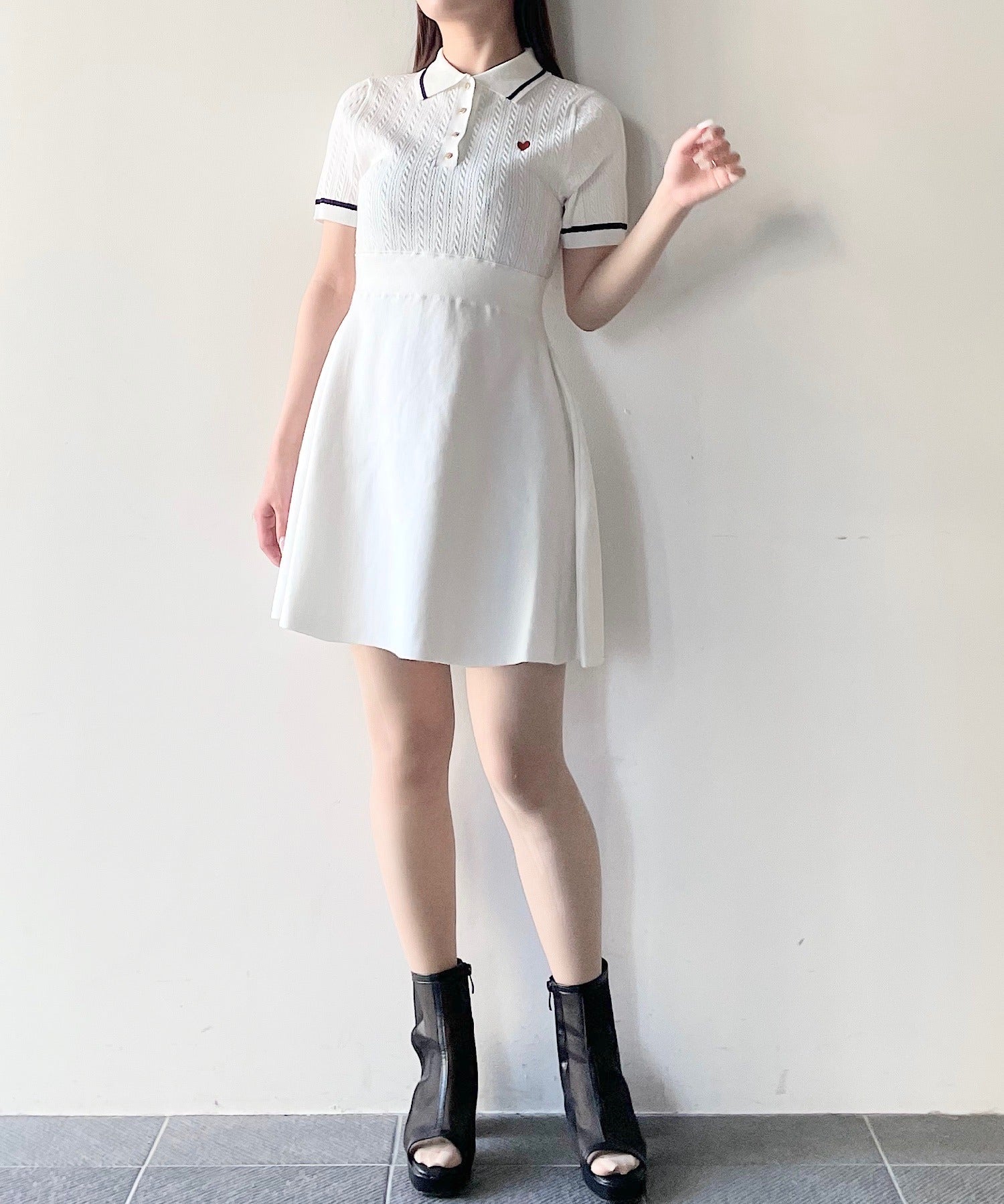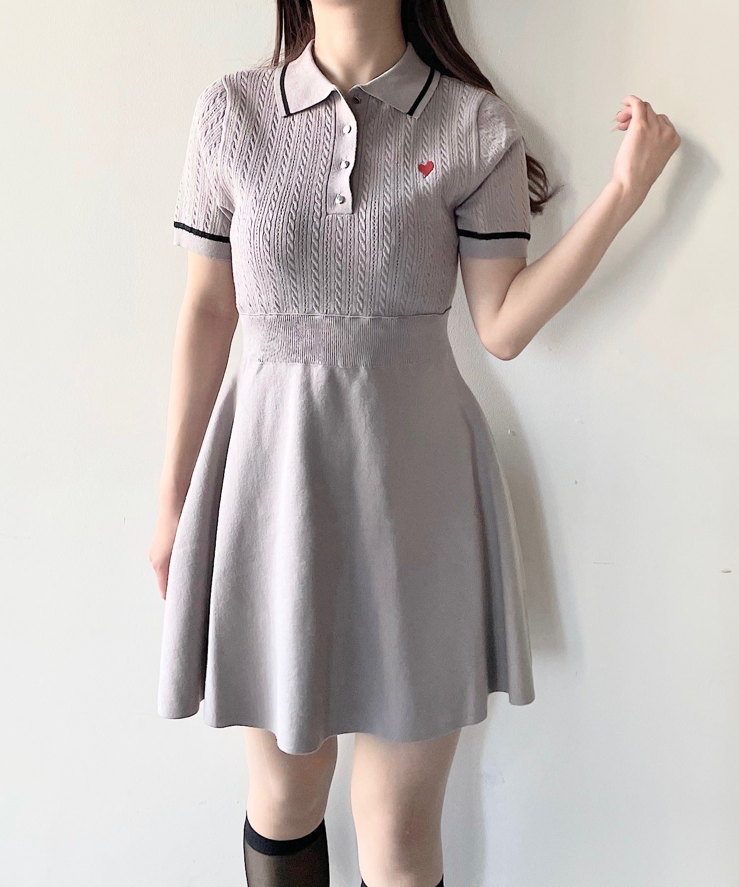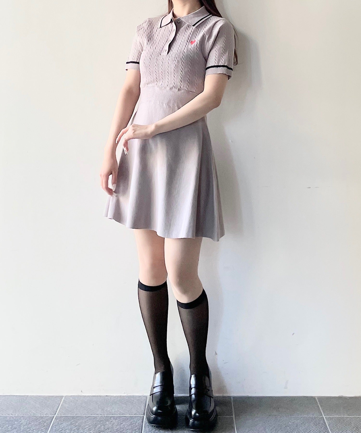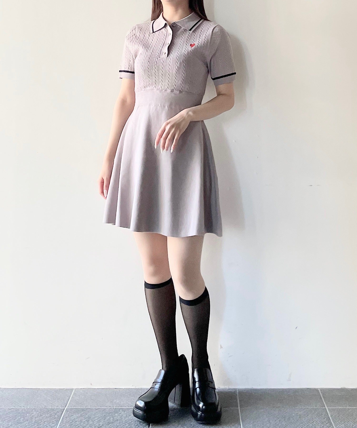ケーブルポロニットワンピース