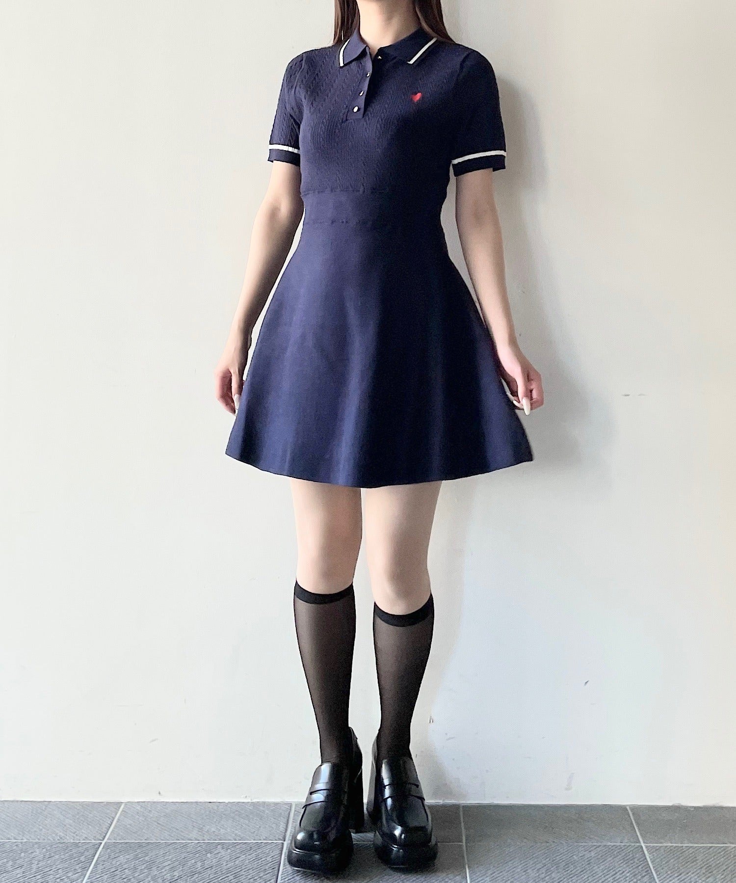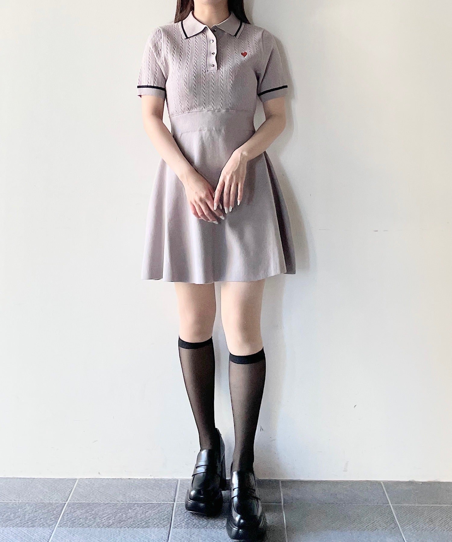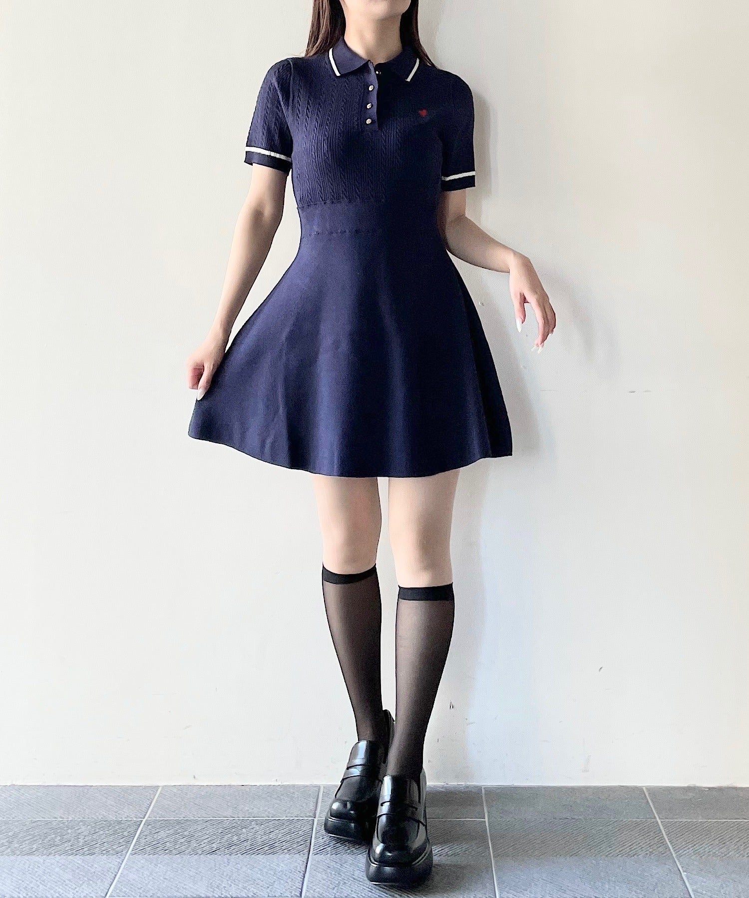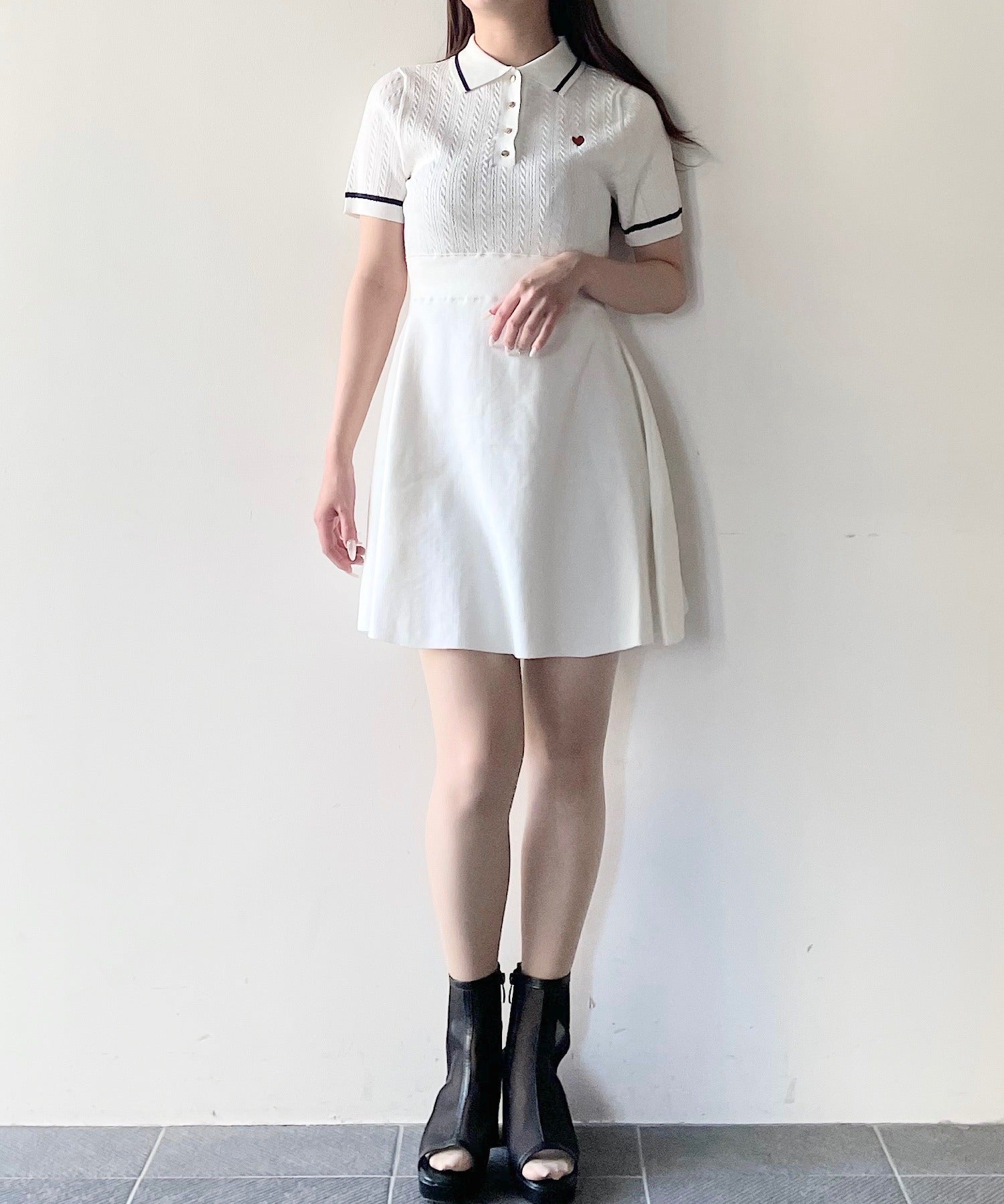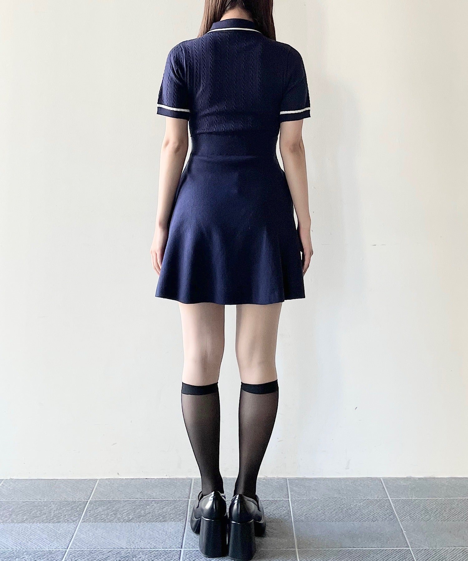 ケーブルポロニットワンピース