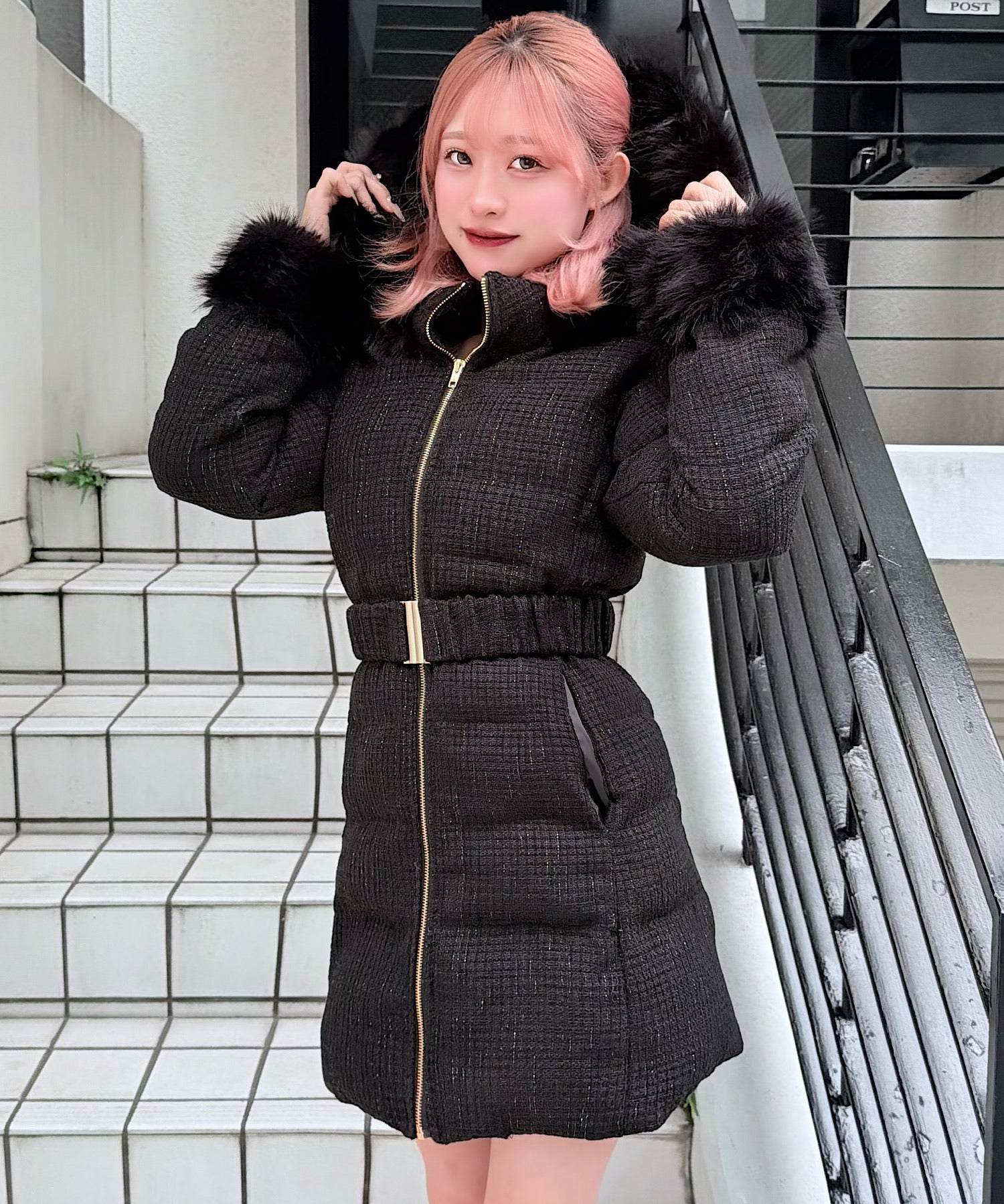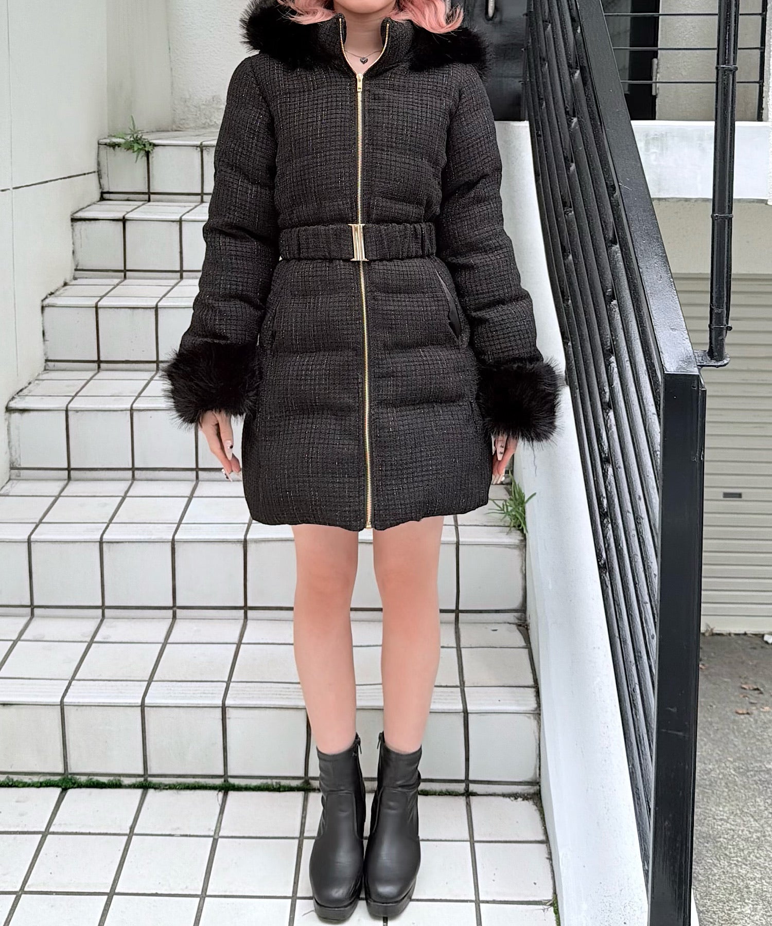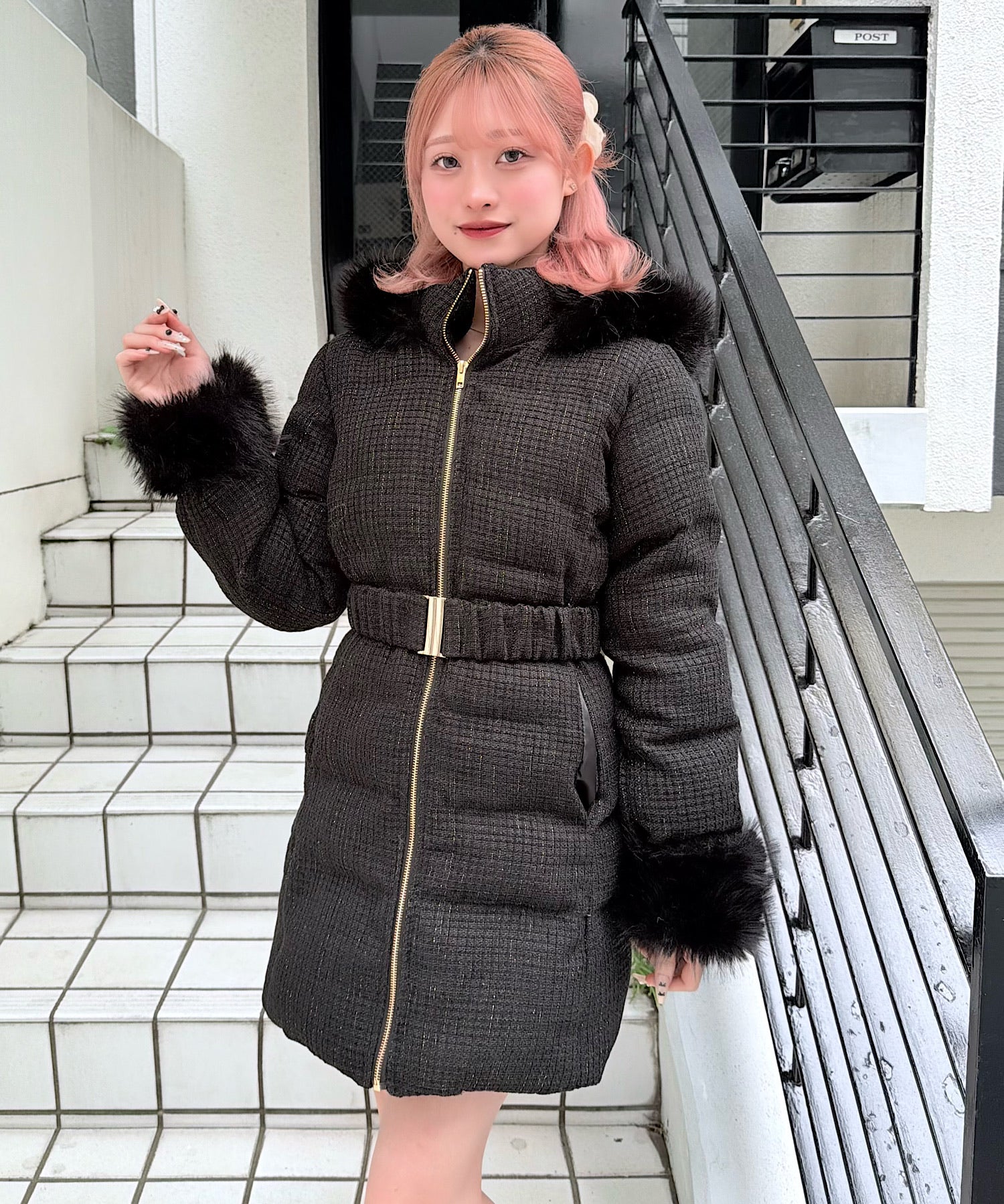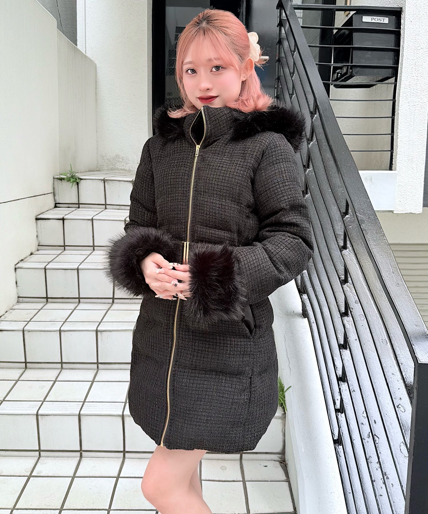 【予約商品12月中旬お届け】ラメツィードロングダウンコート