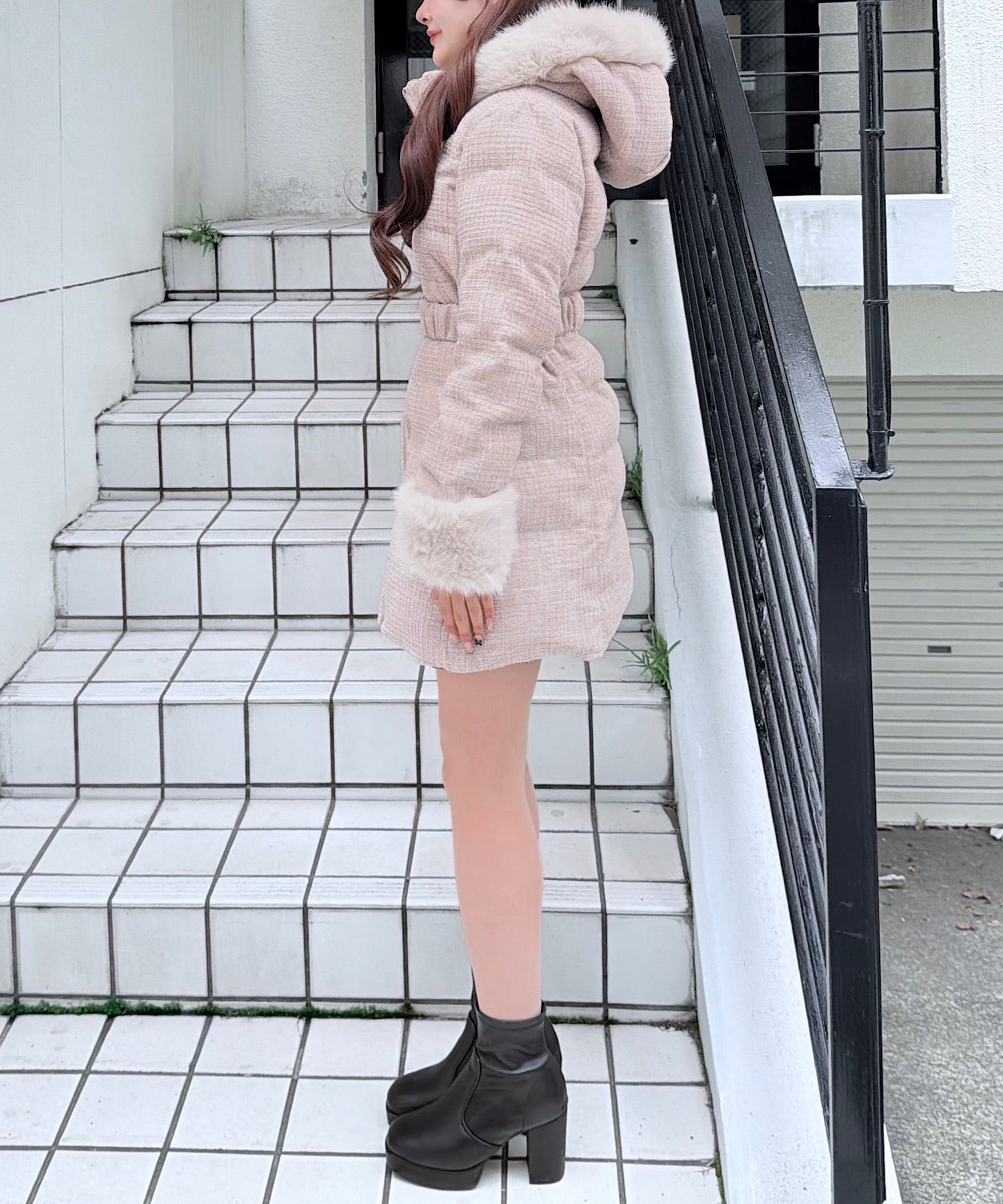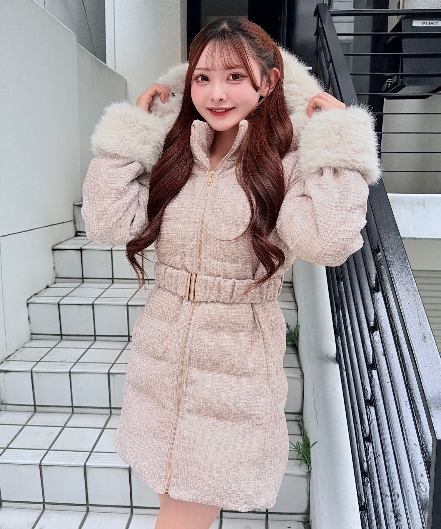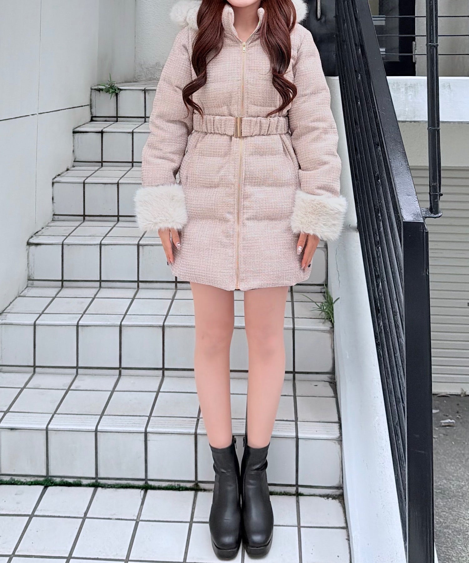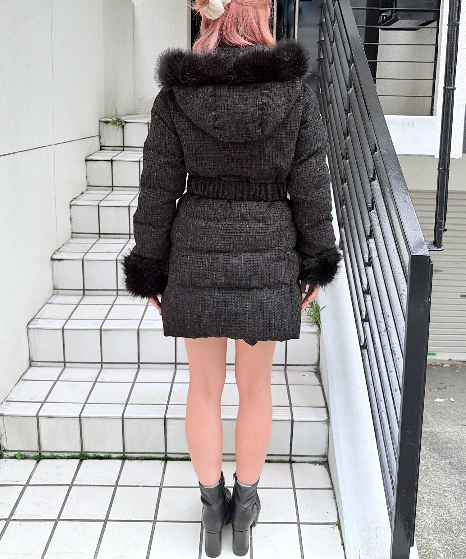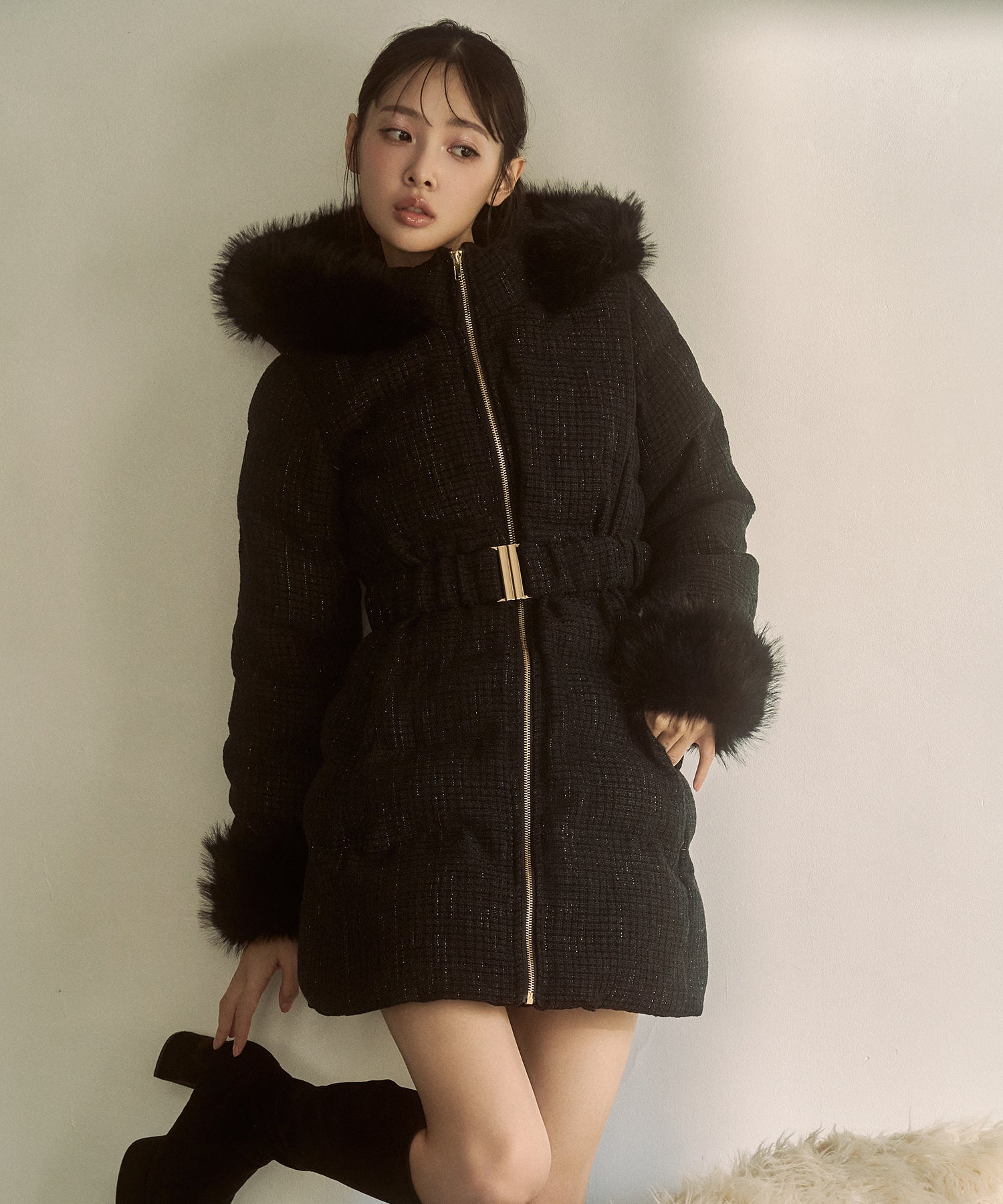 【予約商品12月中旬お届け】ラメツィードロングダウンコート