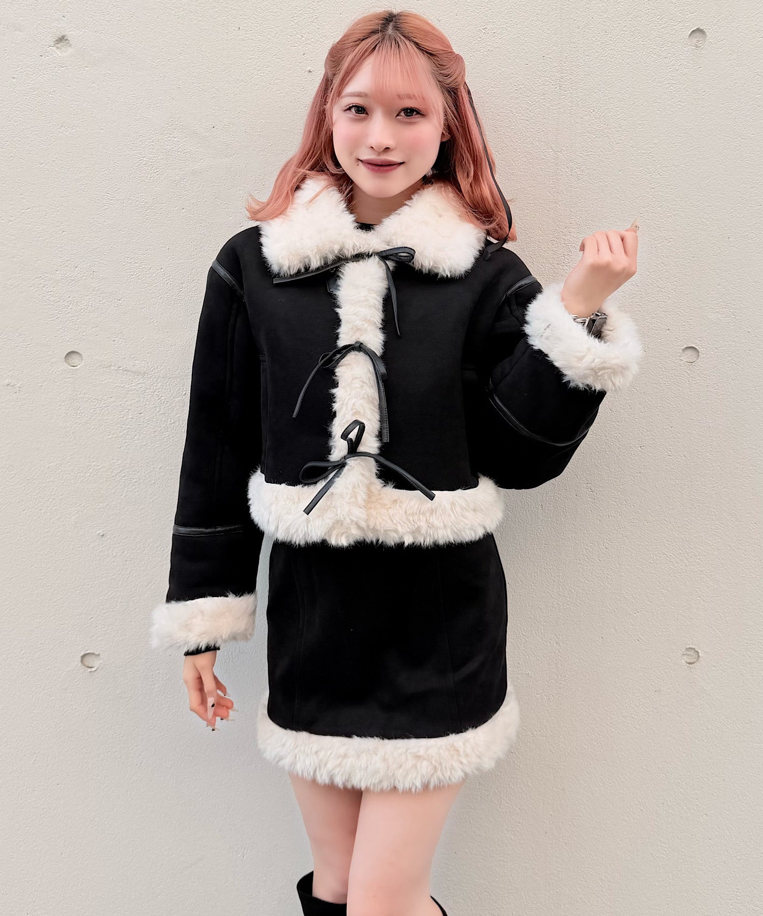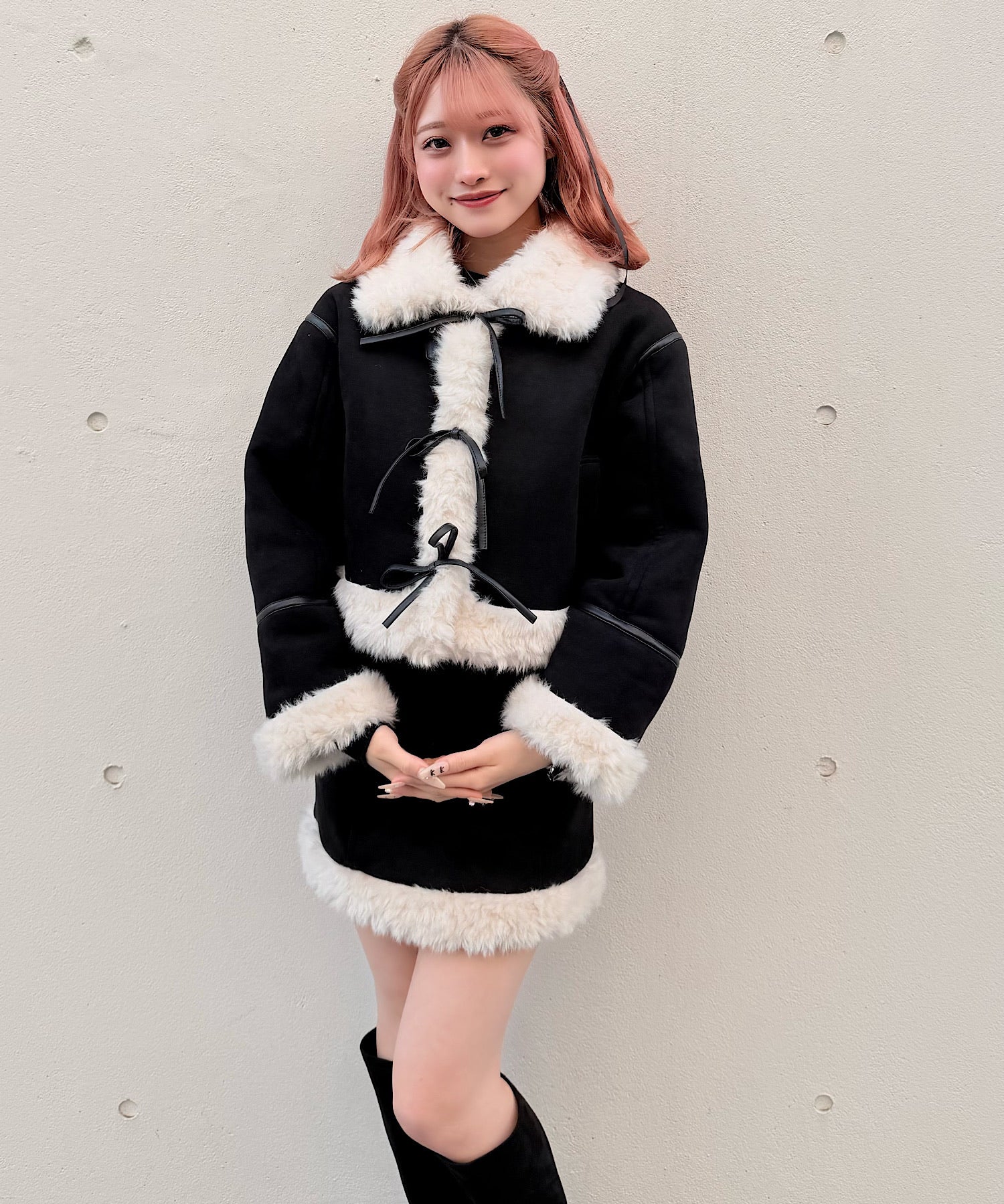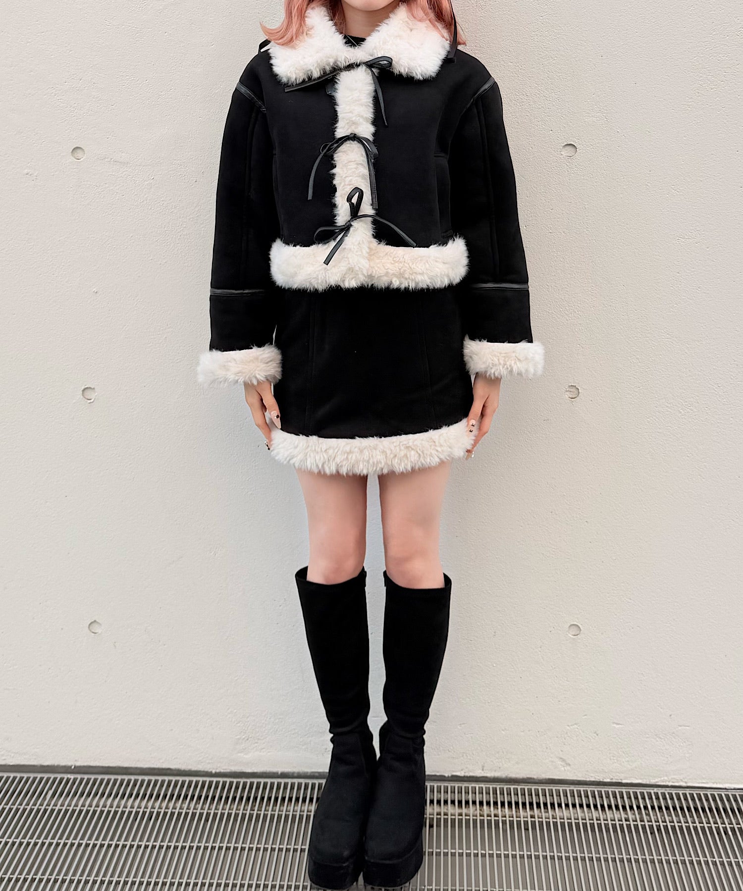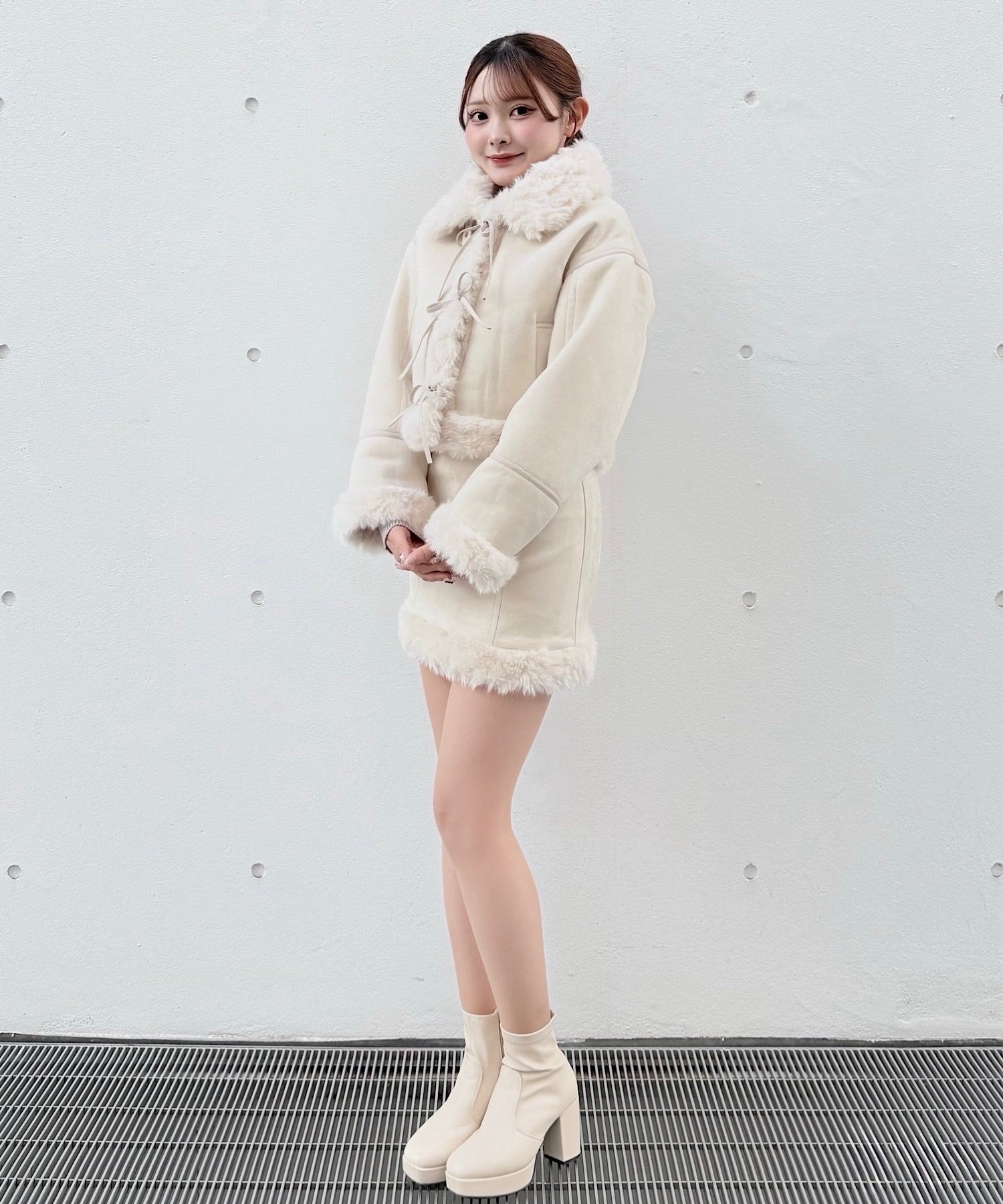 ・ムートンブーツと合わせて統一感のある冬服コーデに。