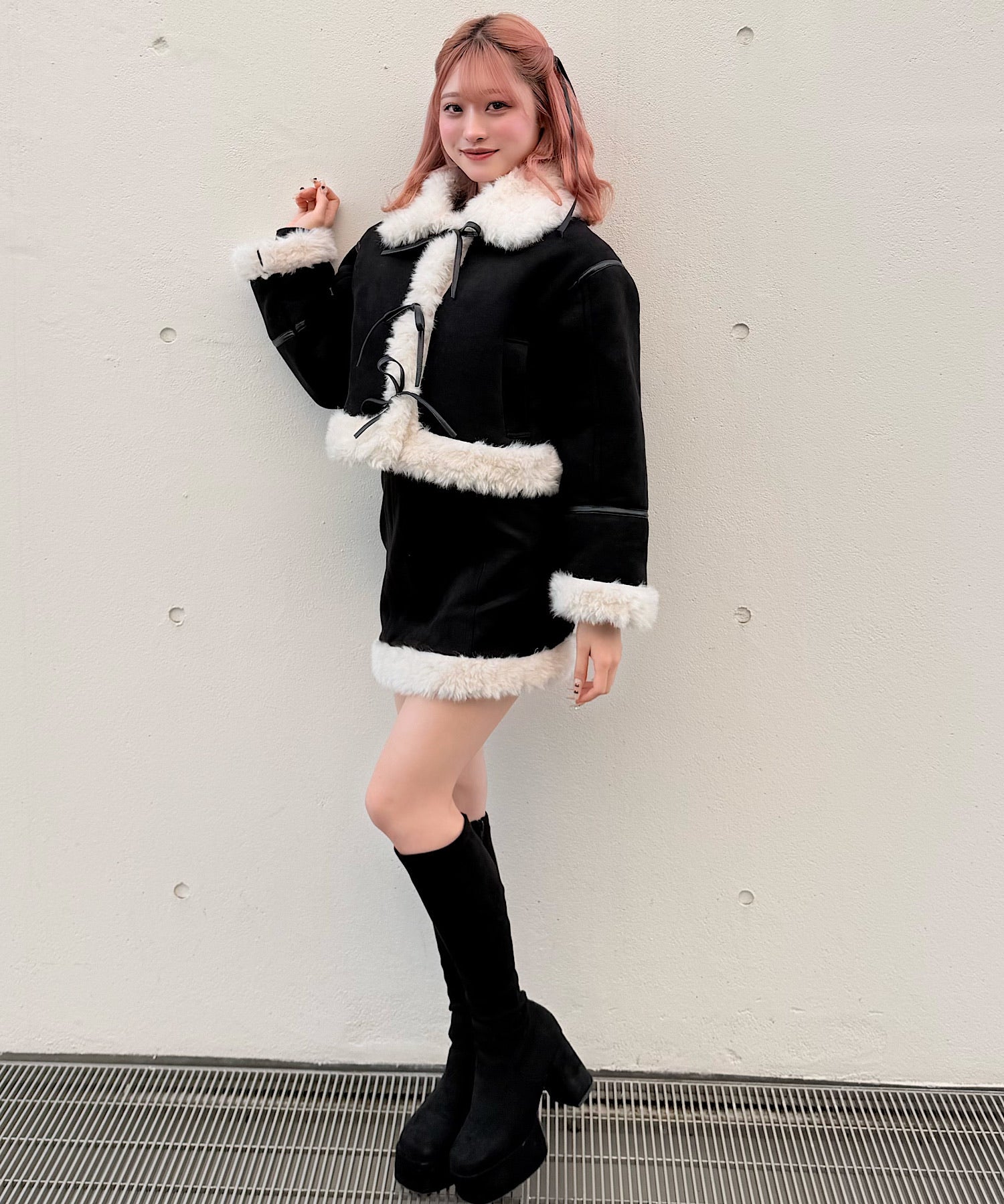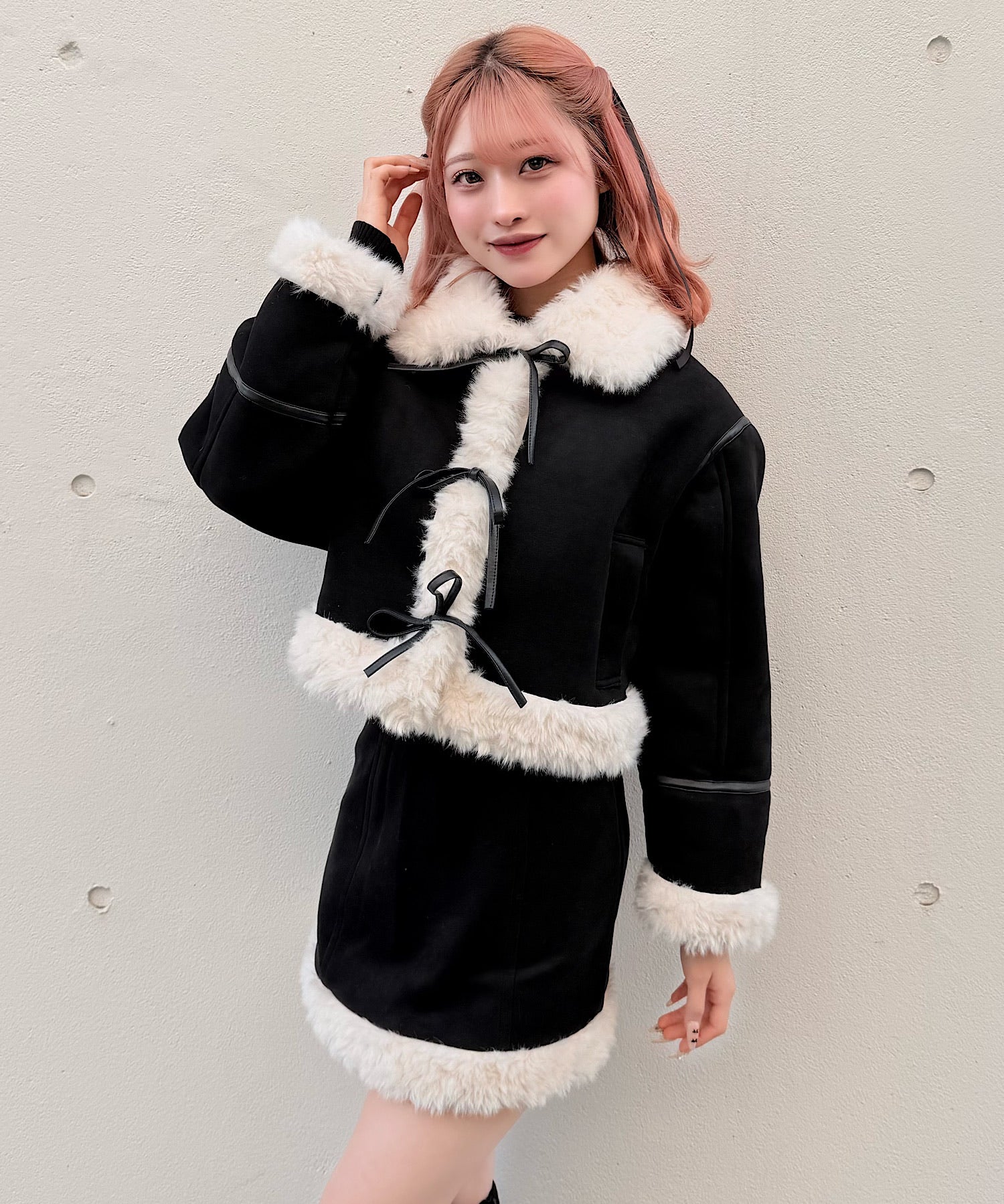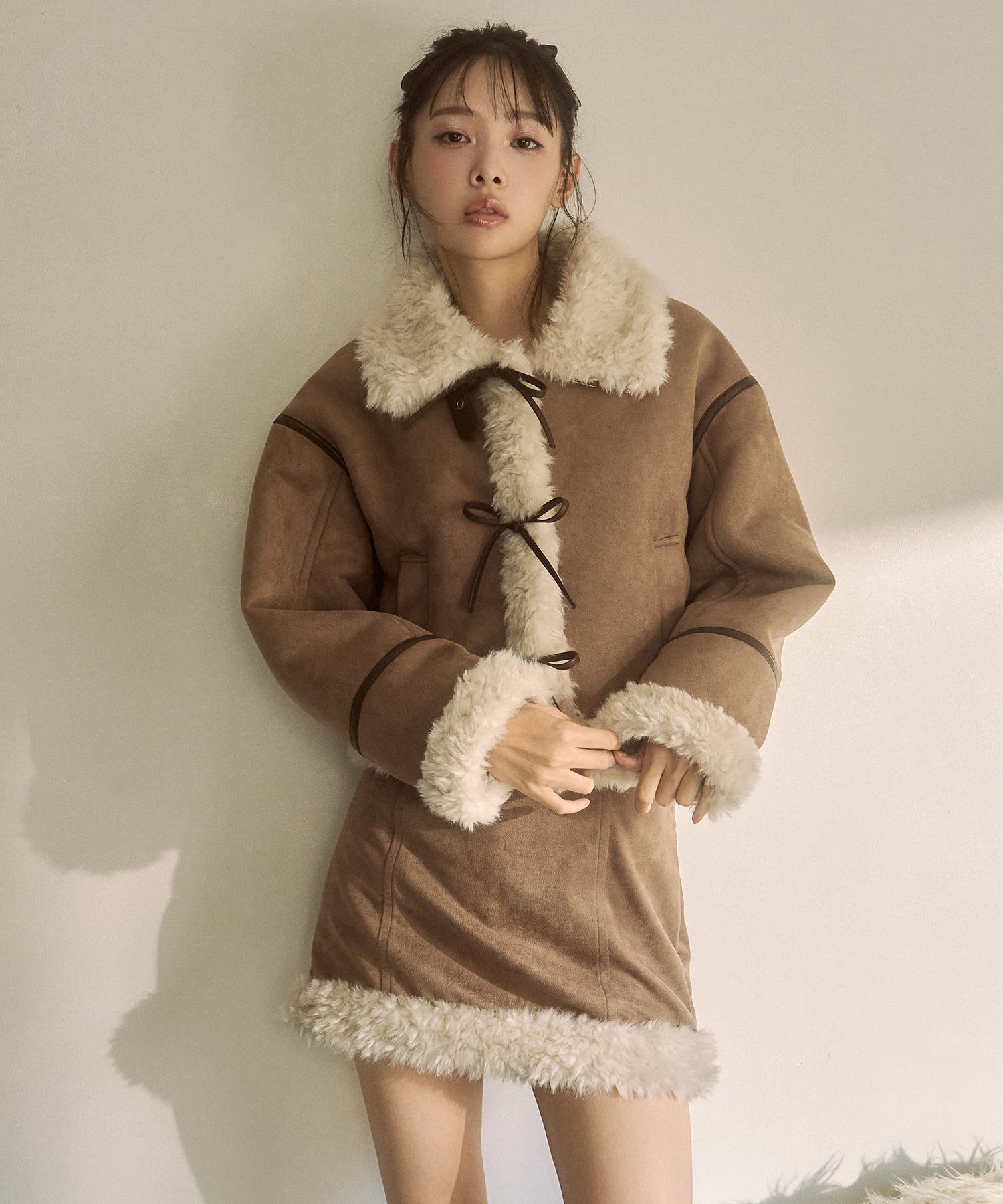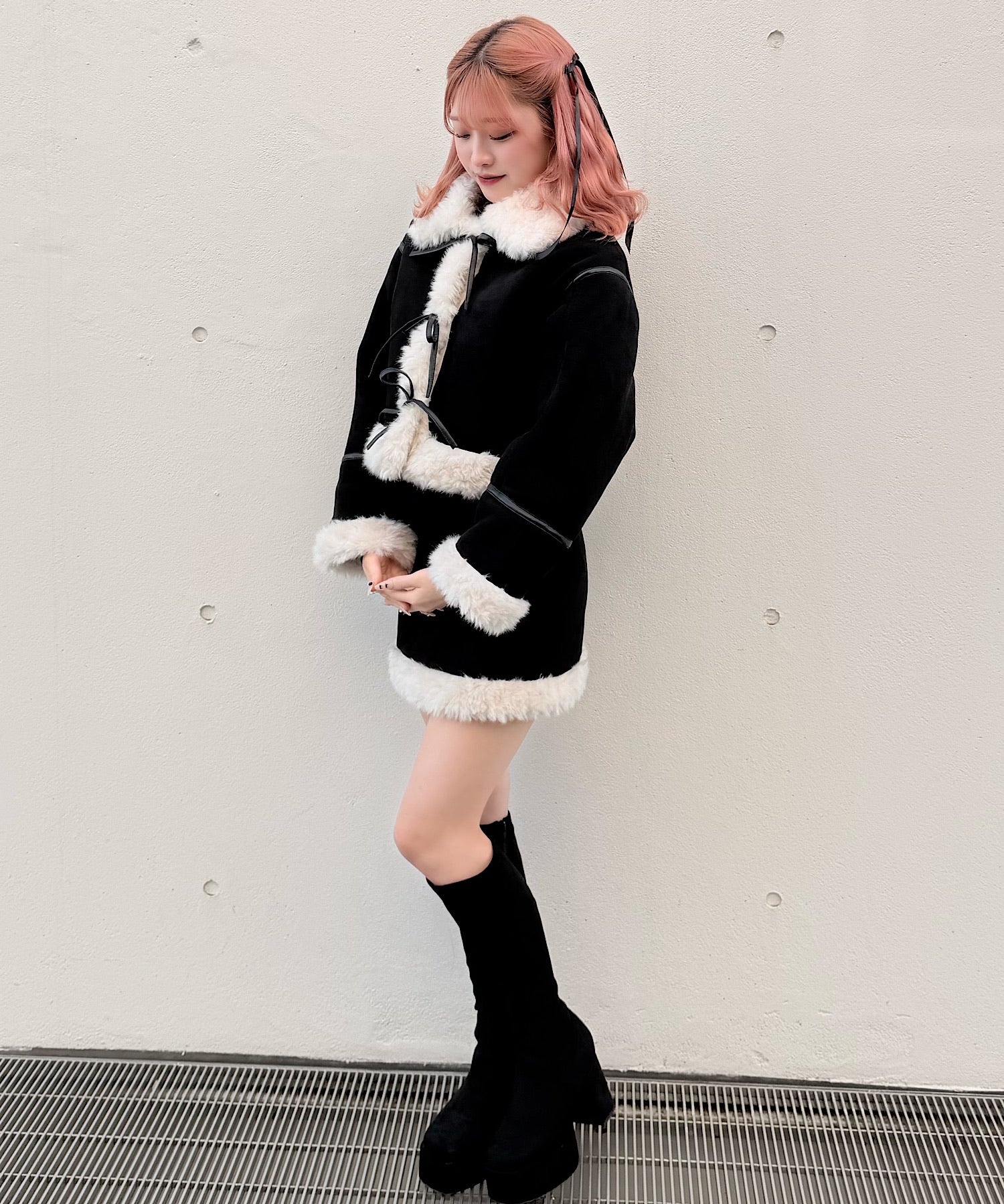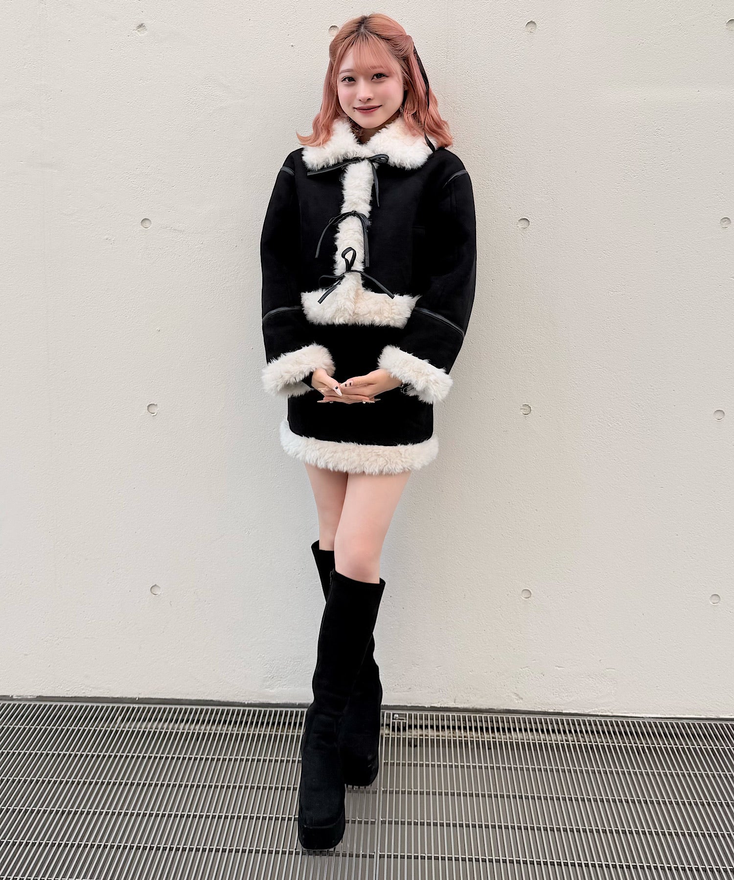 ・ムートンブーツと合わせて統一感のある冬服コーデに。